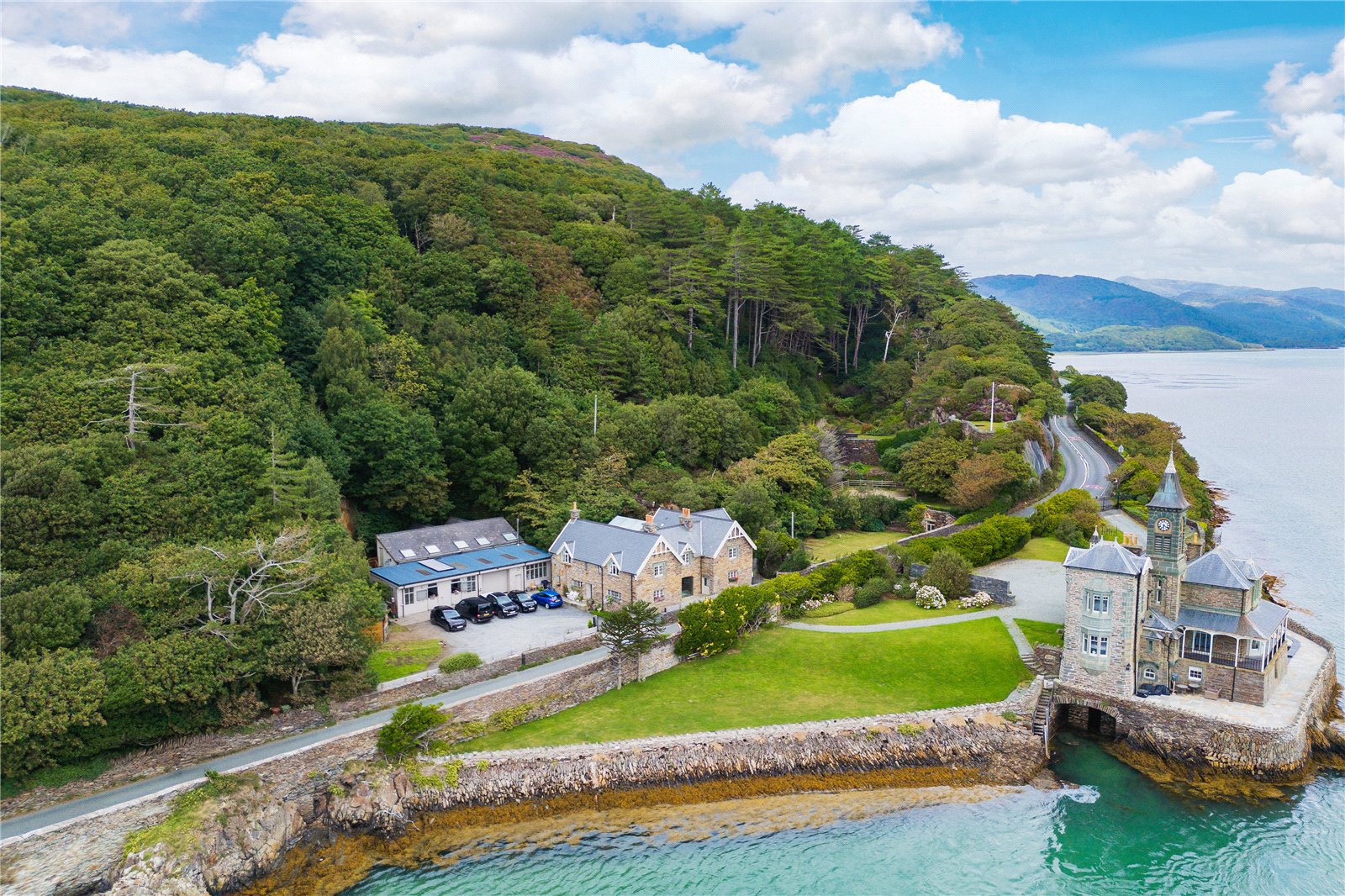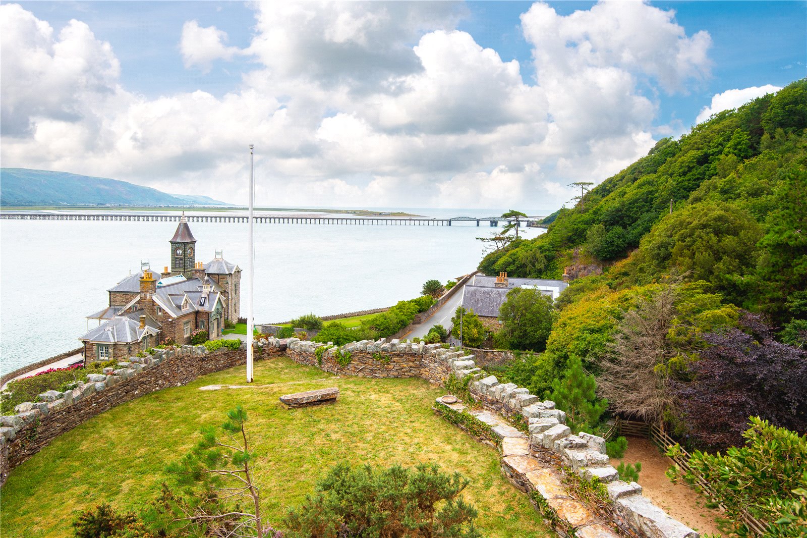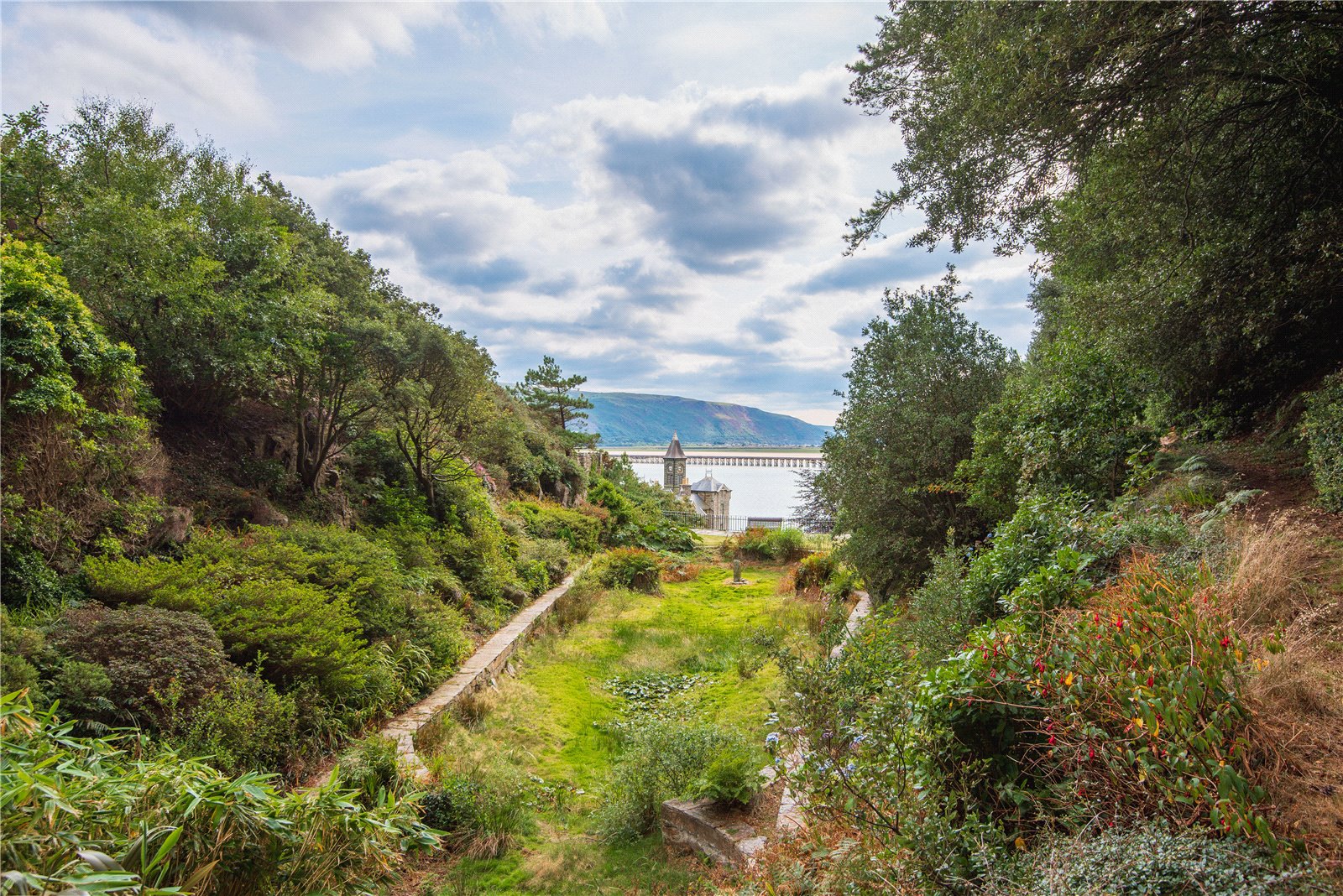 Set within five acres of landscaped grounds, with further woodland available by separate negotiation, the property occupies one of Wales’most enviable coastal settings – where estuary meets sea.The gardens are alive with postcard views and enchanting sunsets. Terraces and winding paths climb towards the mountains, offering tranquillity and privacy. A historic walled garden provides a sense of heritage and security, while an orchard planted with apple, fig, damson, and plum trees enriches the land. A large pond flourishes with colour and wildlife, framed by a seating area overlooking the clock tower and estuary. Woodland walks weave throughout, alive with native trees, plants, and birdlife. A stone gardener’s shed and even a rock tunnel add character and charm.