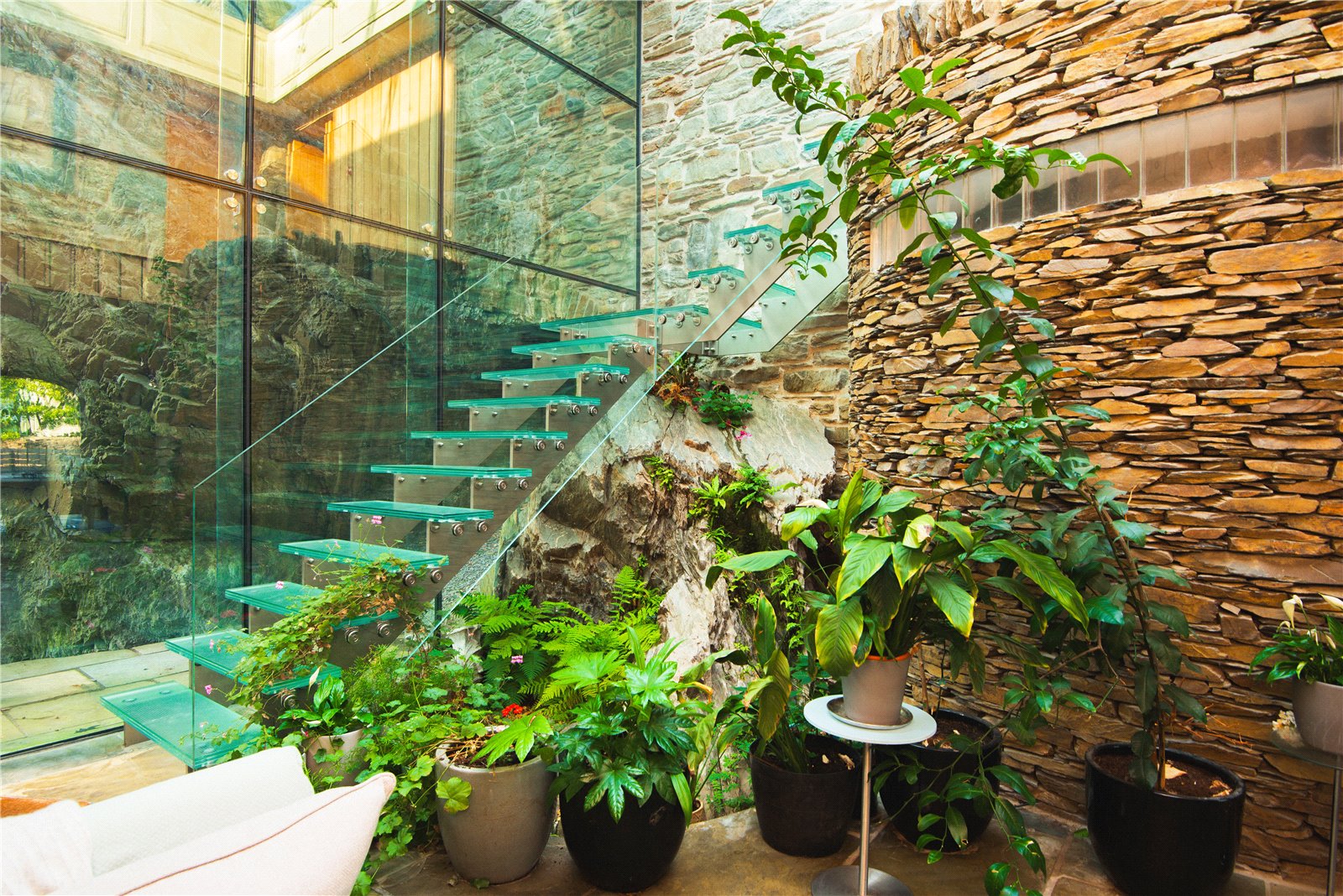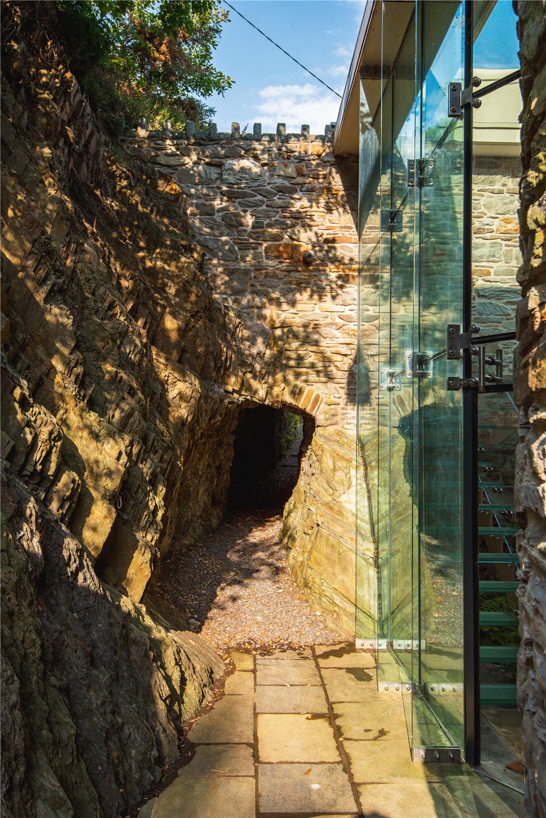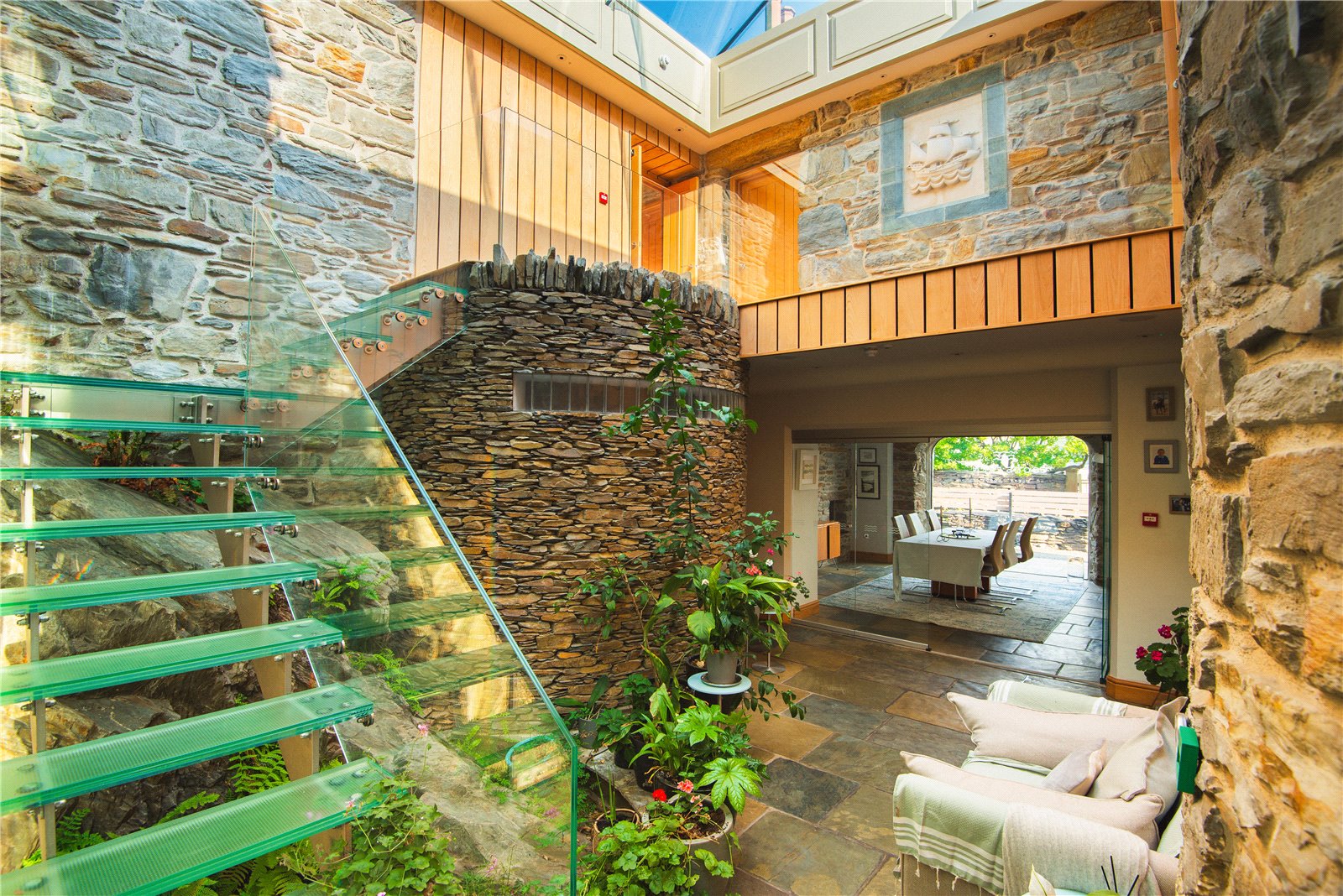 Stepping into this remarkable home, the experience begins the moment you enter the 007-worthy atrium lobby – a soaring glass and steel structure that immediately sets the tone. Built directly into the Welsh rock, the space incorporates an outcrop with water trickling into a pool, while a sweeping curve of exposed stonework and a dramatic winding glass staircase create an unforgettable first impression. More than an entrance, the atrium is a serene, light-filled retreat that draws the outside world in through natural materials and captivating views.As the owner, Sara – a former motoring journalist and newspaper editor – explains: “We wanted to create a serene space, pulling the outside in by incorporating natural materials and by making the most of the outstanding views. We took inspiration from Tuscan buildings which seamlessly marry modern materials with historic homes, and melded that with our love for this very special part of Wales.”
