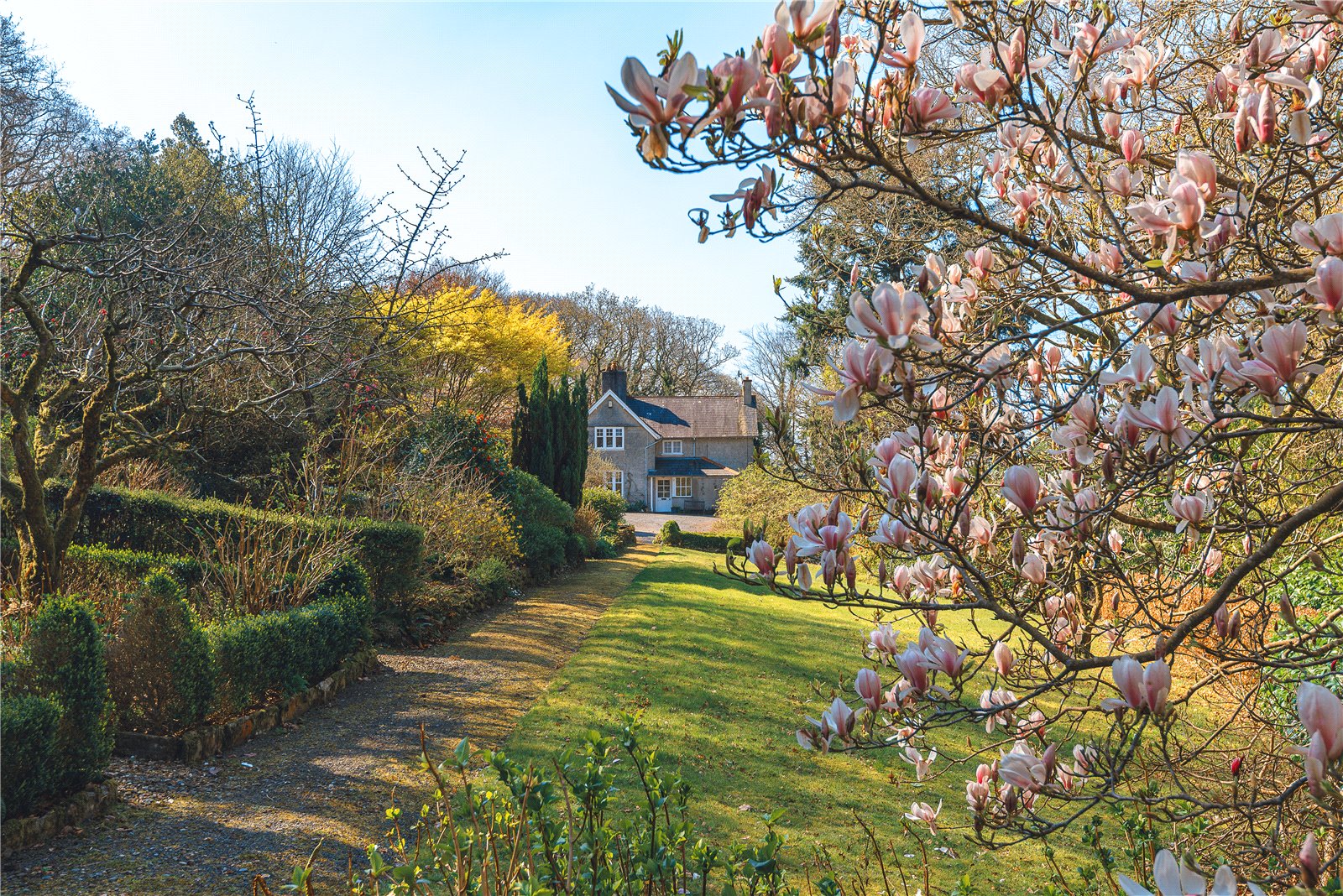 Accessed directly from the road, the sweeping driveway creates a beautiful approach to Llwyncelyn. Beginning at the detached double garage at the foot of the drive, it gently winds its way up through the grounds toward the house, offering an impressive and inviting entrance with ample parking and turning space near the home.Formerly open annually for the National Garden Scheme and for charity, the gardens were featured on BBC Gardeners World. There’s something to discover in every corner—from enchanting woodlands and mature trees to vibrant flowerbeds and colourful planting that add a rich tapestry of textures and hues to the landscape.