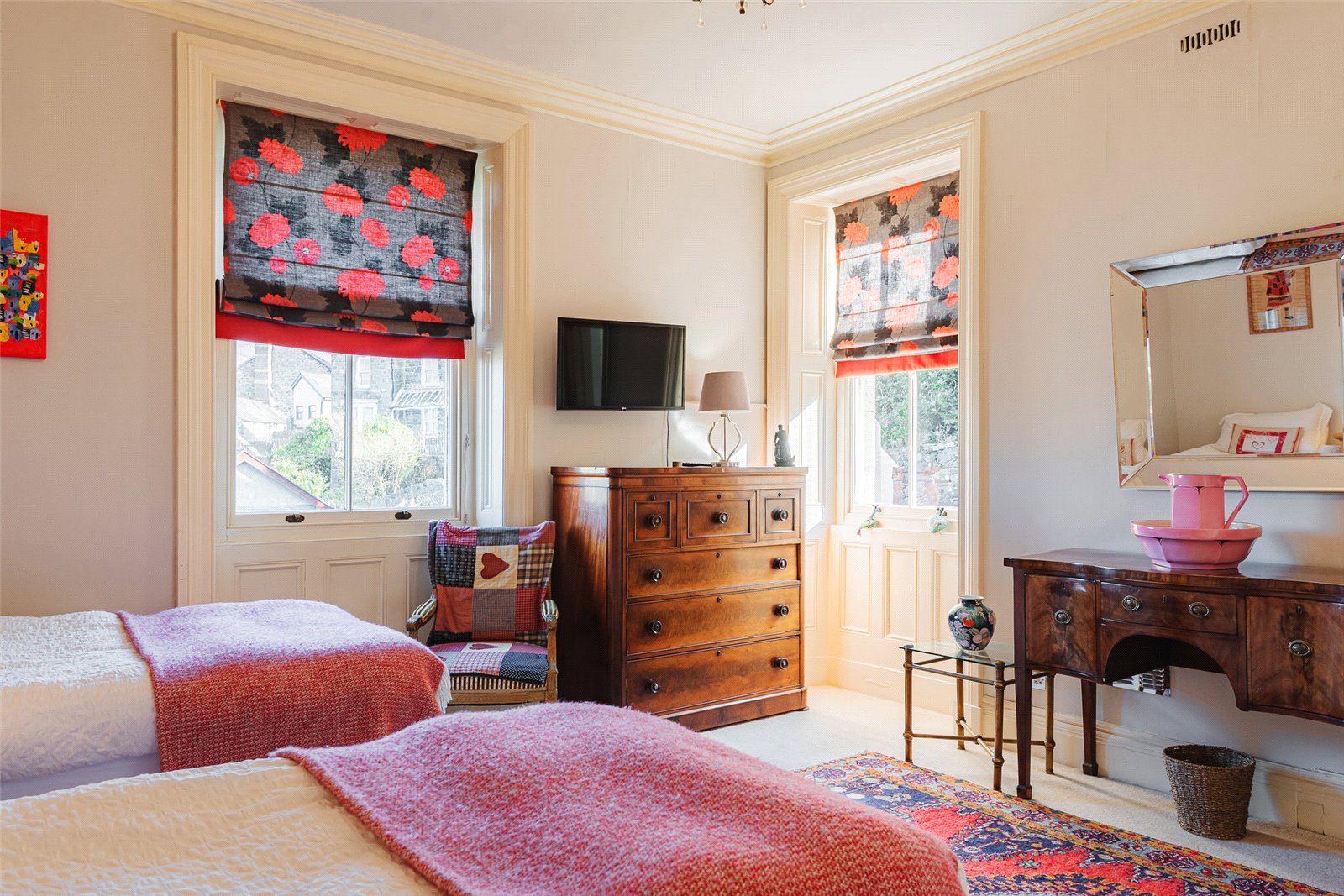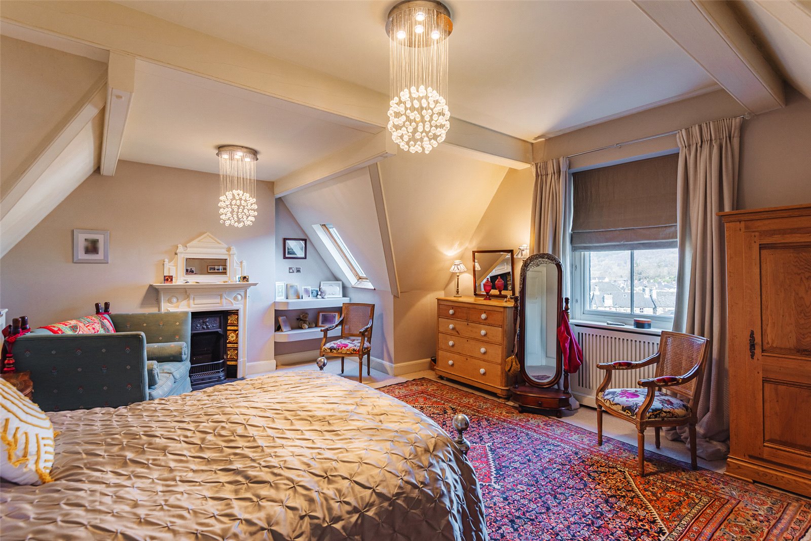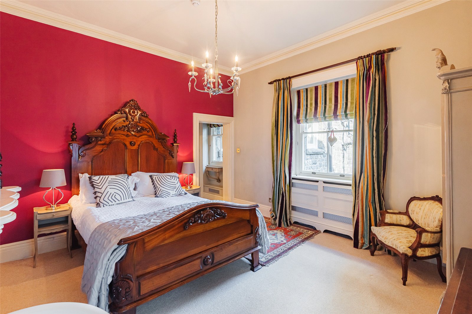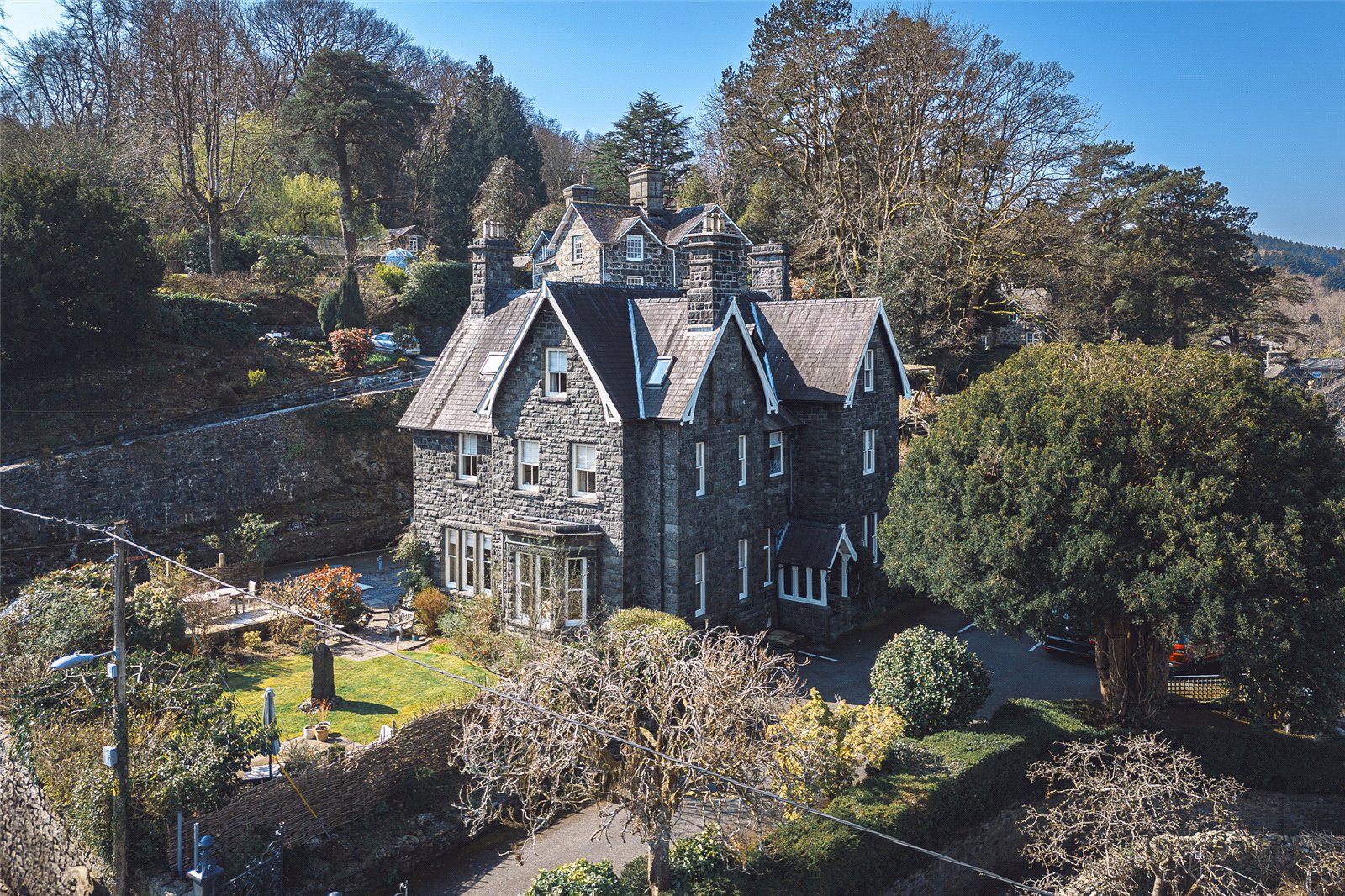 The oak staircase, a true focal point with its large stained-glass window, ascends from the entrance hall to the first floor. On this level, you’ll find four generously sized bedrooms, each with its own en-suite and scenic views over Dolgellau and the distant hills. This floor also features a practical utility room and a walk-in linen cupboard to assist with the operation of the property. Access to this floor is also available via a rear staircase from the hallway.On the second floor a further two suites are to be found, the first with two bedrooms and a bathroom with bath, shower, basin and WC. The master bedroom and bathroom with bath, shower, basin and WC.The property also boasts a spacious cellar with good head height, offering additional usable space. This area holds potential for conversion, subject to the necessary consents, or it can continue to serve as a valuable storage area.