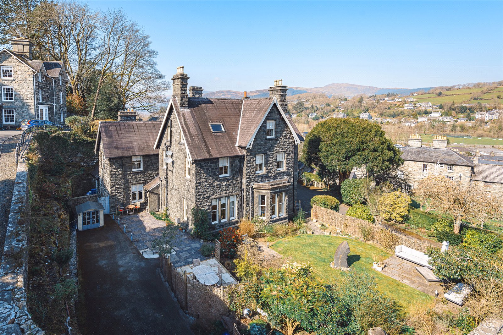 Brynffynnon sits on a generous plot, surrounded by beautifully maintained gardens that enhance its proud presence. The garden features a level lawn, complemented by well-stocked flower beds and borders that add vibrant colour throughout the year. Established hedges provide an extra layer of privacy, creating a peaceful oasis. A patio area with ample space for seating offers a serene spot to relax, while an additional patio area is perfect for alfresco dining.There is plenty of parking available on both sides of the house, with the lower parking area being accessed through Grade II listed iron gates. The upper driveway provides a private space for additional vehicles to be parked.