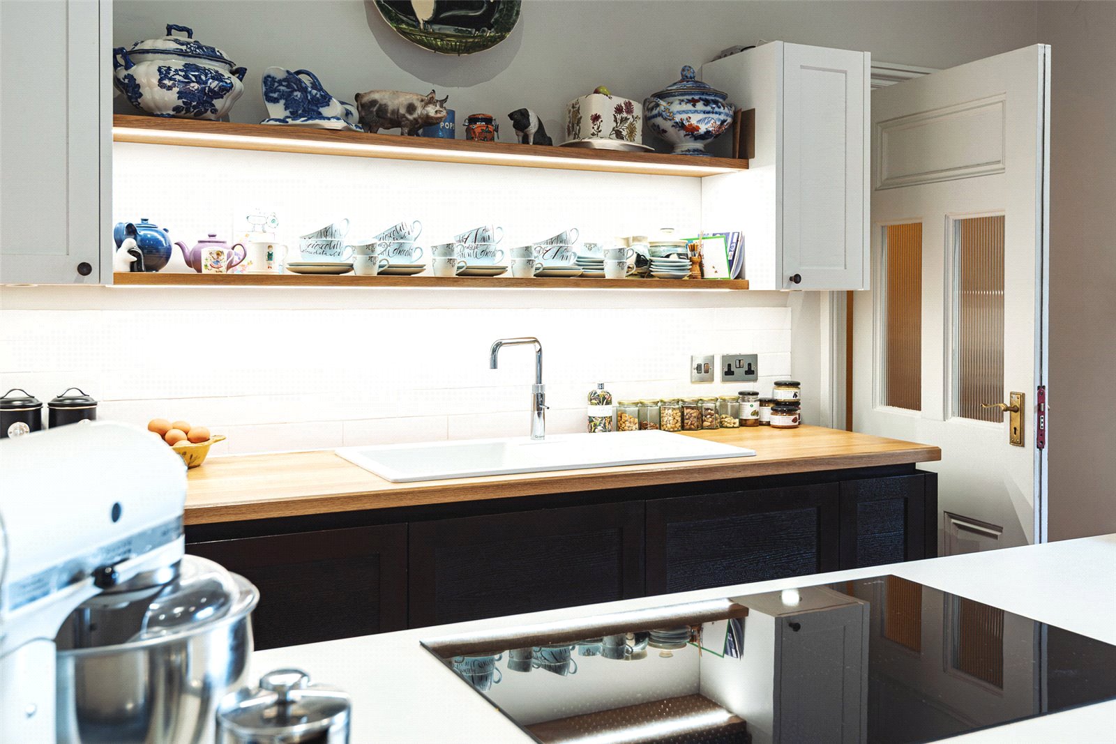 The rear hallway leads to the cosy sitting room, thoughtfully designed as a warm and inviting space perfect for evening relaxation. From here, you move into the well equipped bespoke kitchen, which includes a range of wall and base units, a sink and drainer with Quooker tap, an integrated induction hob, multifunction oven, microwave multifunction oven extractor fan, integrated dishwasher, and an integrated fridge freezer. The kitchen also provides access to the utility/boot room and the WC/ shower room at the rear, both of which lead to the outdoors.