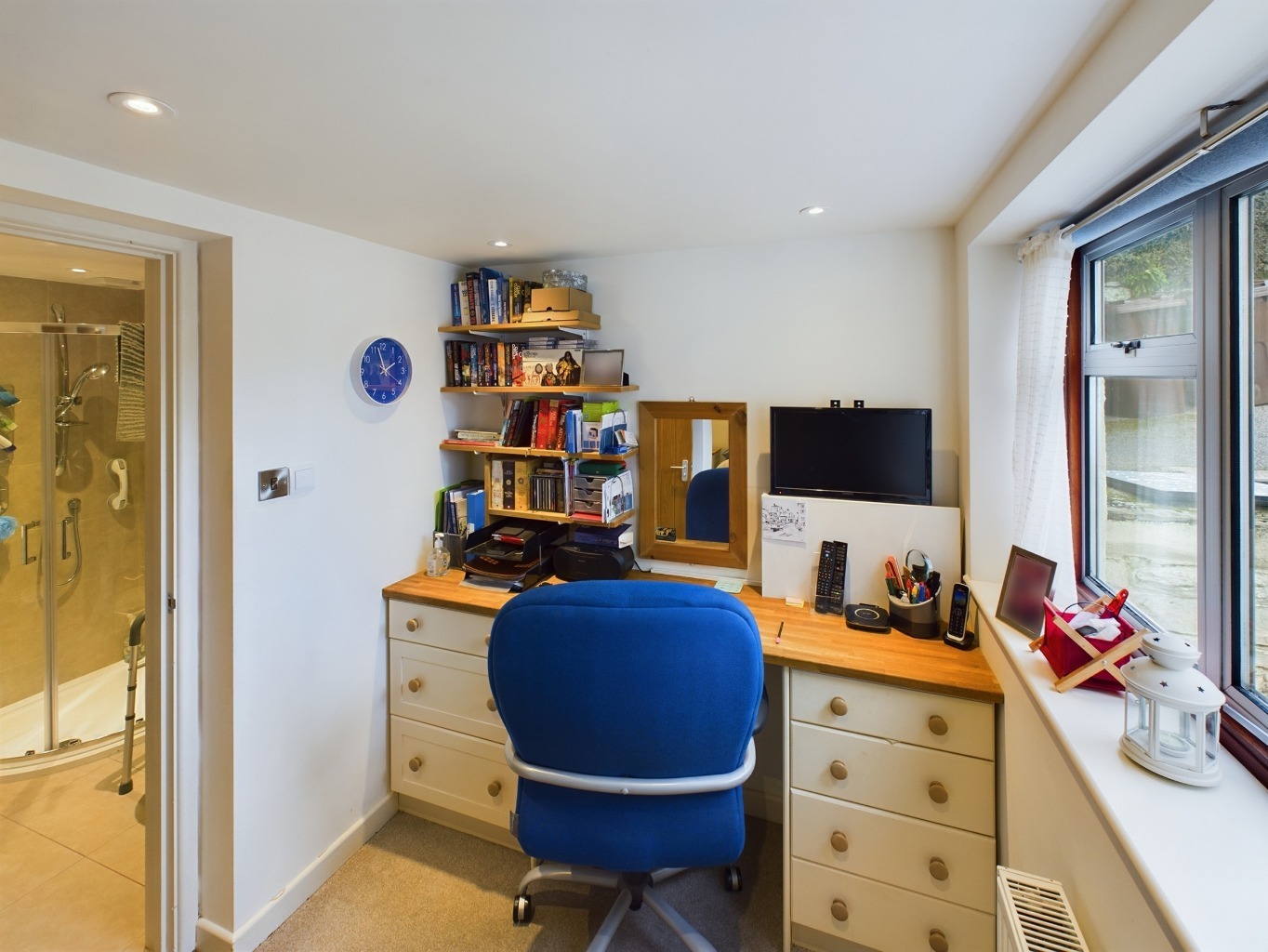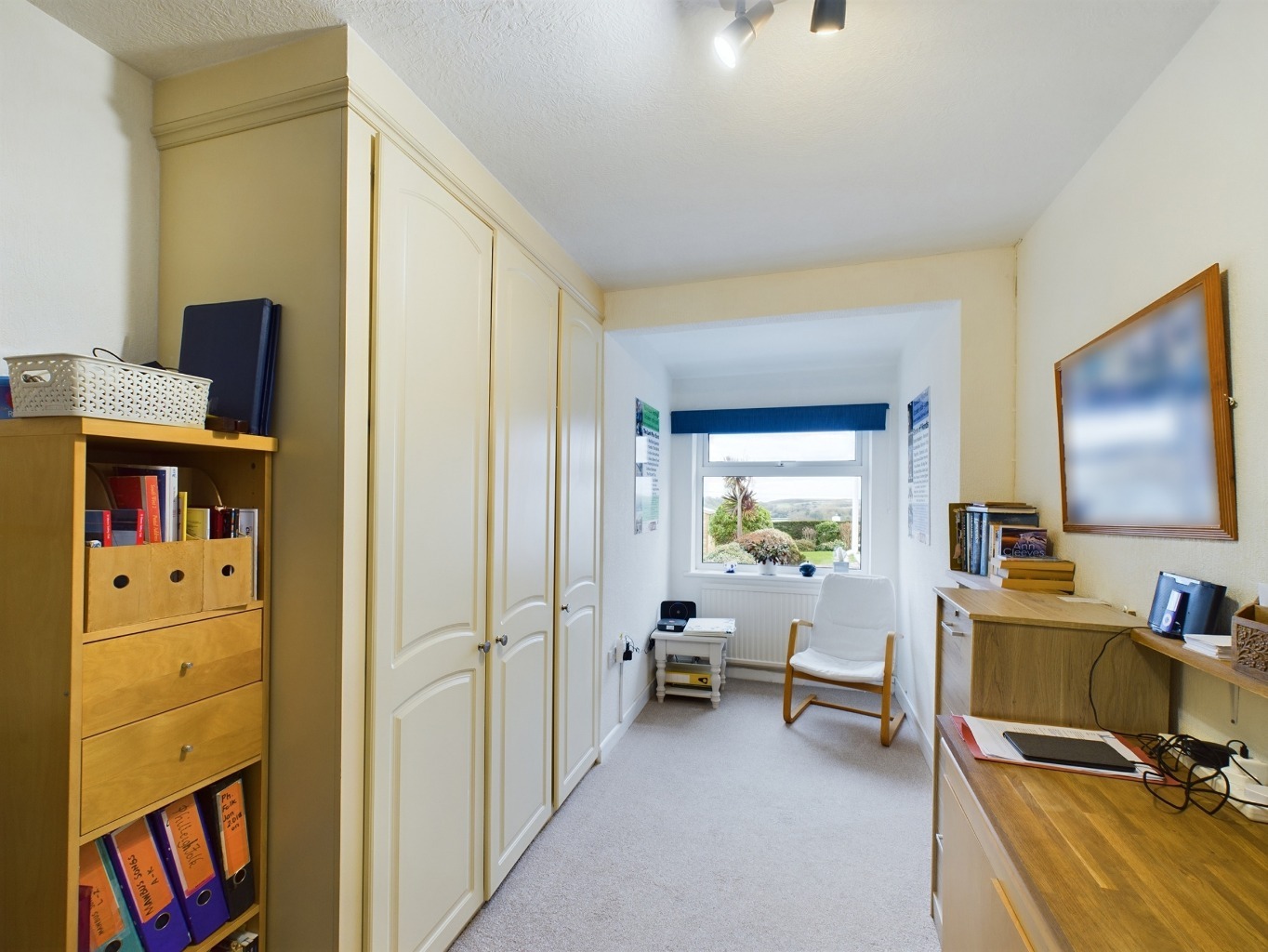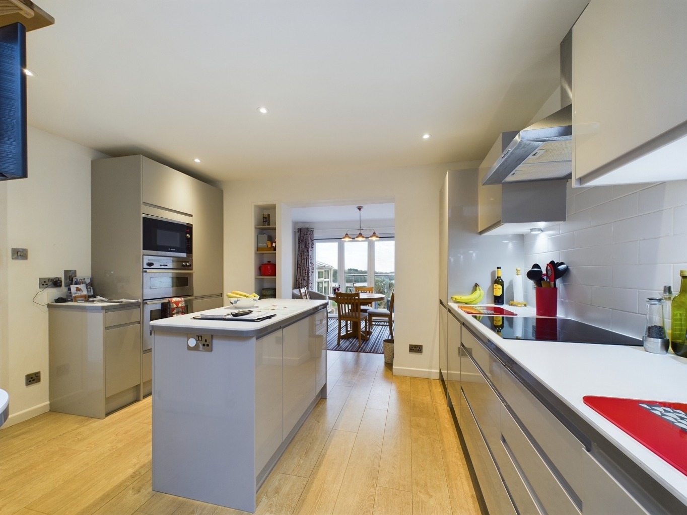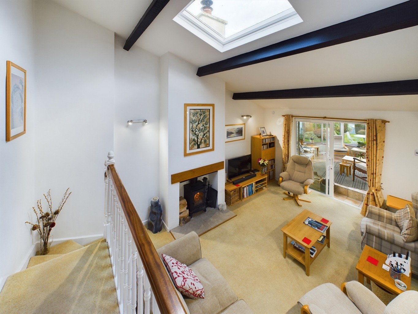 There is access to the south east facing rear well stocked and mature gardens, surrounded and protected by a hedge. To one side is a greenhouse, vegetable plot, pond and garden shed. At the bottom of the garden is a fruit garden. Bi-fold doors from the Dining Room open onto the large suntrap patio with electric canopy over, providing a superb space to relax and entertain. There is also another paved patio outside the conservatory and a 3rd small sundowner deck below the shed. Wherever you decide to sit and relax there are wonderful views.