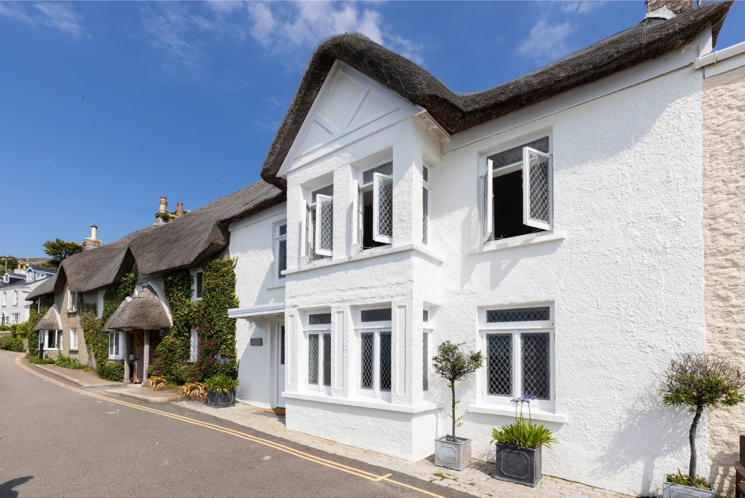 A unique, historic and spacious, south facing Grade II listed part-thatched waterside residence, with beautiful gardens and captivating harbour and sea views, located opposite Tavern Beach on the exclusive St Mawes waterfront.