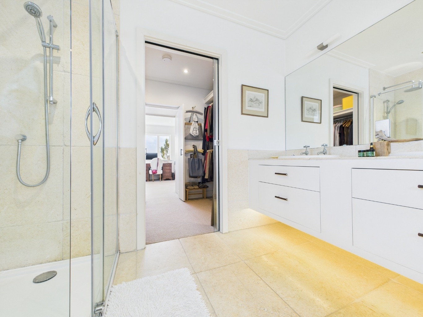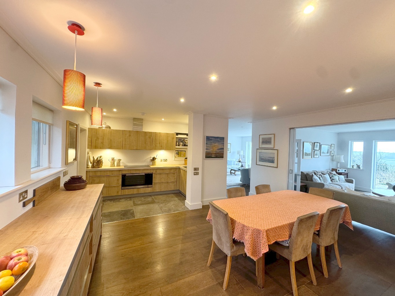 The principal ground floor living areas are designed for effortless flow, with a formal living room, dining room and sitting room all connecting seamlessly to a beautifully appointed kitchen featuring a walk-in pantry. Large sliding doors open to the expansive sun terrace, ideal for entertaining or quiet reflection with the sea as your backdrop.