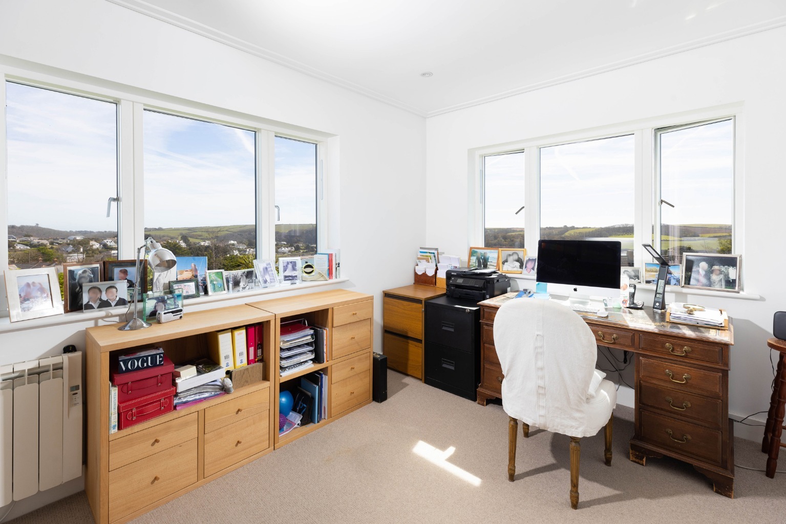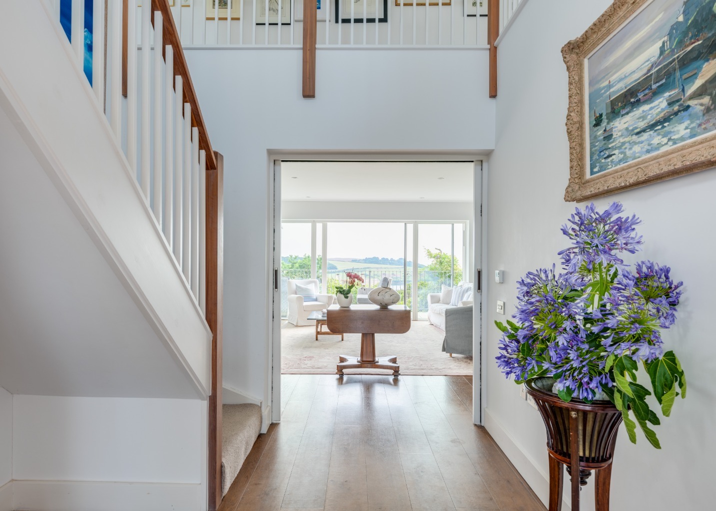 The approach is equally welcoming, with a paved forecourt behind a Cornish stone wall providing ample guest parking for at least four cars.