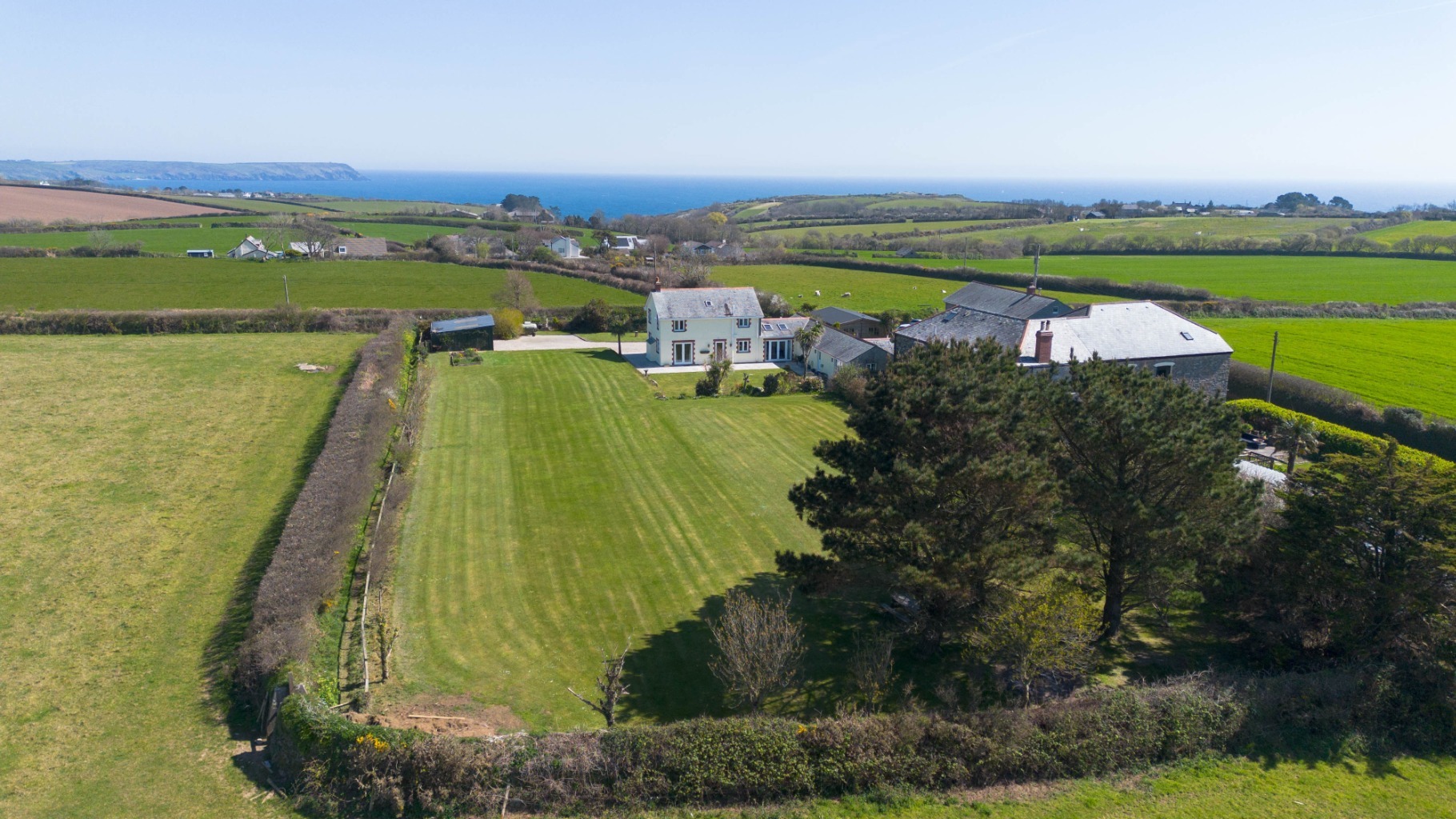 - Approximately 1 acre of gardens with countryside and distant sea views.