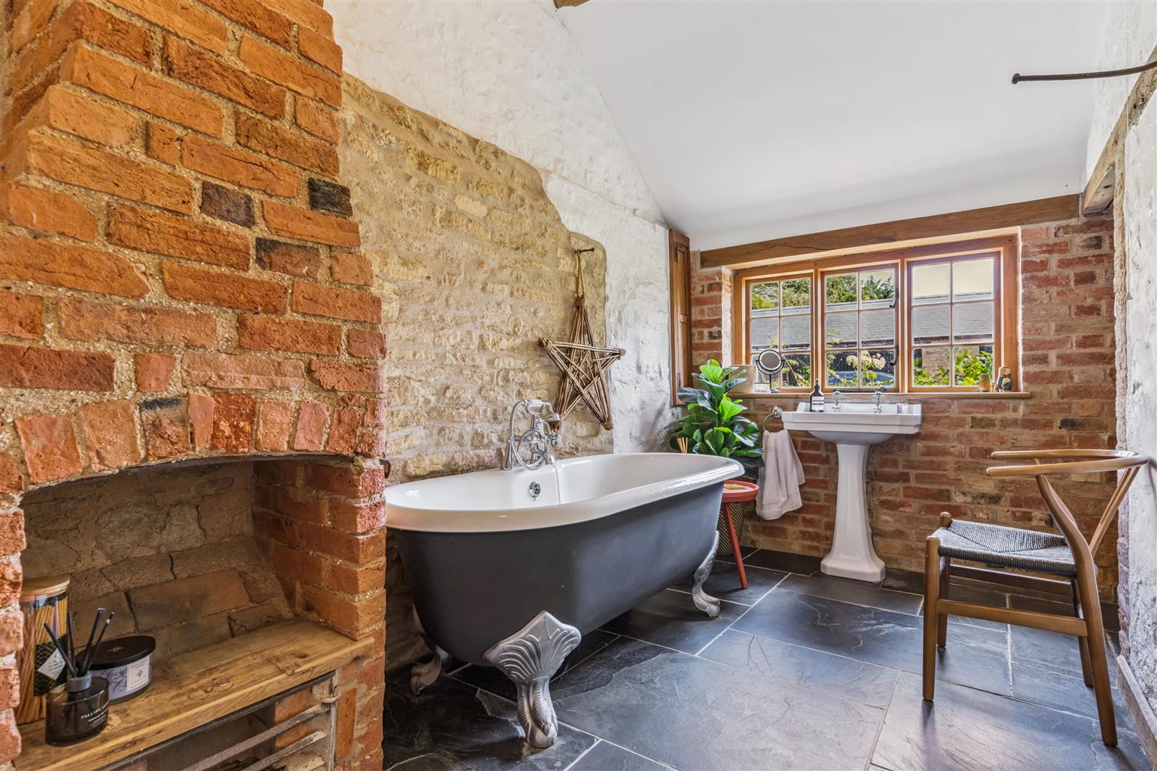 The Master bedroom has exposed stonework and brickwork to the walls and exposed beams and roof trusses. There is a walk in wardrobe and glazed doors open to the garden area. En suite to this Master Bedroom is a fully tiled shower cubicle, plunge bath with shower attachments, WC and wash basin. Two additional double bedrooms are located on the ground floor both with fitted wardrobes. The family bathroom has an interesting feature with an original red brick chimney rising from floor to ceiling. within the bathroom there is a roll top bath with shower attachments mounted on ball and claw pedestals, walk in tiled shower cubicle, wc and wash basin.