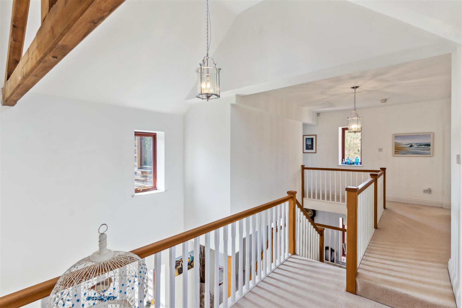 The first floor accommodation provides four bedrooms with the option of a fifth bedroom in the tower. The Master bedroom has glazed double doors fronting a Juliet balcony and further benefits from having a large en suite shower room. There are lovely views to the garden from this room and an exposed "A" frame to the vaulted ceiling creates a stunning feature. The guest bedroom also offers en suite facilities with integrated WC and wash basin in a vanity surround. Two further double bedrooms are available in addition to a family bathroom which has a "Bette" bath, integrated WC and vanity basin. Plumbing is available to accommodate a shower cubicle if desired.
