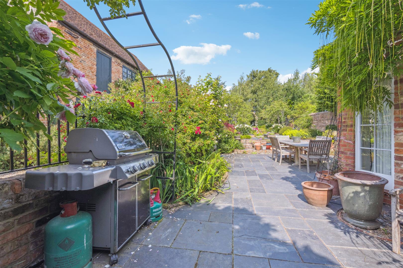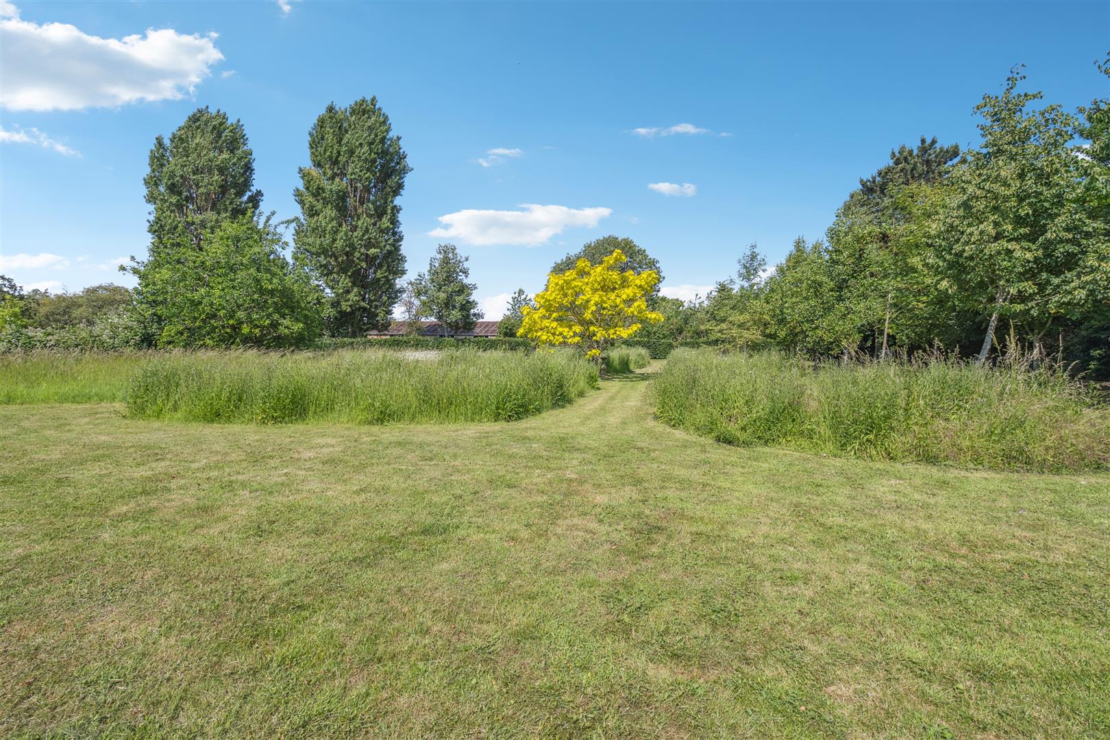Immediately to the rear of the property is the wisteria clad paved terrace and courtyard, excellent entertainment areas which front a beautiful rill flowing gently towards the property. The rill is bordered by paving which is interspersed with shrubbery, topiary and various varieties of flowering plant. Beyond this is grassland and the double garage. Elsewhere there is a large garden shed, greenhouse and sheltered vegetable garden arranged in raised beds. Finally, there is a paddock area not currently housing any animals but neatly maintained with areas of wildflower meadow. Our sellers have a pergola in this area, a serene outdoor space to enjoy birdsong and absolute peace and quiet.
