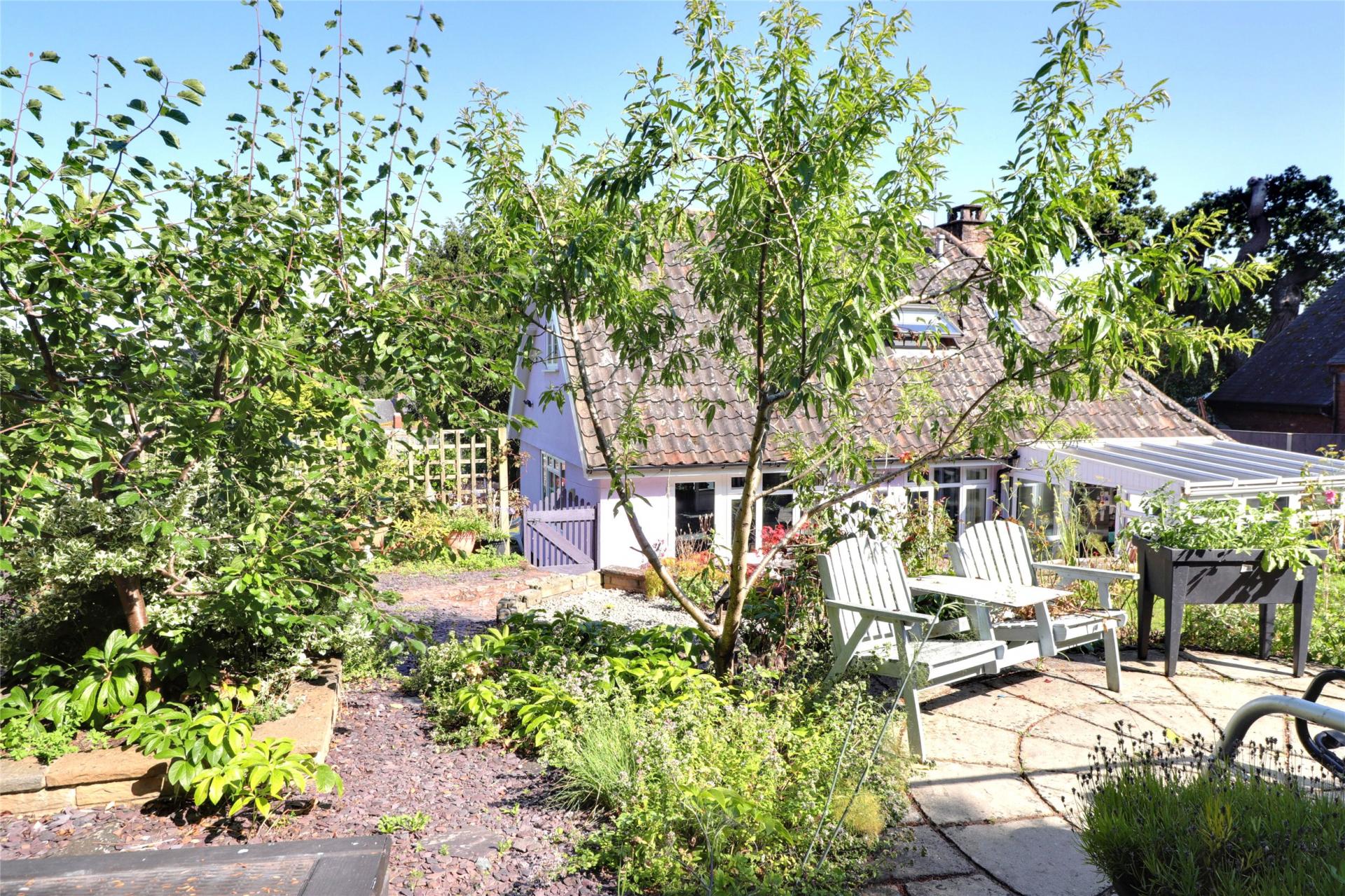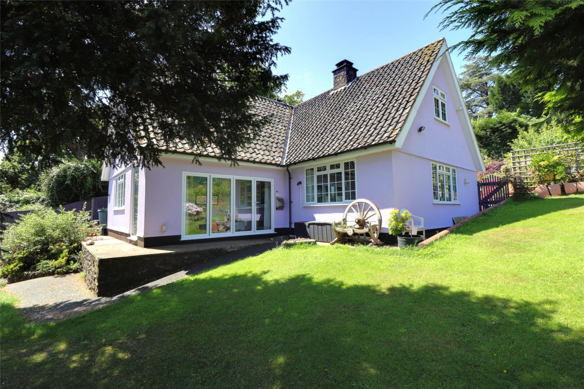 An individually designed detached chalet bungalow delightfully situated in this highly regarded historic village with well proportioned and versatile 3 bedroom en-suite accommodation and set in mature surrounding gardens with coastal views, double car port and parking. EPC Rating D. Council Tax Band E