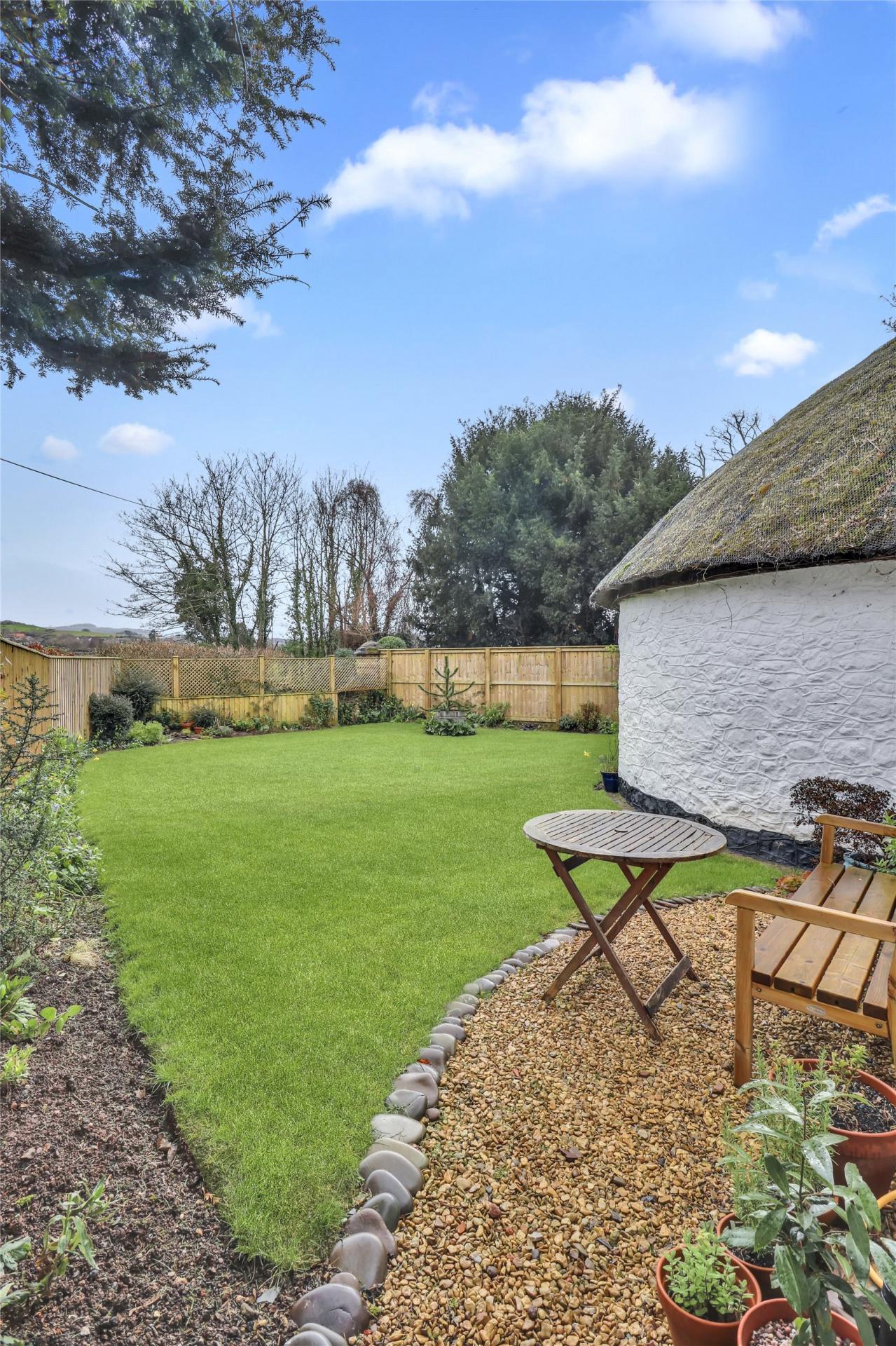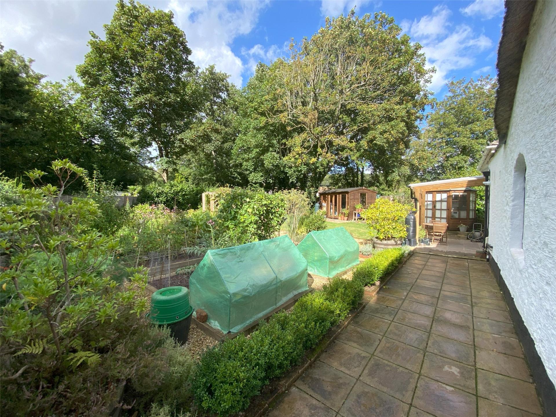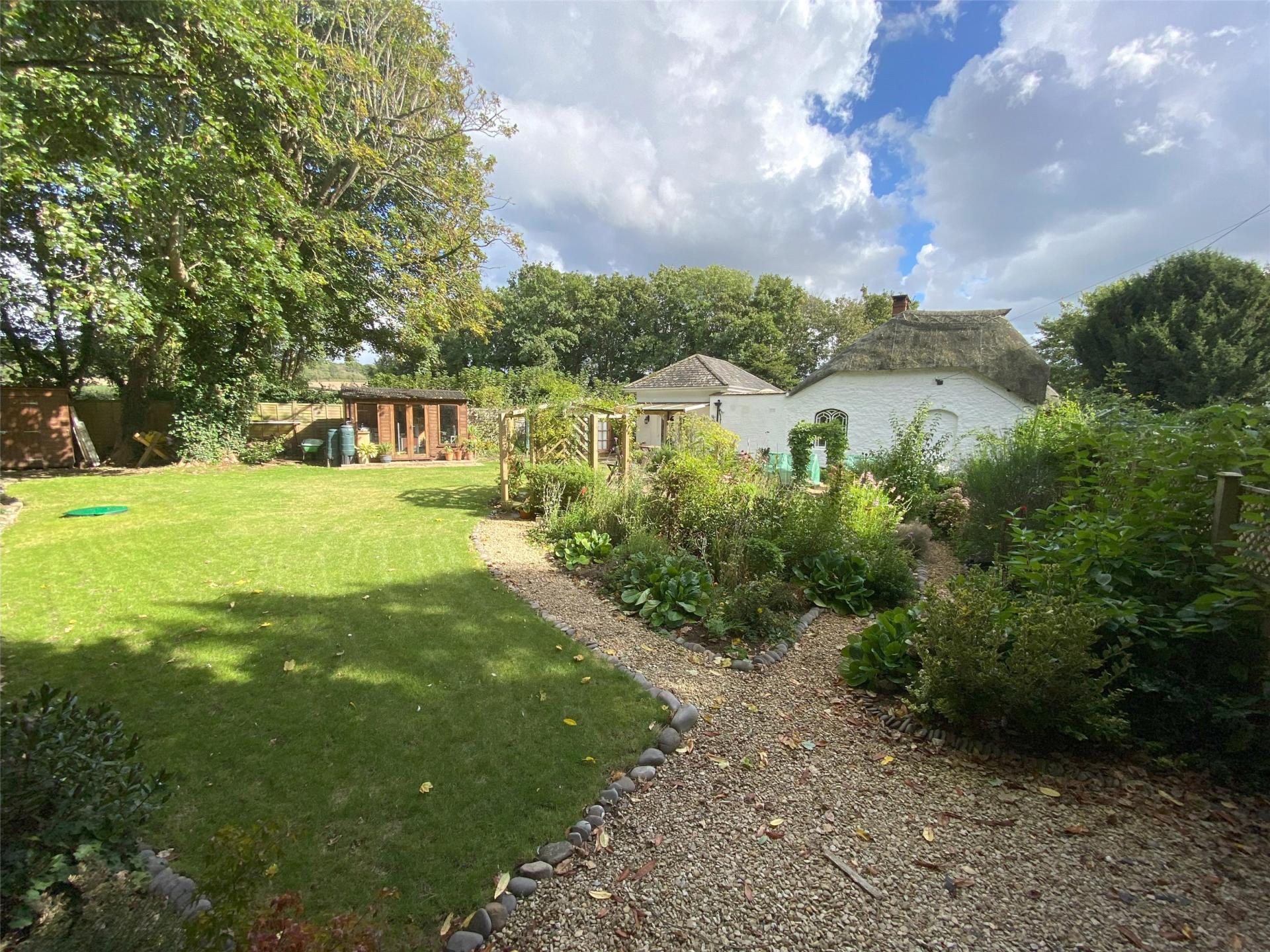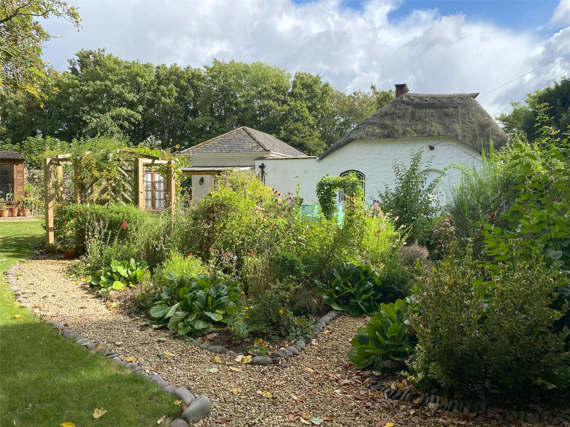 A charming and unique Grade II listed single storey thatched cottage located in a small hamlet within a 10 minute walk of the sea and with versatile 3 bedroom en-suite character accommodation, beautiful landscaped gardens and parking. EPC Rating exempt. Council Tax Band B