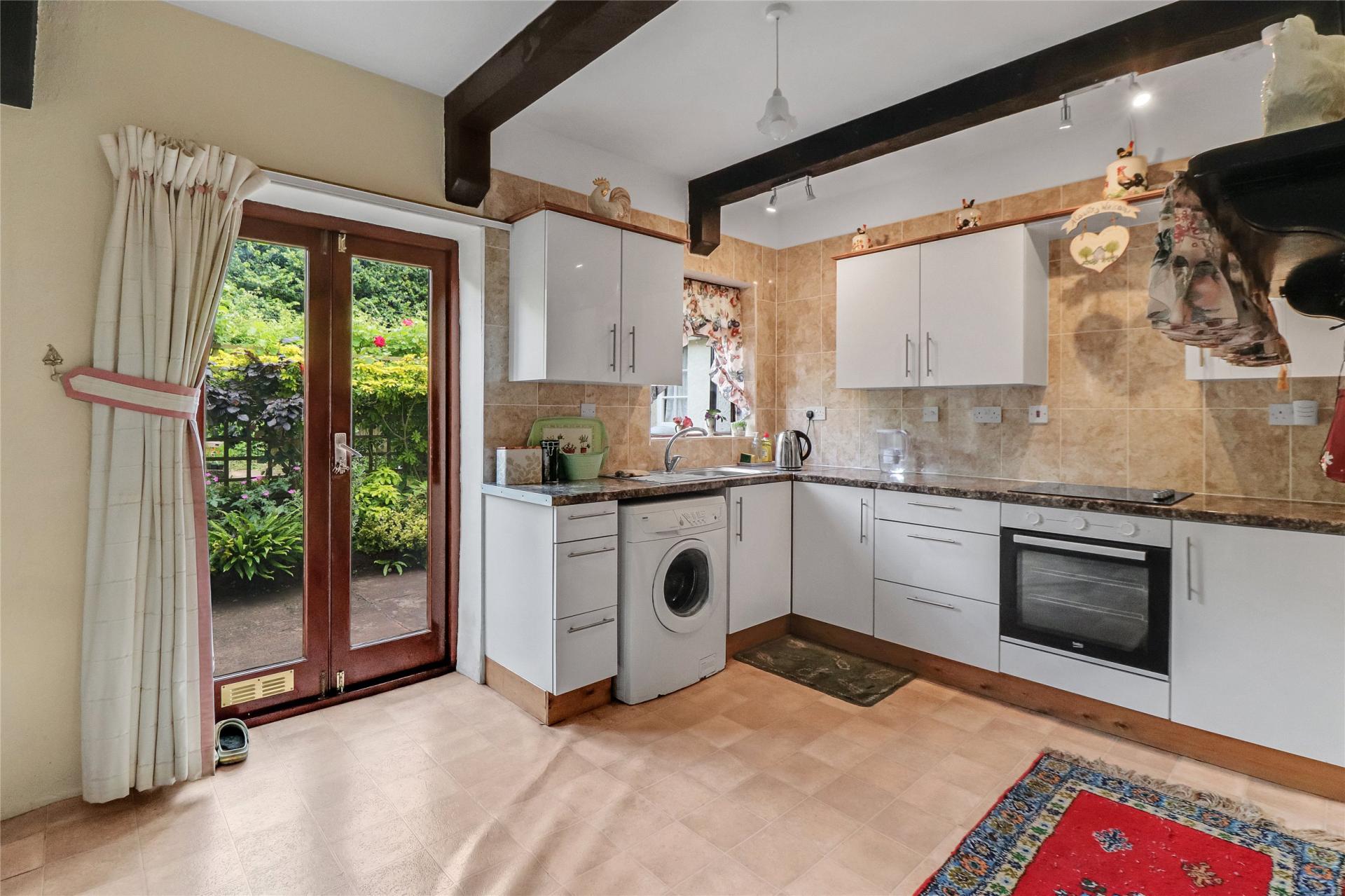 Arranged over two floors the gas centrally heated accommodation in brief comprises; charming entrance porch with tiled floor and stable door to reception hall, triple aspect drawing room with open fireplace, a beautiful double aspect bay window dining room with tiled fireplace and gas fire, double aspect fitted kitchen with double doors to outside and fitted with a range of base and wall units with roll edge work tops, stainless steel single drainer sink unit with mixer tap, integrated ceramic hob with oven under, part tiled surrounds, fireplace with recessed woodburner and gas fired Rayburn heating the central heating and hot water system.