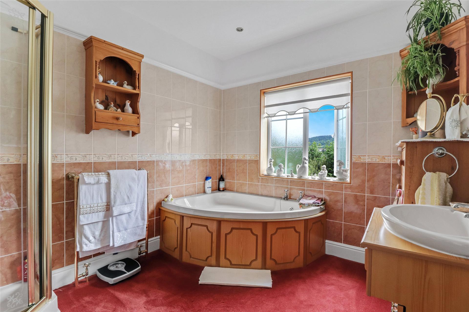 A carpeted staircase from the reception hall leads to the first floor landing off which there are three double bedrooms (formally four) with the front rooms enjoying wonderful views towards the surrounding hills. There is also a dressing/box room with airing cupboard, separate W.C with basin and a family bathroom fitted with a four piece suite comprising; corner bath, pedestal wash basin, low level W.C. quadrant shower enclosure, tiled walls to dado height and heated towel rail.