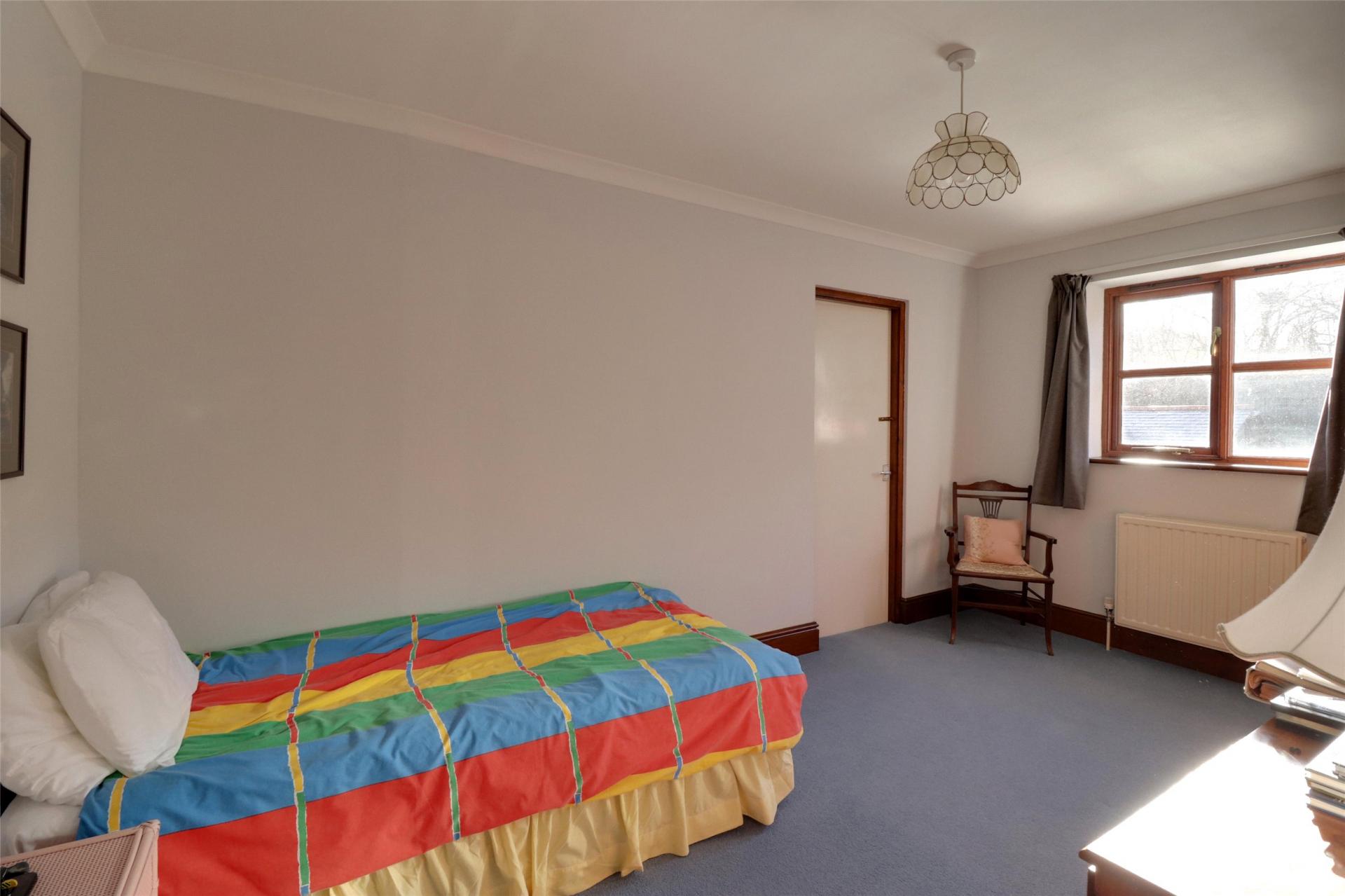 Bedroom 2. Double aspect with windows side and rear with views over the garden and towards the Church. Double radiator, modern slim line wash hand basin.