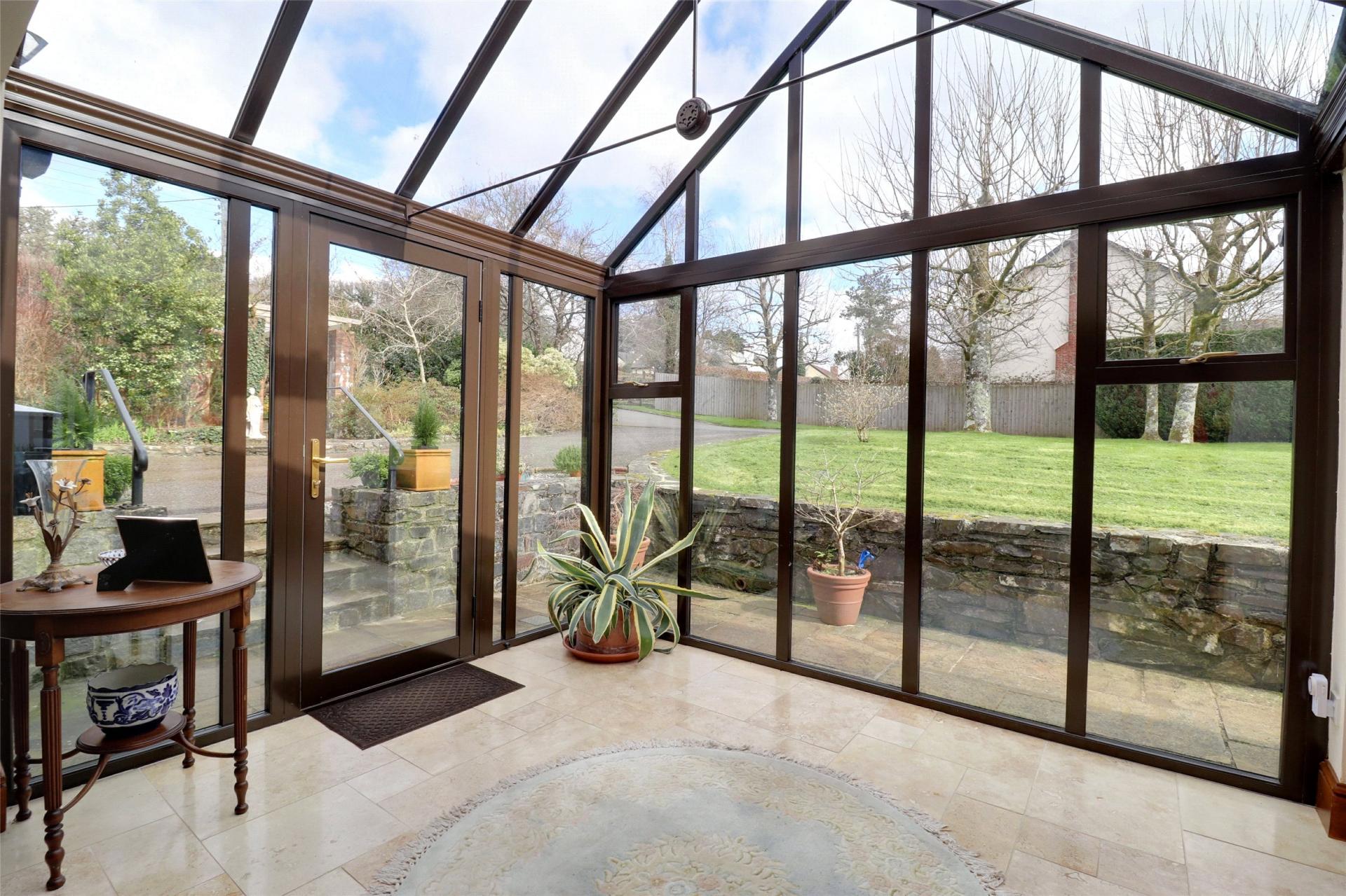 Accommodation Glazed Reception Hall. Double glazed to two elevations with pitched double glazed roof, tiled floor, cupboard, access into utility areas and full length glazed door pair of full length windows at either side into:-