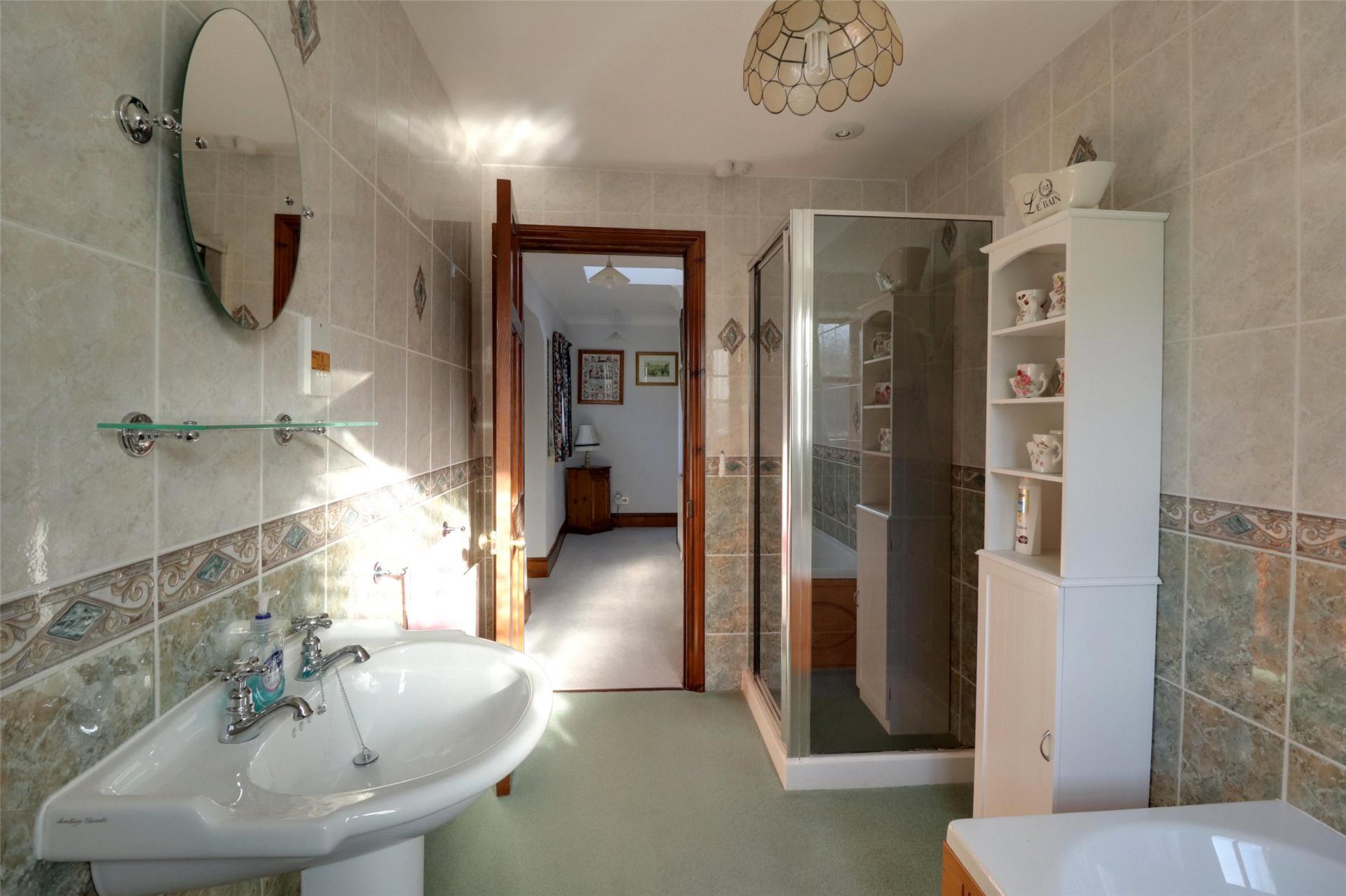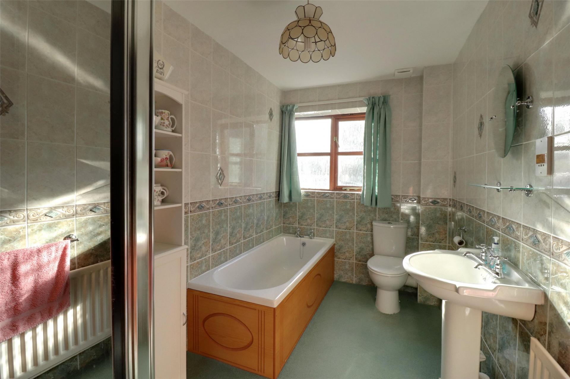 Bathroom. Fully tiled with bath, shower cubicle, wash hand basin, W.C, single radiator.