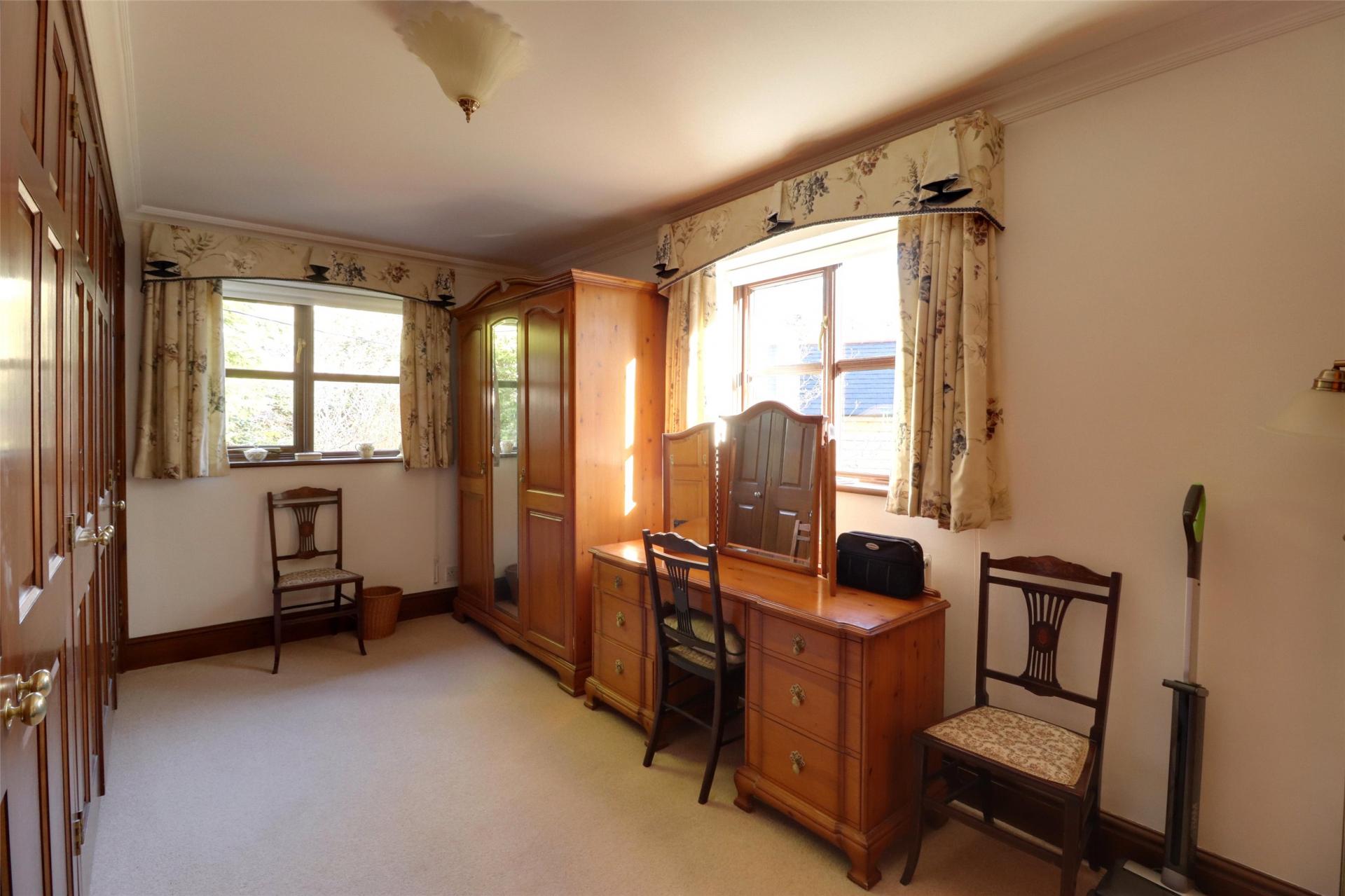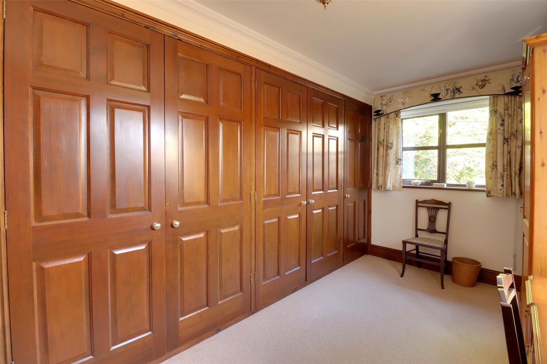 Bedroom 3. (presently used as a large dressing room for the principle bedroom), double aspect with windows front and side, double radiator, range of fitted wardrobes (2 double and 1 single)