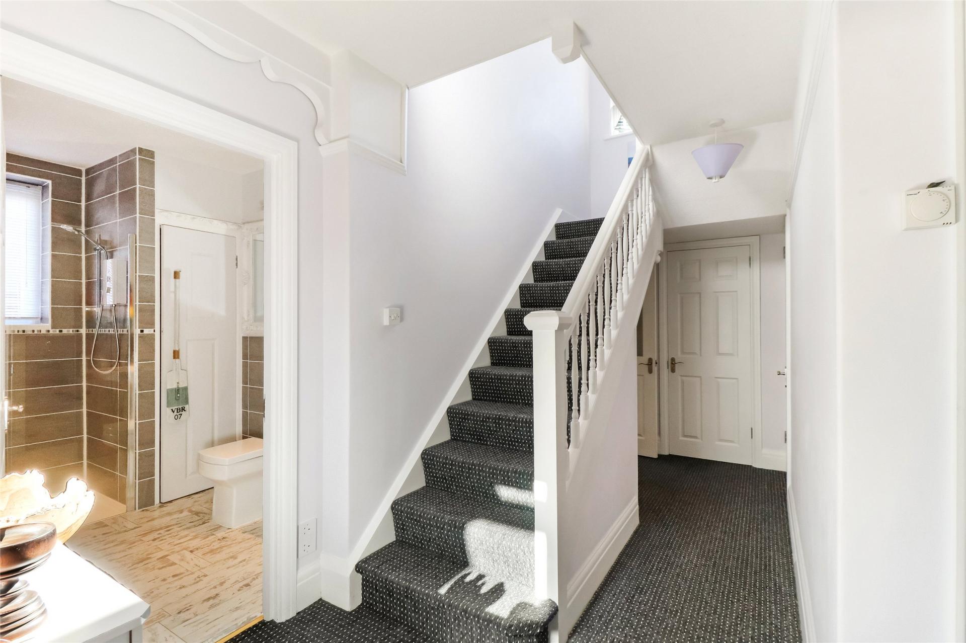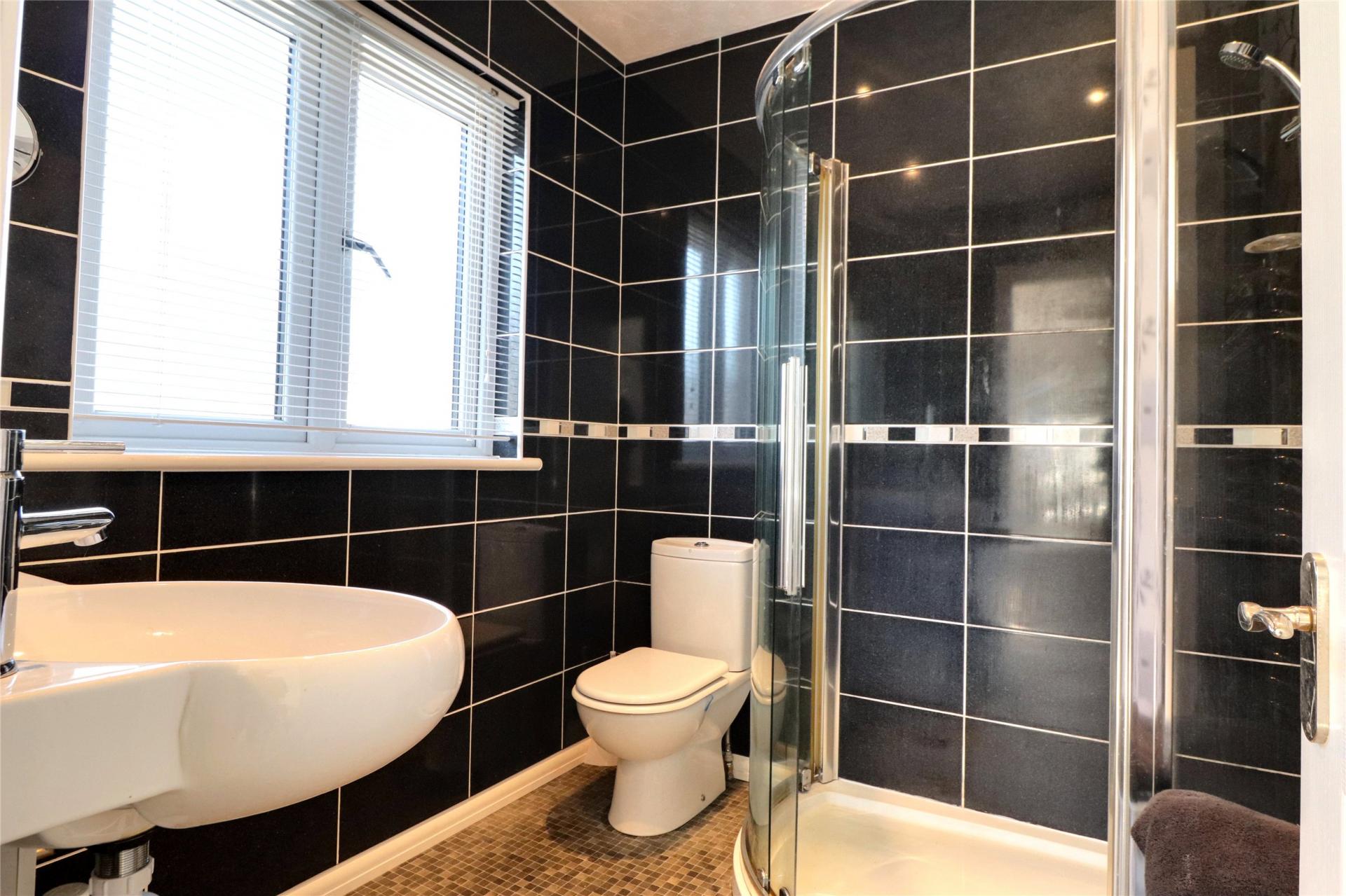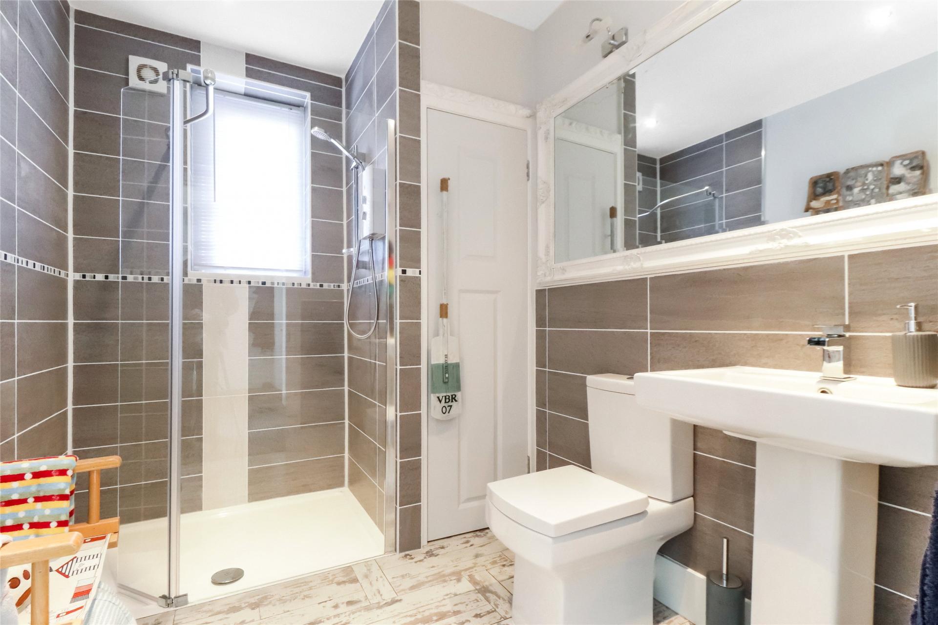 On the first floor there are four bedrooms, the principal room having fitted wardrobes and a part tiled en-suite shower room fitted with a three piece white and chrome suite, the guest bedroom also benefits from an en-suite shower room and there are two further bedrooms, a bathroom and a separate W.C.