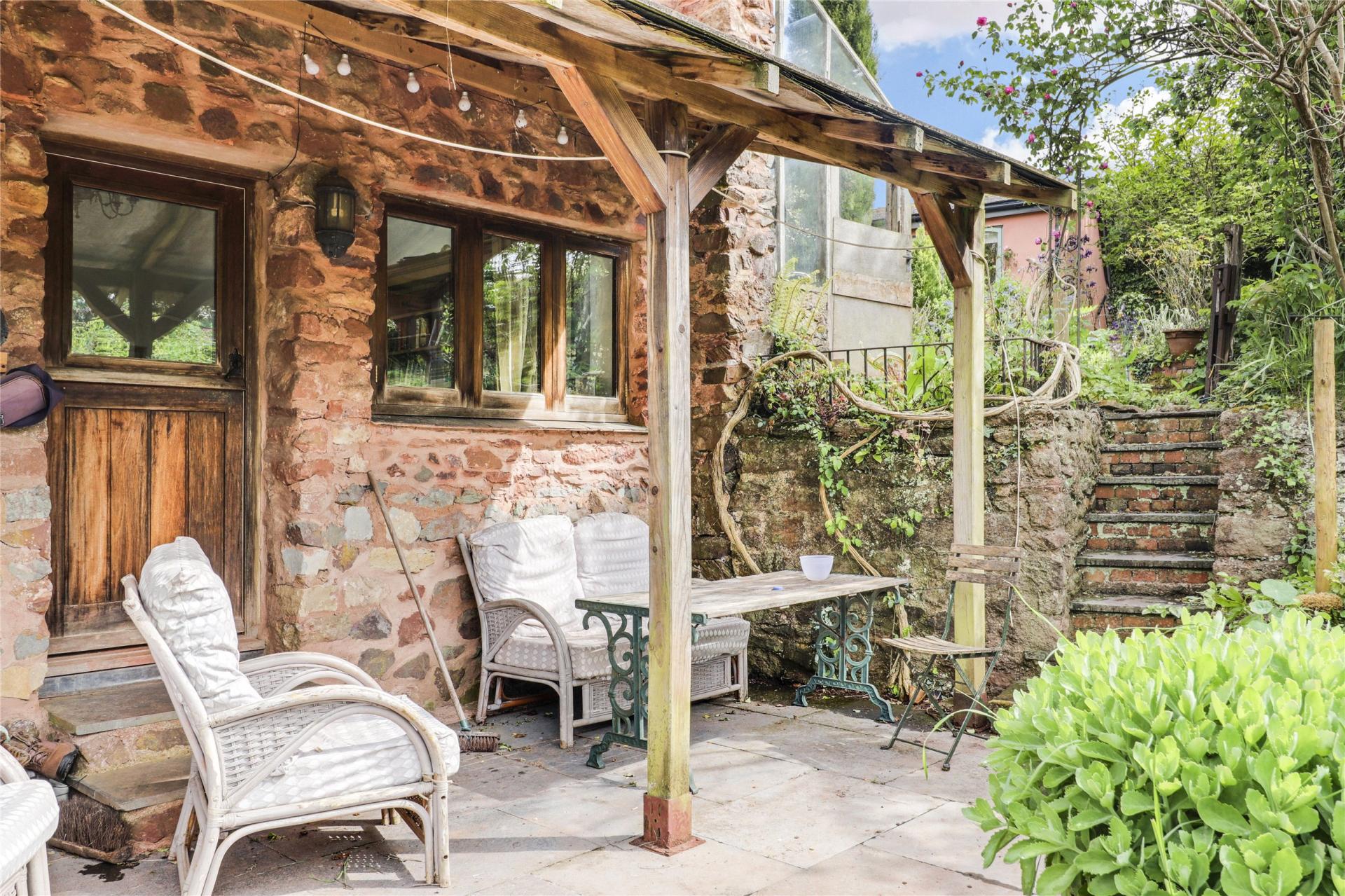 The property is set in around 7 acres of land made up of gardens, orchard, copse and pasture. Approached off the lane onto a concrete private road which neighbouring properties have right of way over. The track runs into a private drive leading up to the property or through a five bar gate into the courtyard where the majority of the outbuildings and holiday cottage is situated. A further five bar gate gives access to an orchard, streamside gardens, stable and tractor shed with the fields beyond. There is also a copse with small pond and summerhouse, a kitchen garden, polytunnel, chicken run and a private area of garden with patio immediately outside of the kitchen/dining room which backs onto one of the fields.