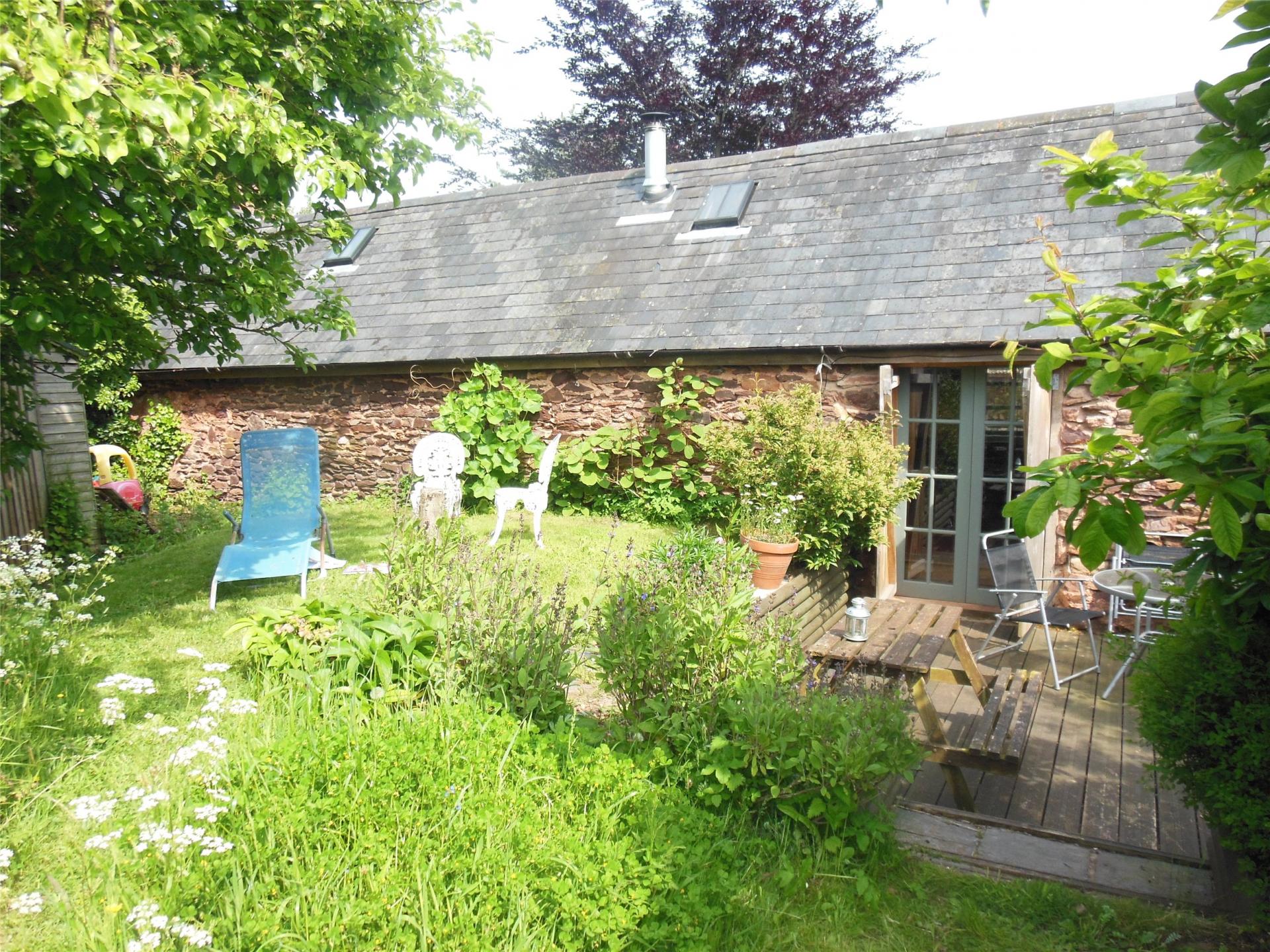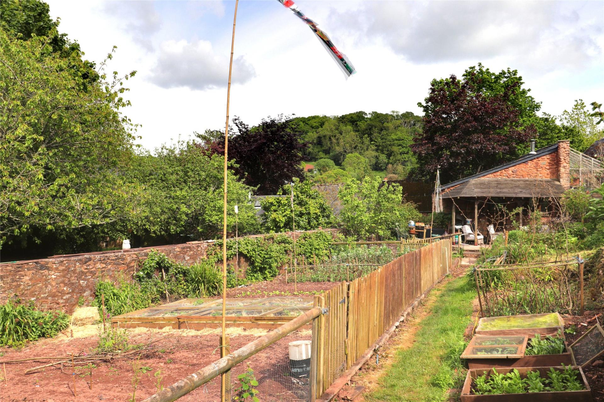 The property is set in around 7 acres of land made up of gardens, orchard, copse and pasture. Approached off the lane onto a concrete private road which neighbouring properties have right of way over. The track runs into a private drive leading up to the property or through a five bar gate into the courtyard where the majority of the outbuildings and holiday cottage is situated. A further five bar gate gives access to an orchard, streamside gardens, stable and tractor shed with the fields beyond. There is also a copse with small pond and summerhouse, a kitchen garden, polytunnel, chicken run and a private area of garden with patio immediately outside of the kitchen/dining room which backs onto one of the fields.