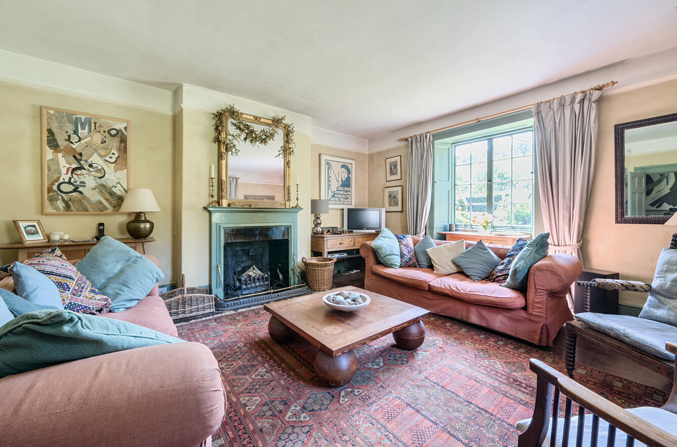 The double-aspect sitting room is a stunning space, boasting high ceilings, a charming feature fireplace, and large windows framing picturesque views of the beautifully gardens. This room is perfect for both relaxed family evenings and entertaining.