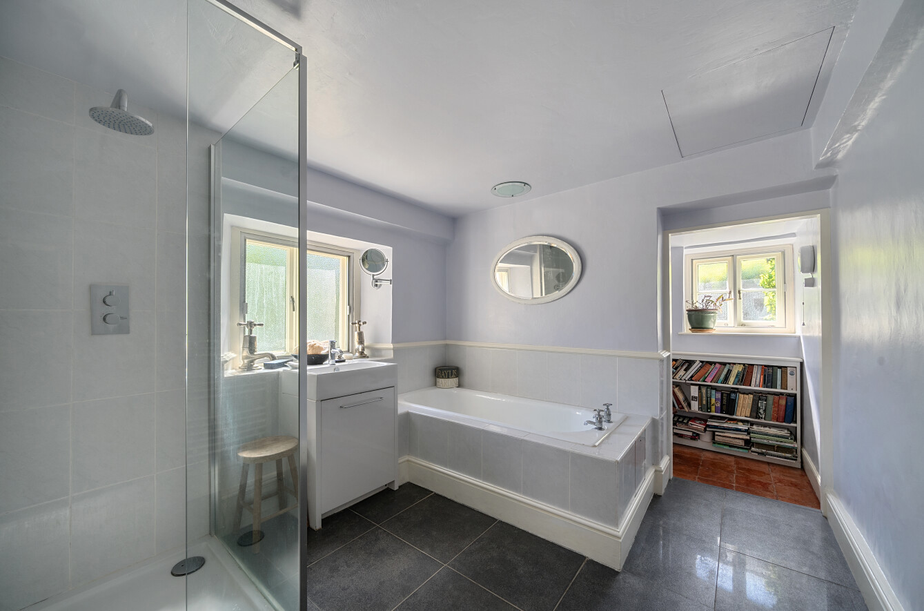 On the east side are two further double bedrooms, including the spacious master bedroom, which enjoys tranquil views across the gardens and the surrounding countryside beyond. A well-equipped main family bathroom, serving all four bedrooms, includes a wash hand basin, W.C., and bath.