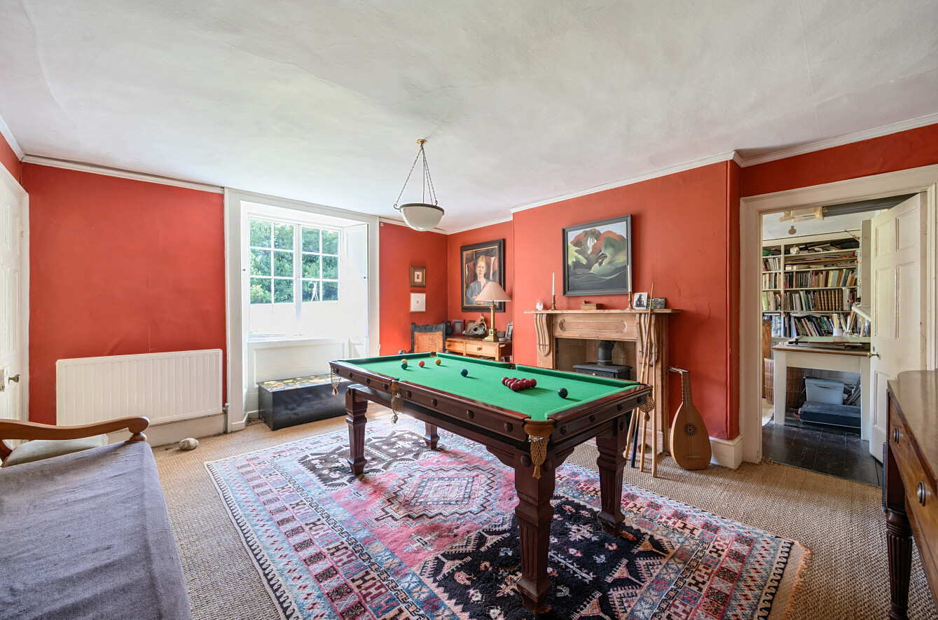 Continuing through the ground floor, you enter the original part of the house dating back to the 1700s, affectionately known as the Gamekeeper’s Cottage. This characterful room retains fascinating original features such as servants’ bells and meat hooks suspended from the ceiling, offering a unique and atmospheric space with its own feature fireplace - a true highlight of the property.