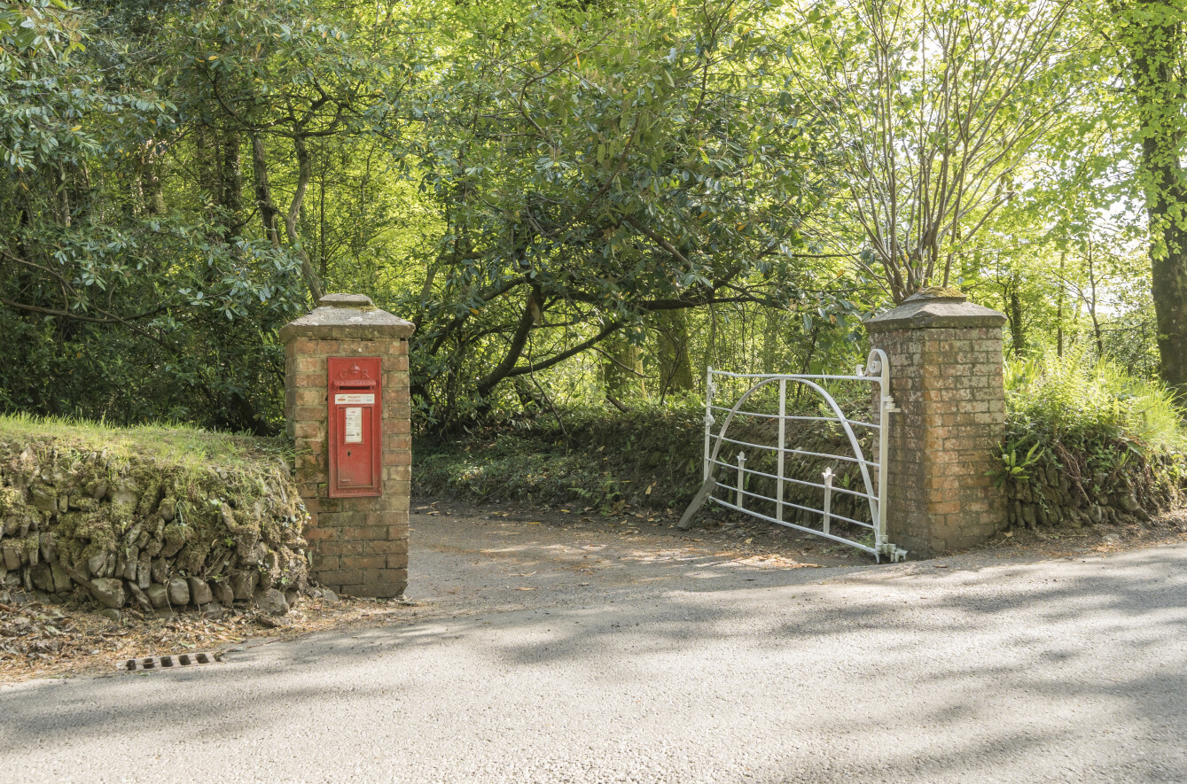 The property is approached from Jury Road via an elegant wrought iron gate, leading along a private drive that gracefully divides the formal gardens from a charming woodland area. The driveway widens to form a turning and parking area, then continues alongside the property to additional parking spaces with direct access to the stables. The level lawns and gardens are truly beautiful, predominantly laid to lush, well-maintained grass that provides a perfect canvas for outdoor living and leisure.