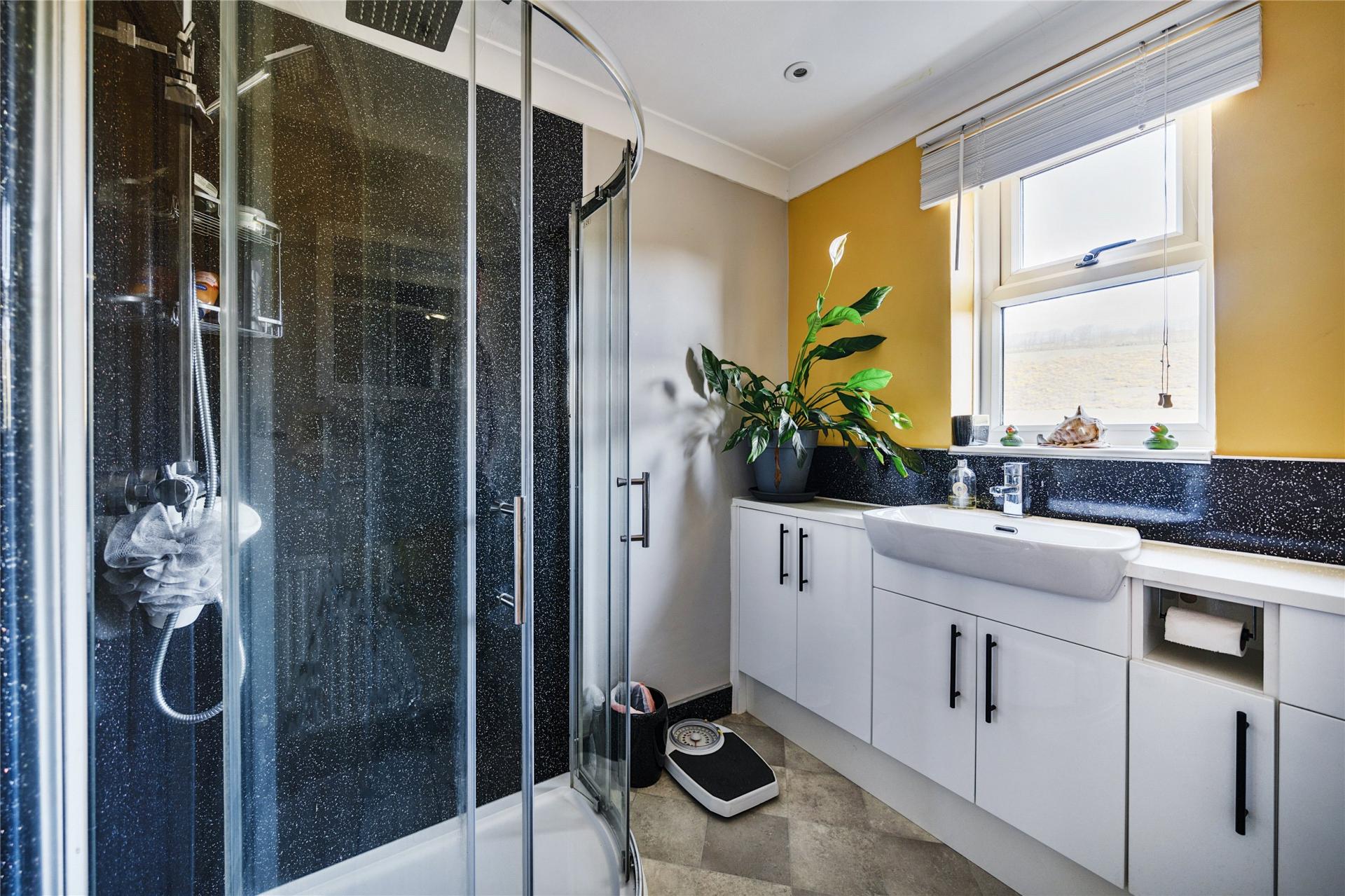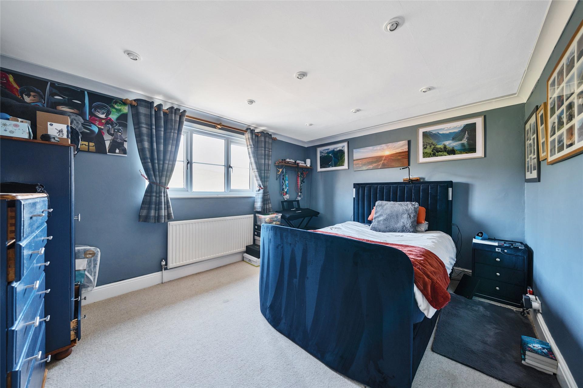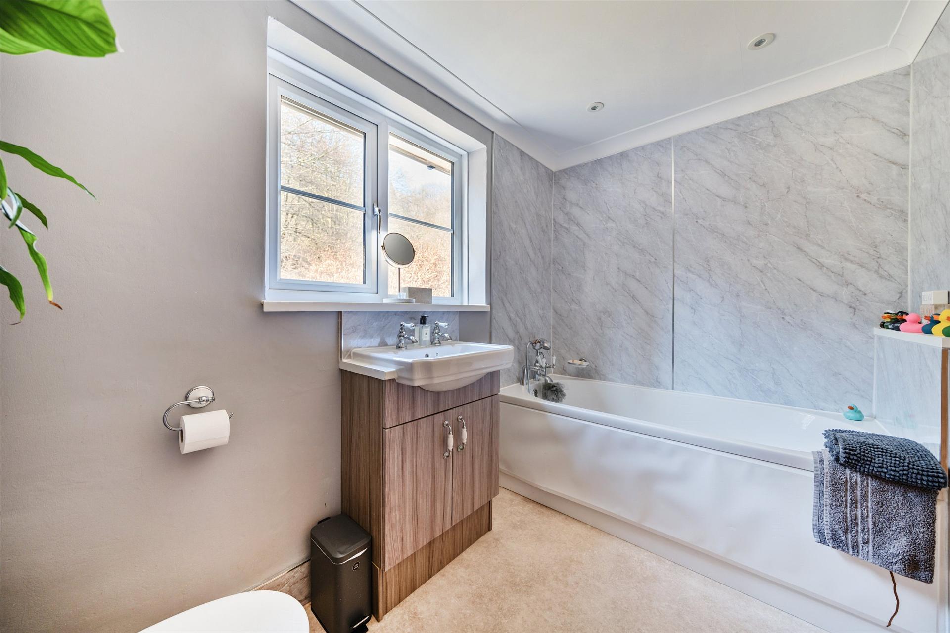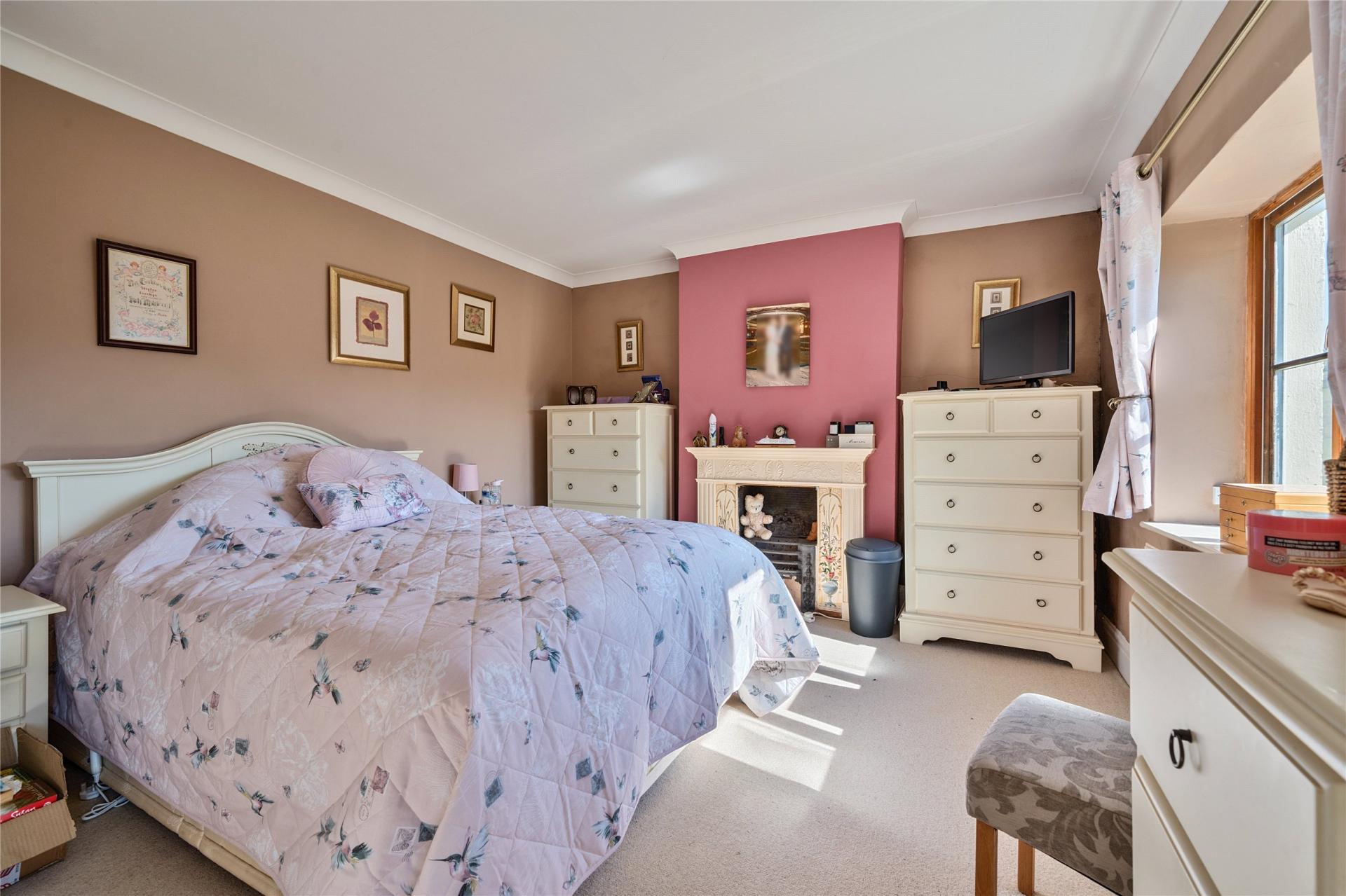 Turned stairs rise to the first floor, giving access to five generously sized bedrooms, each enjoying views over the gardens or surrounding countryside. The rooms provide flexibility for use as family bedrooms, guest accommodation, or even hobbies and home office space if required. Two well-appointed family bathrooms serve the first floor, fitted with modern suites and designed to comfortably meet the needs of a larger household.