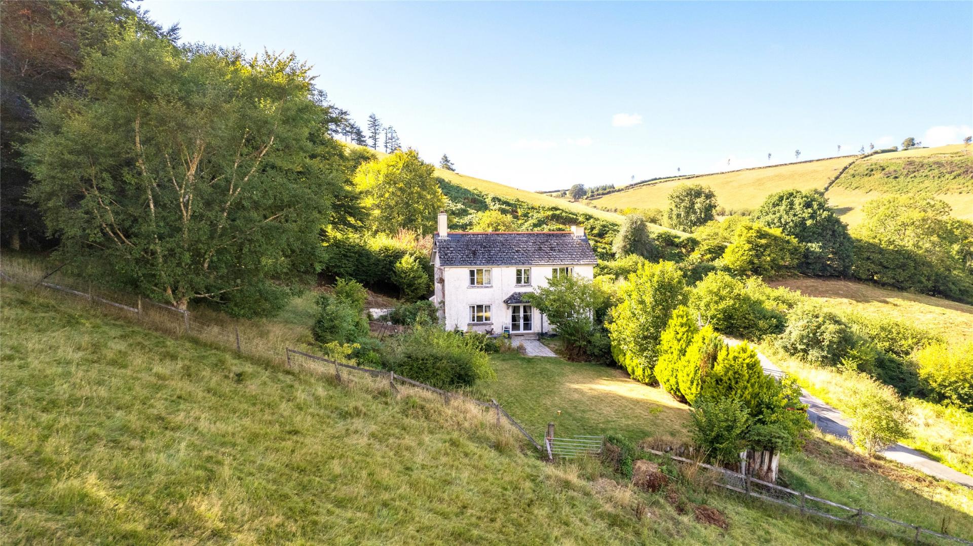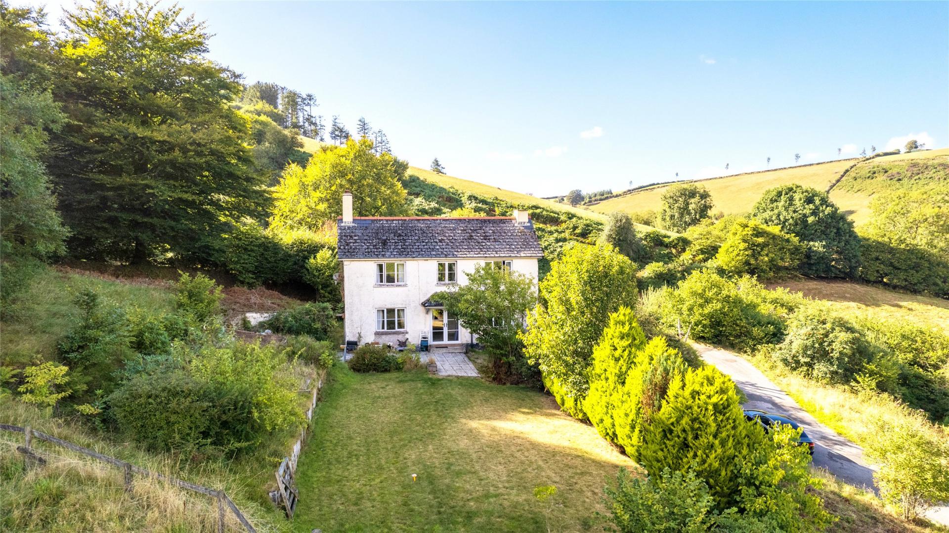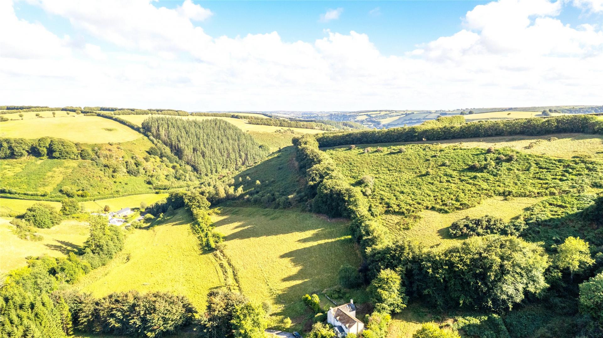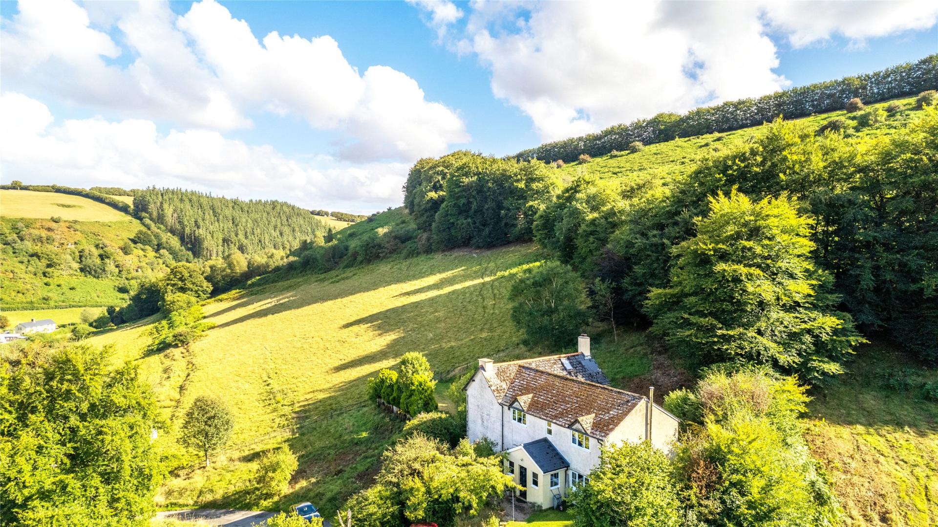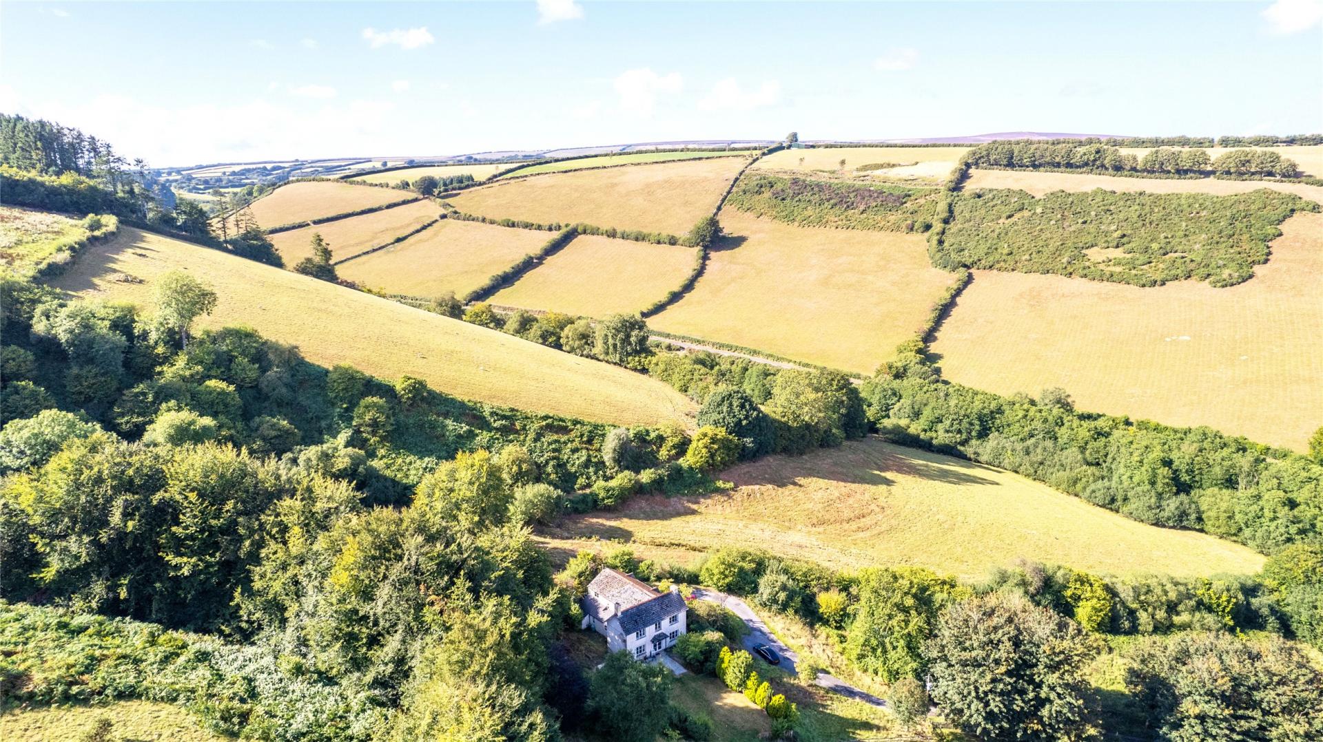 Approached from the Winsford–Exford road via a private, tree-lined driveway, the house enjoys an attractive arrival with a turned drive and ample parking to the front. The gardens and grounds extend to around 10 acres, including level lawned areas, established borders, and areas of pasture, providing both beauty and practicality.