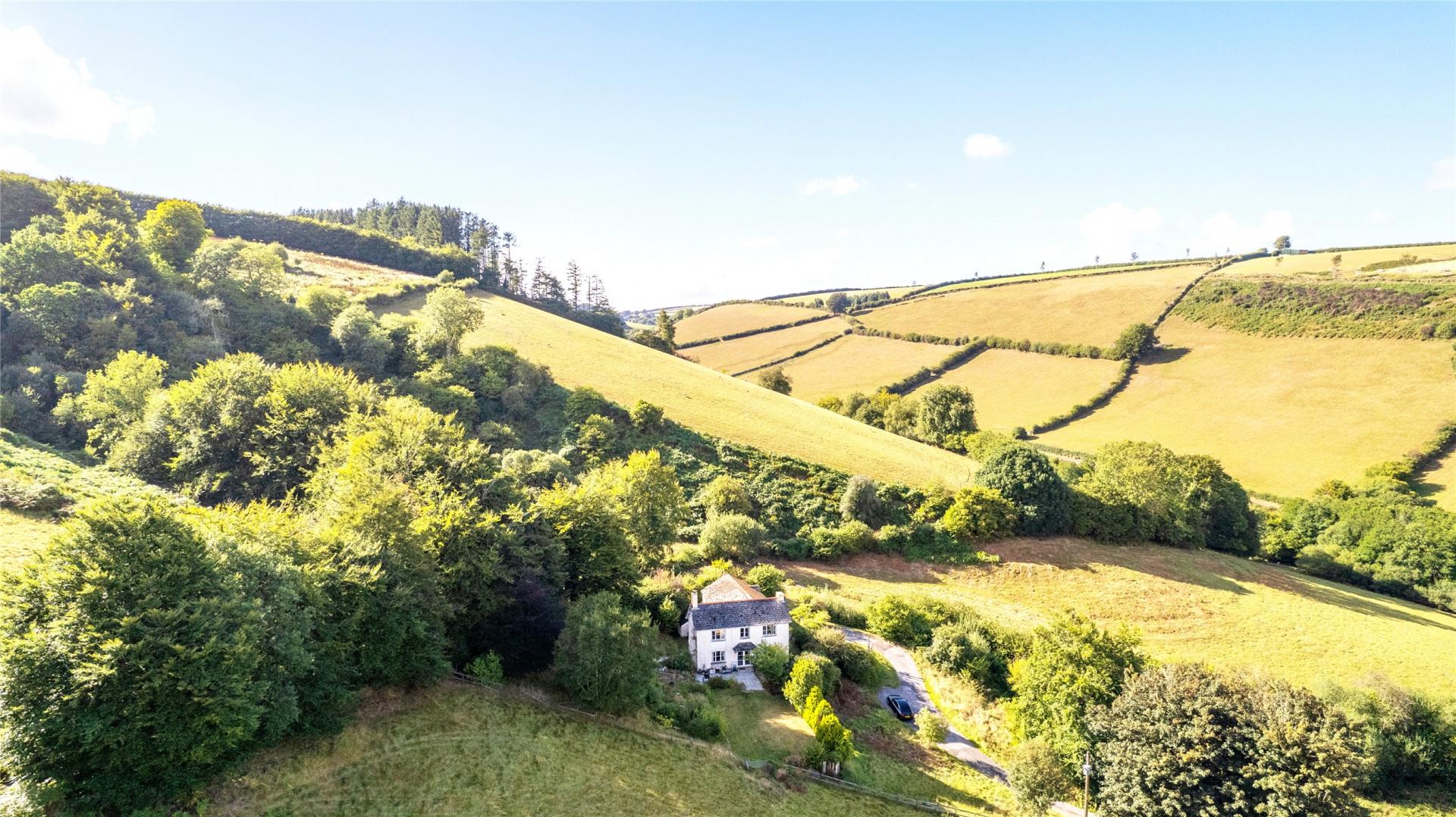 A charming farmhouse in an elevated private position with its own drive, set in 10 acres of pasture, gardens and grounds on the edge of Winsford village. The property offers flexible accommodation with 5 bedrooms, combining character, privacy, and stunning Exmoor surroundings. EPC E, Council tax F, Freehold.