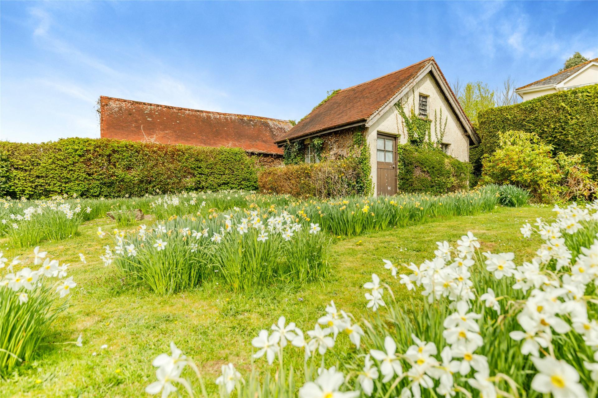 Beyond the main garden, a charming additional area known as the “Daffodil Garden” offers further lawned space, a substantial brick-built generator shed, and a detached garage. For equestrian enthusiasts, the property includes a sizeable barn currently used for stabling and storage, as well as approximately 6.8 acres of land thoughtfully divided into three well-maintained paddocks—providing excellent facilities and scope for those with horses or a desire for smallholding.