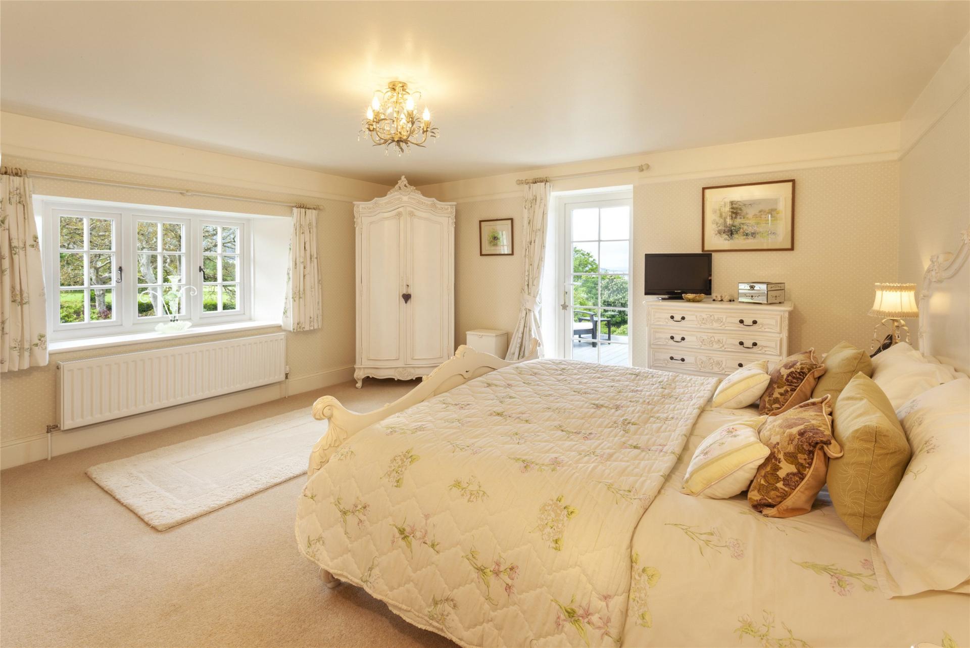 Stowleys enjoys a prestigious location off a country lane linking the highly regarded Exmoor village of Porlock with the picturesque National Trust village of Bossington. The property stands proud in over 2 acres of beautiful mature gardens with a paddock and is apositioned to take full advantage of the wonderful setting and panoramic views over Porlock Bay towards Porlock Weir, Hurlstone Point, the surrounding Exmoor Hills and some wonderful sun sets.