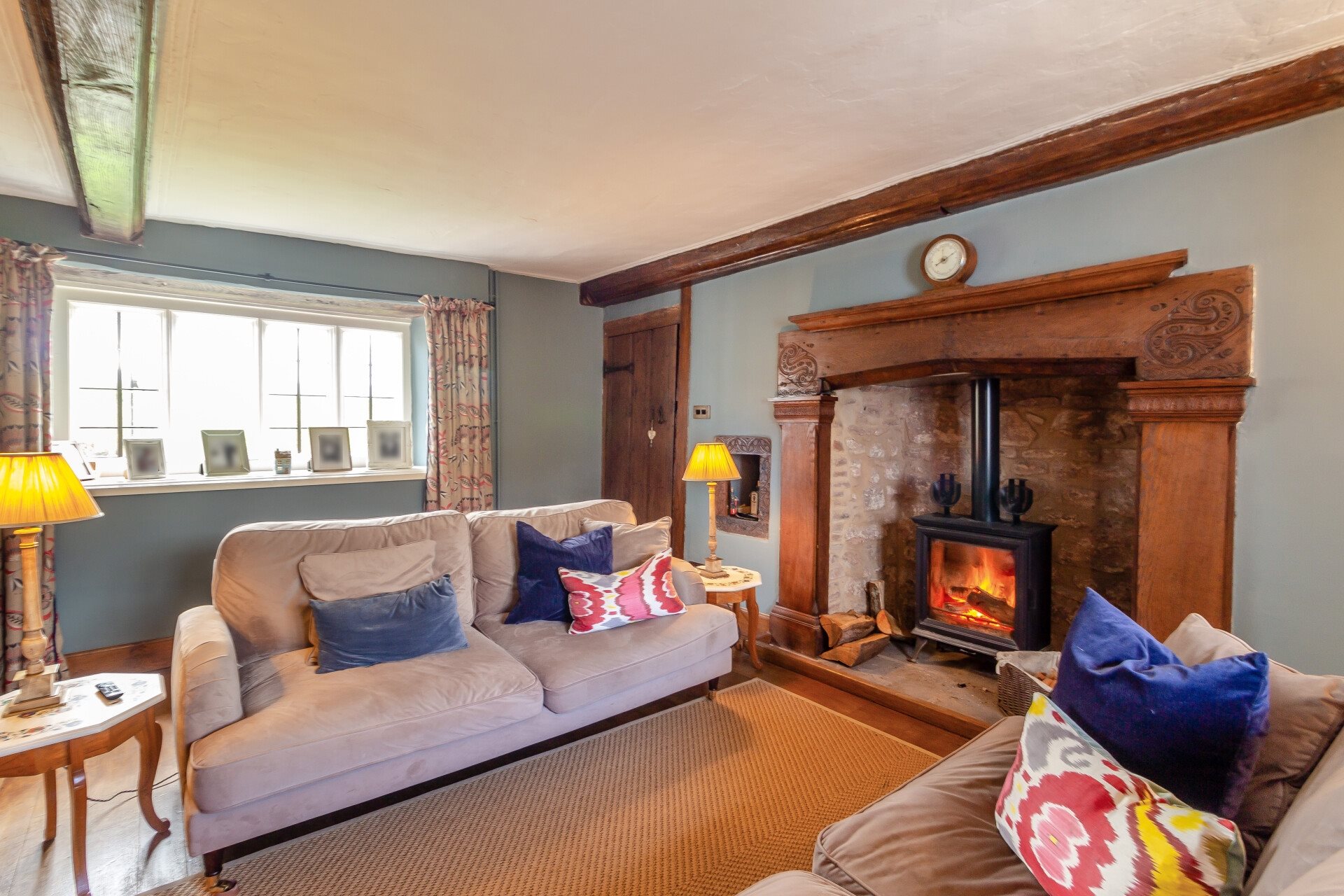 Wander into the sitting room to the right and you won't ever want to leave. The log burner nestled into a substantial and impressive inglenook fireplace is easily calling you over to sit next to the roaring flames and get cosy on a sofa as you admire the historic charm within this space.