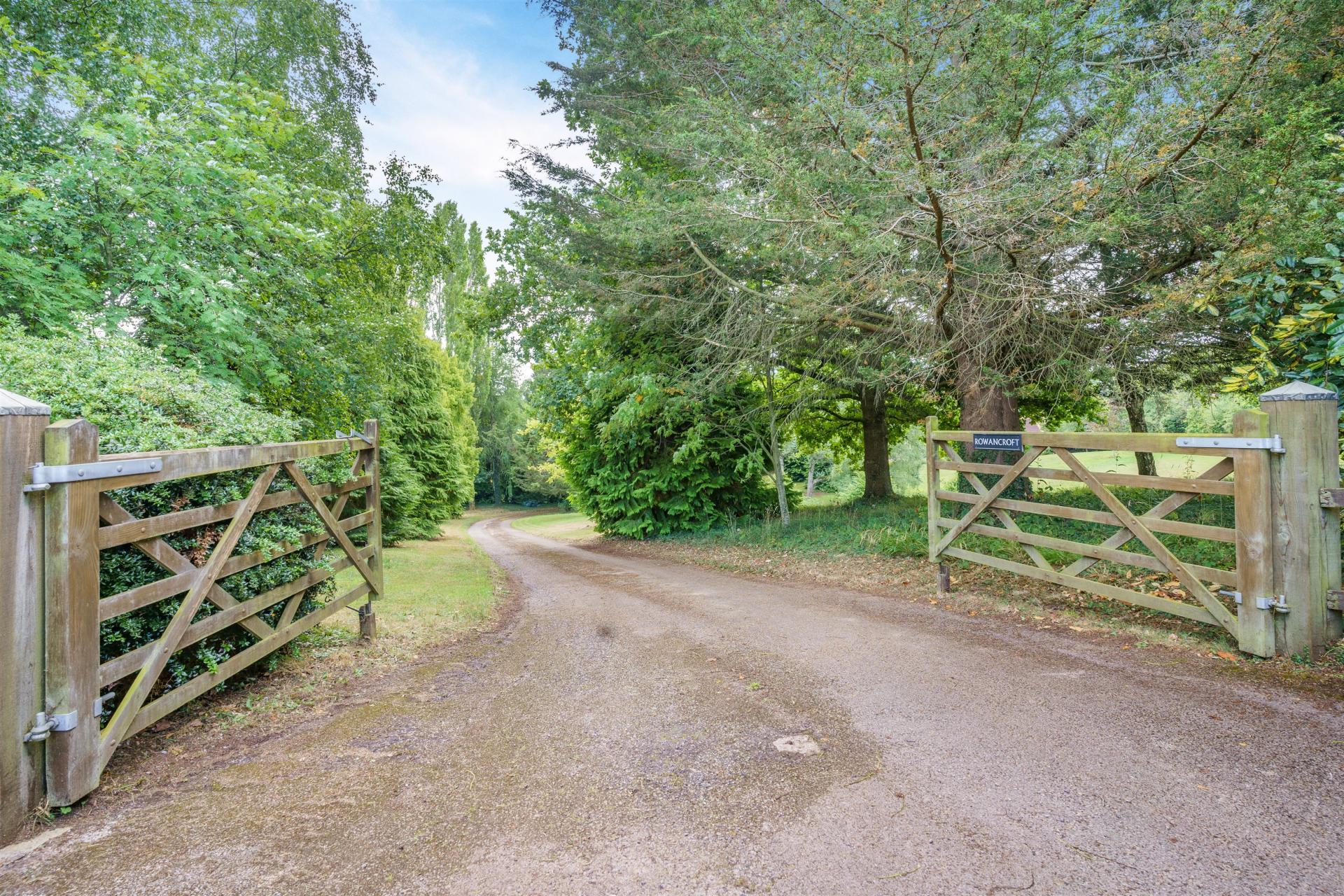 The driveway culminates in a generous turning circle in front of the house, providing ample off-road parking. At the far edge of the land lies a gently wild woodland, with meandering paths cut through to encourage exploration while supporting insects and local wildlife.
