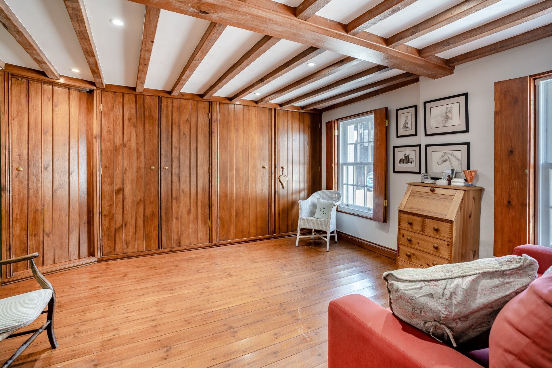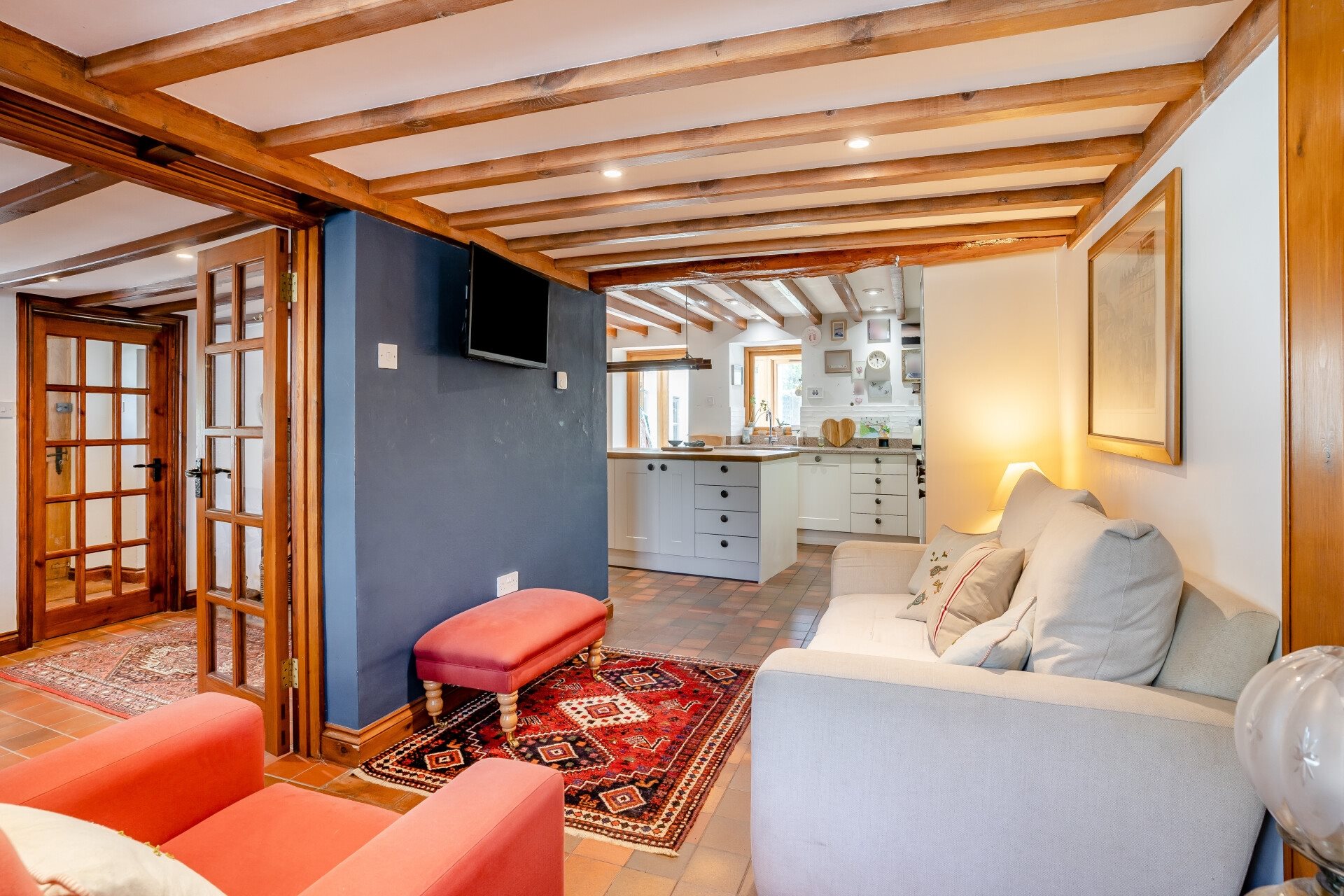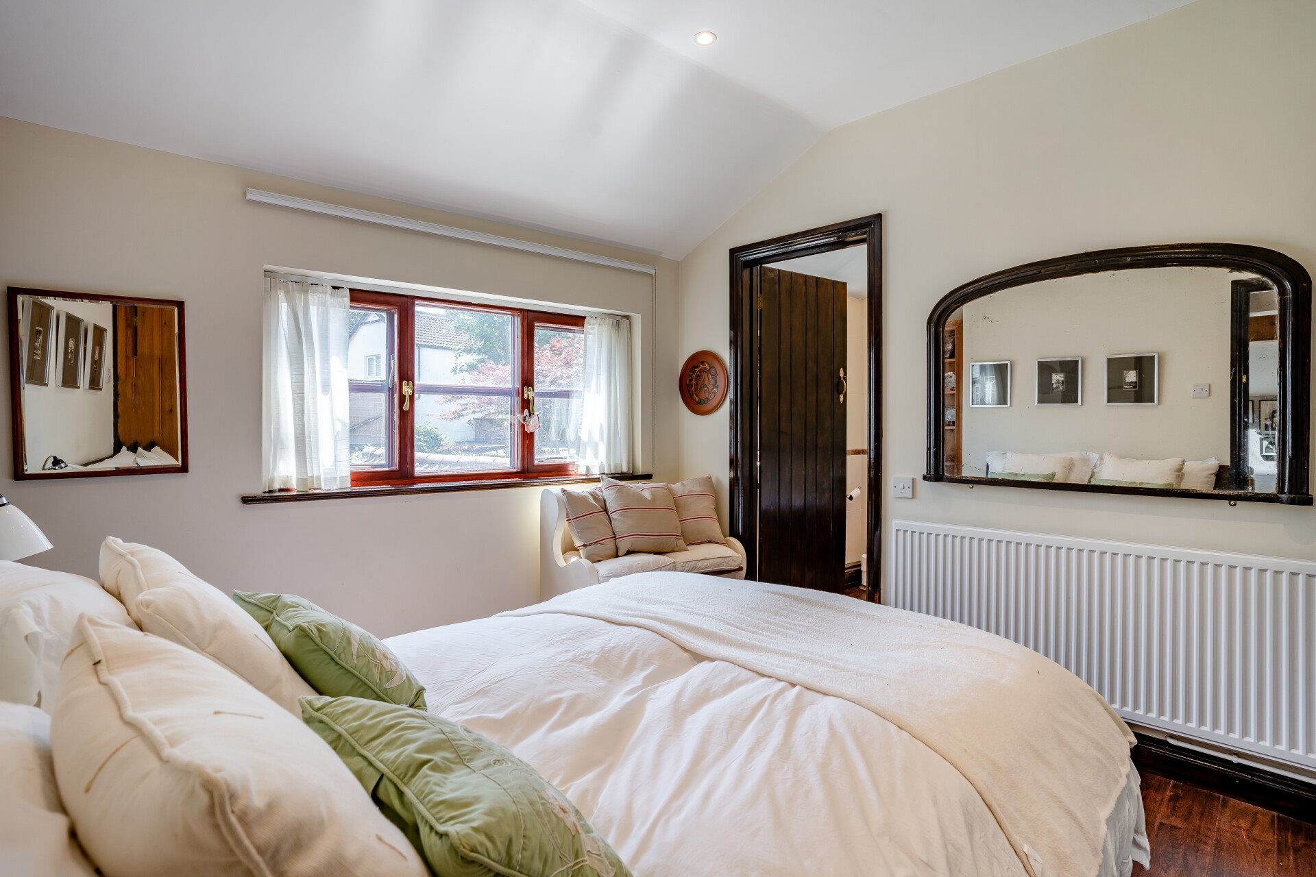 Behind its charming cottage frontage, this home opens into a surprisingly spacious and stylish interior, showcasing a beautifully flowing layout ideal for modern living. Entering through the welcoming kitchen, you are greeted by a central island and direct garden access, seamlessly connecting to the cosy snugonce a shop, now a relaxing retreat. A practical utility area with a cloakroom adds everyday convenience. The snug leads into a formal dining area featuring a fireplace and wood-burning stove, providing a warm and inviting atmosphere for gatherings. From the entrance hall, the property opens into a generously sized formal sitting room with French doors leading out to the rear garden, perfect for entertaining or enjoying quiet evenings.