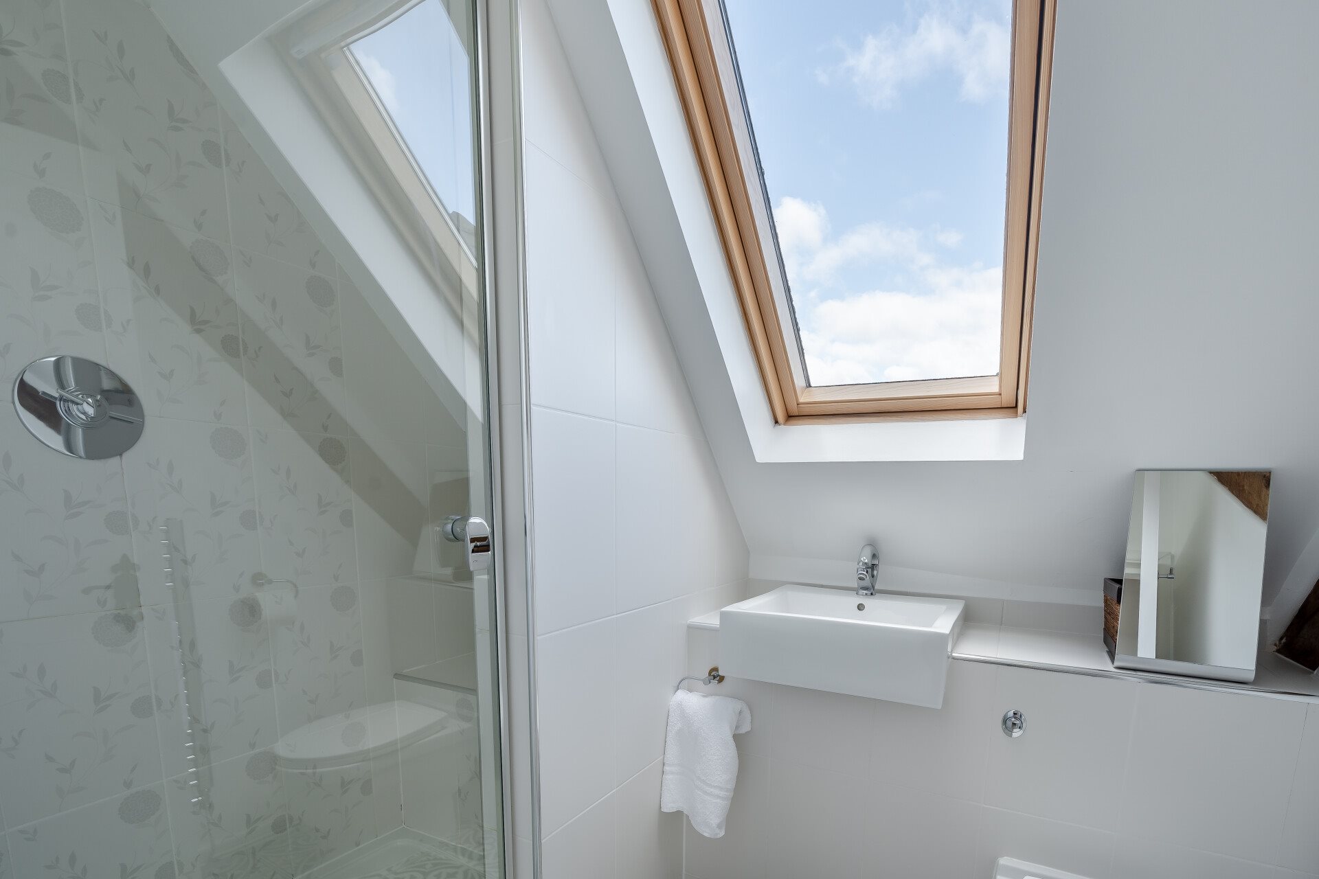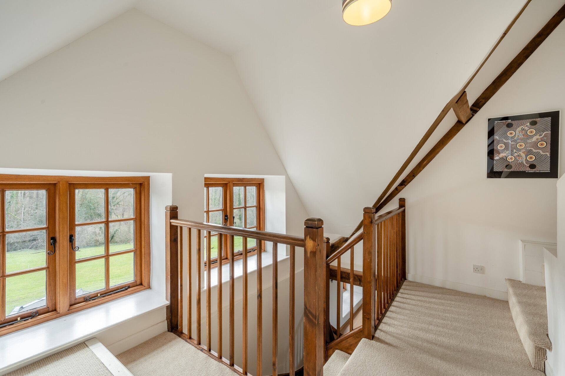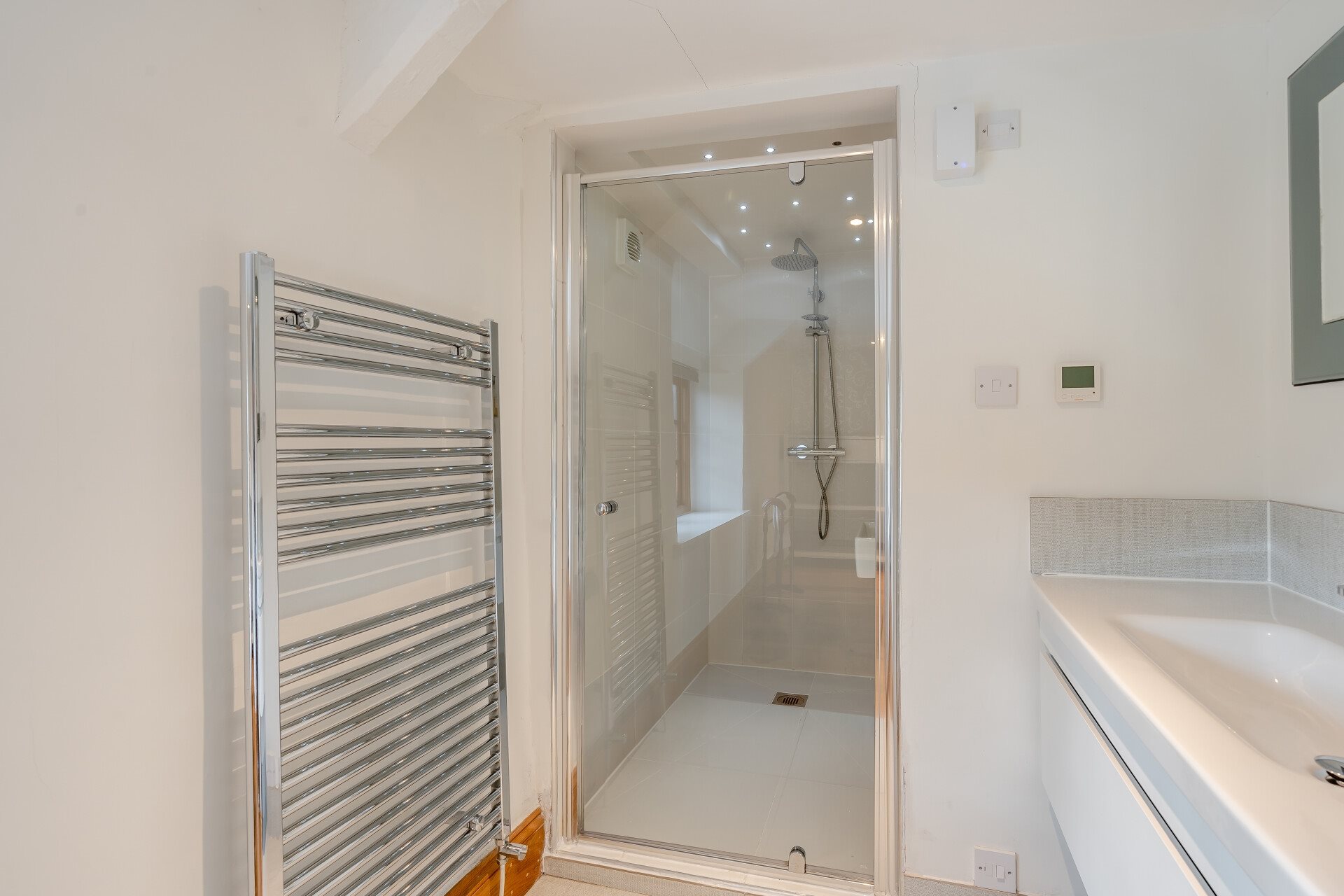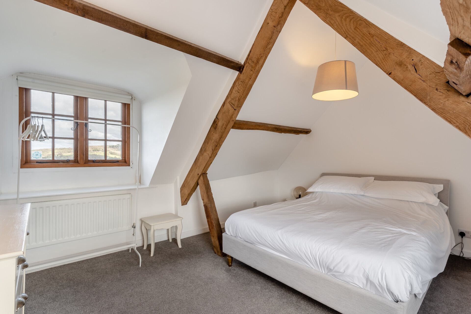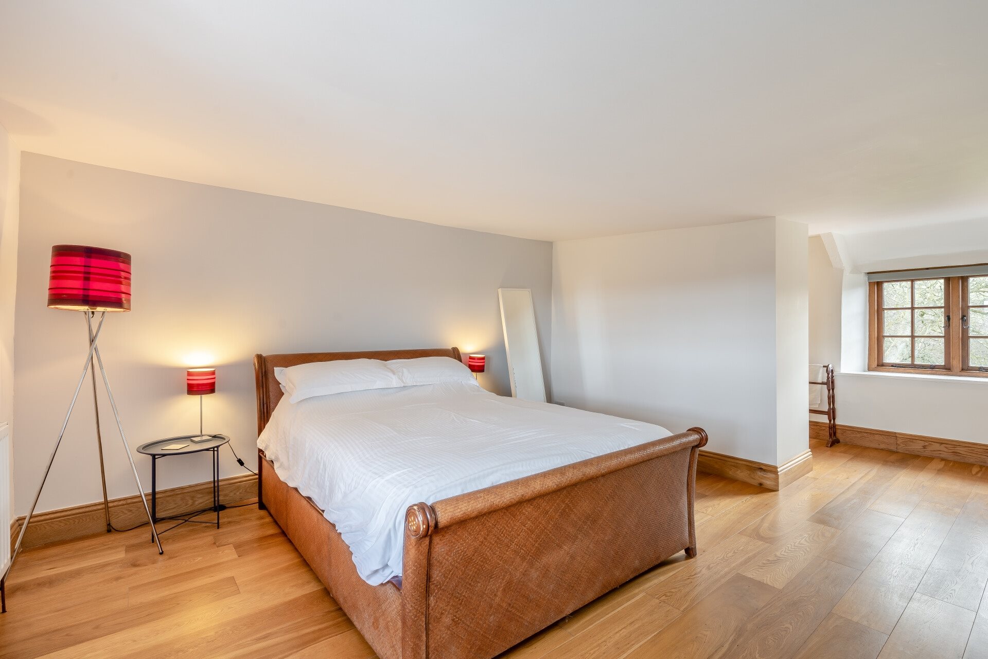 Five spacious double bedrooms and three bathrooms can be found on the top two floors, each of which has been restored to retain character features and offer a luxurious environment. The principal suite has a private dressing room and en suite shower room. The bedrooms on the second floor are vaulted and retain their original trusses, with dormer windows providing plenty of natural light.
