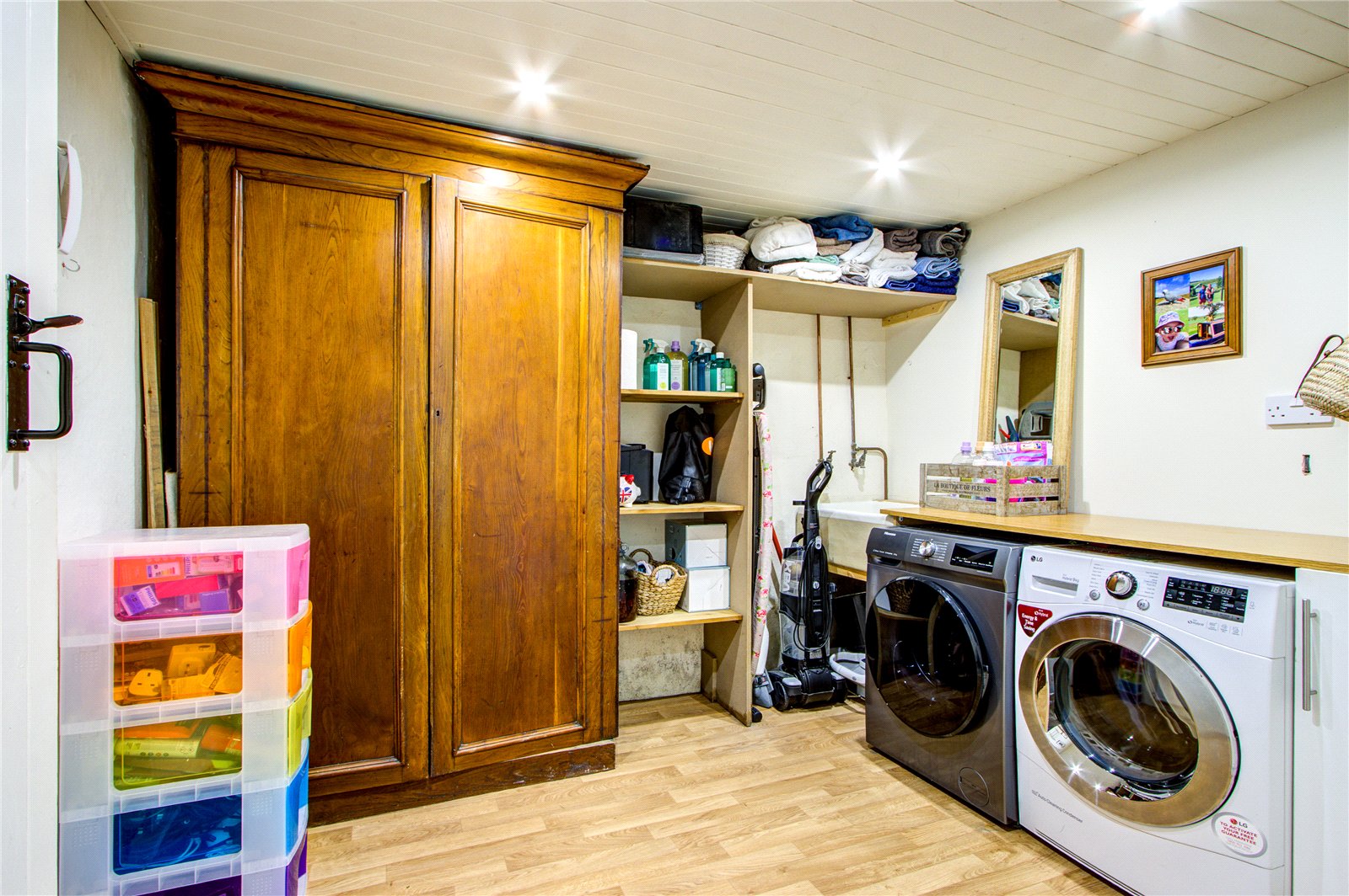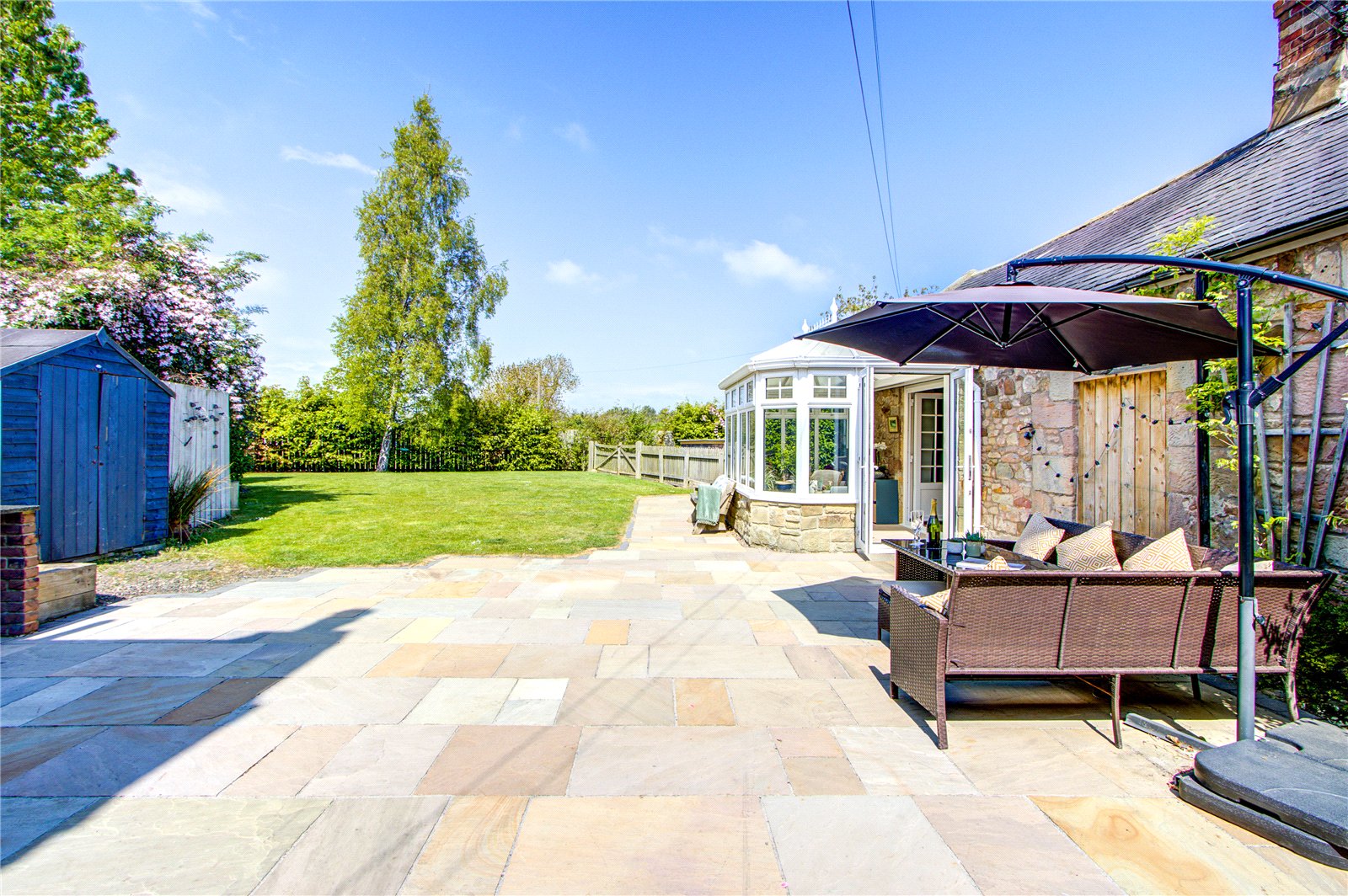 The tranquil gardens are the ideal spot for relaxation and al fresco dining with a sunny terrace, lawned area, and established shrubs and trees. A useful stone outbuilding provides plenty of storage, whilst the spacious driveway offers parking for several vehicles.