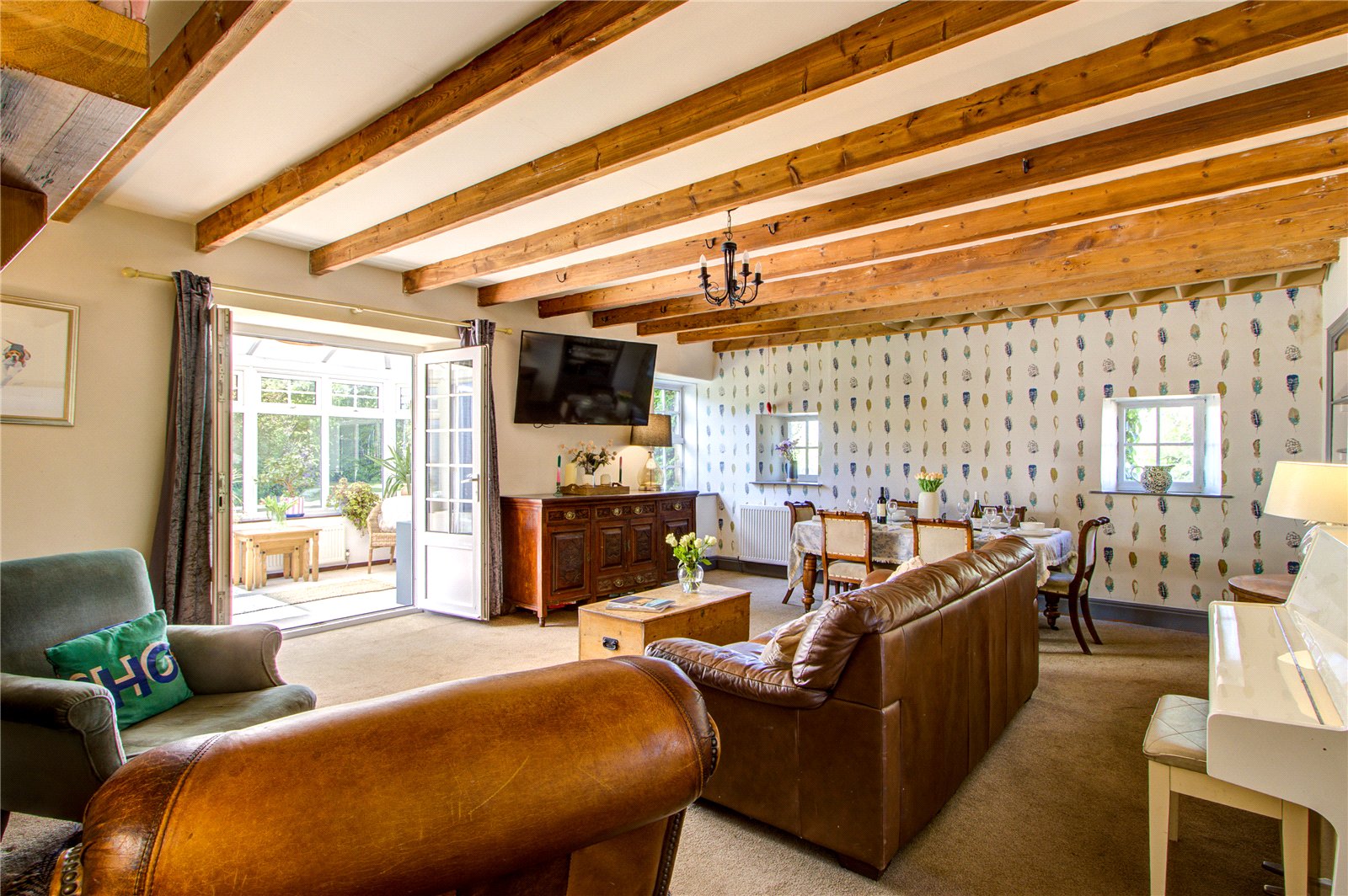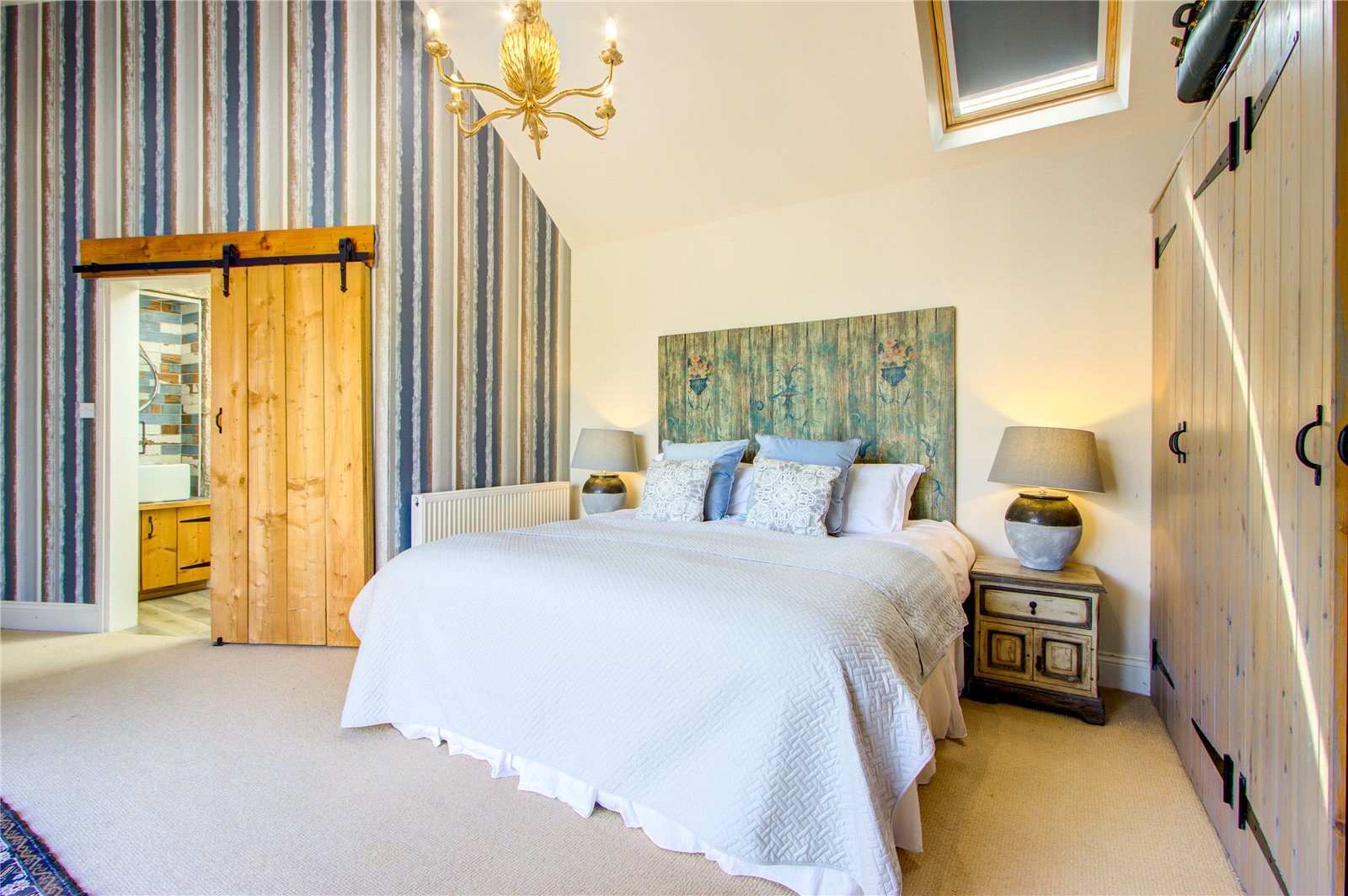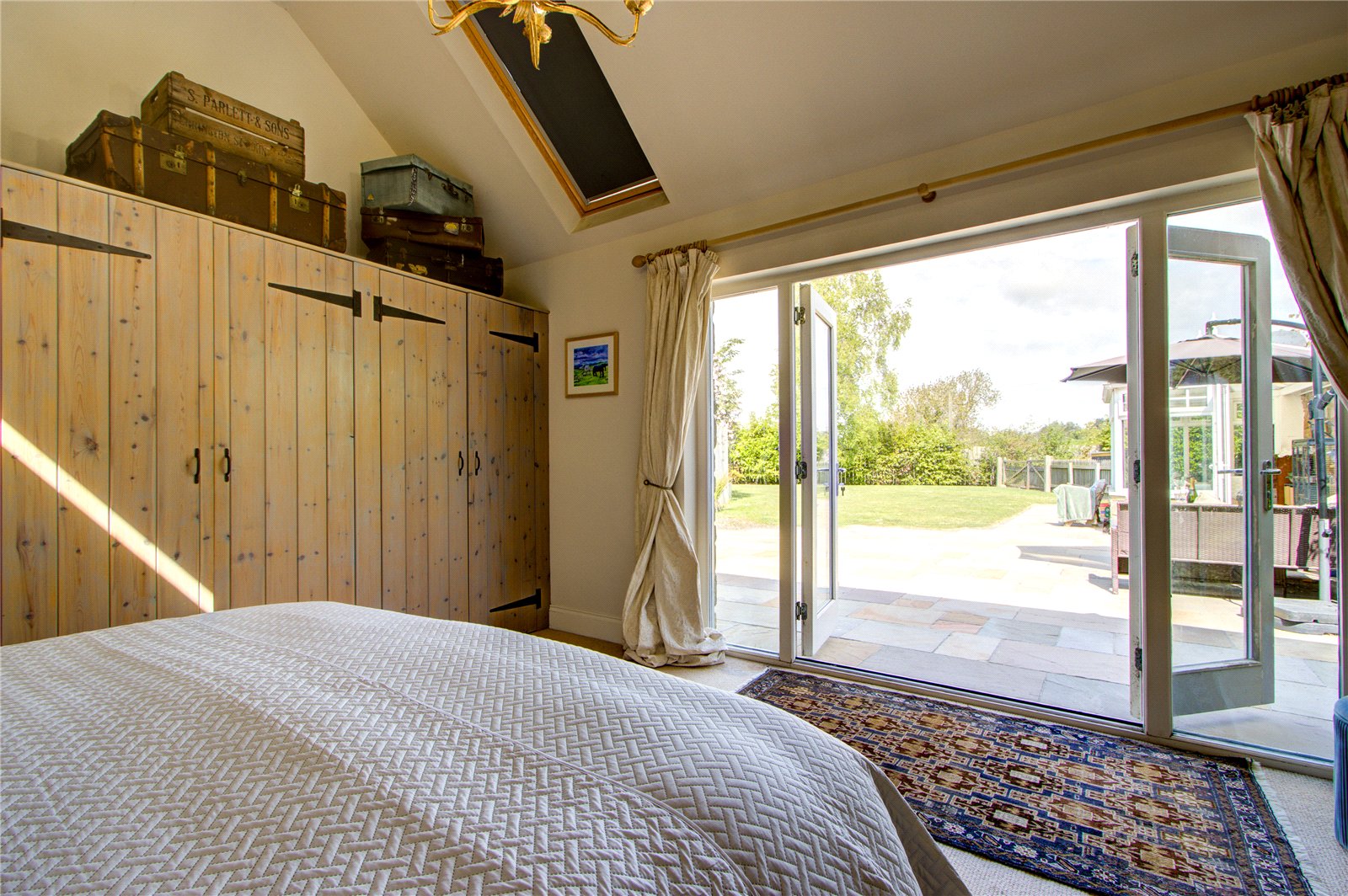 Step inside where we find the ideal space in the entrance for muddy boots and coats. The well-appointed kitchen provides an excellent range of fitted units and spacious worktops. The living area is perfect for family living with a cosy wood-burning stove and space for a large dining table for enjoying family meals and entertaining. The garden room offers delightful views across the secluded garden – a peaceful retreat where indoor and outdoor living blend beautifully. The principal bedroom is perfect for a good night’s sleep, featuring a vaulted ceiling, fitted wardrobes and a stunning en-suite shower room. This sun-filled room has French doors leading directly onto the terrace, which is the perfect connection to the garden. There are two further bedrooms and a smart family bathroom. Add in a utility room and you’ll have everything you need for comfortable country living.