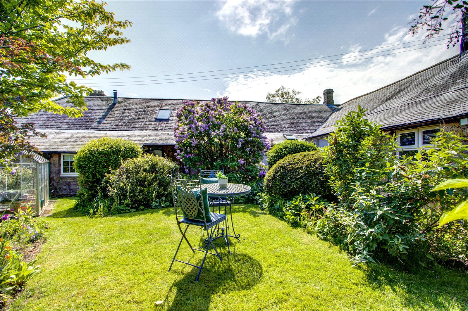 The tranquil gardens are the ideal spot for relaxation and al fresco dining with a sunny terrace, lawned area, and established shrubs and trees. A useful stone outbuilding provides plenty of storage, whilst the spacious driveway offers parking for several vehicles.