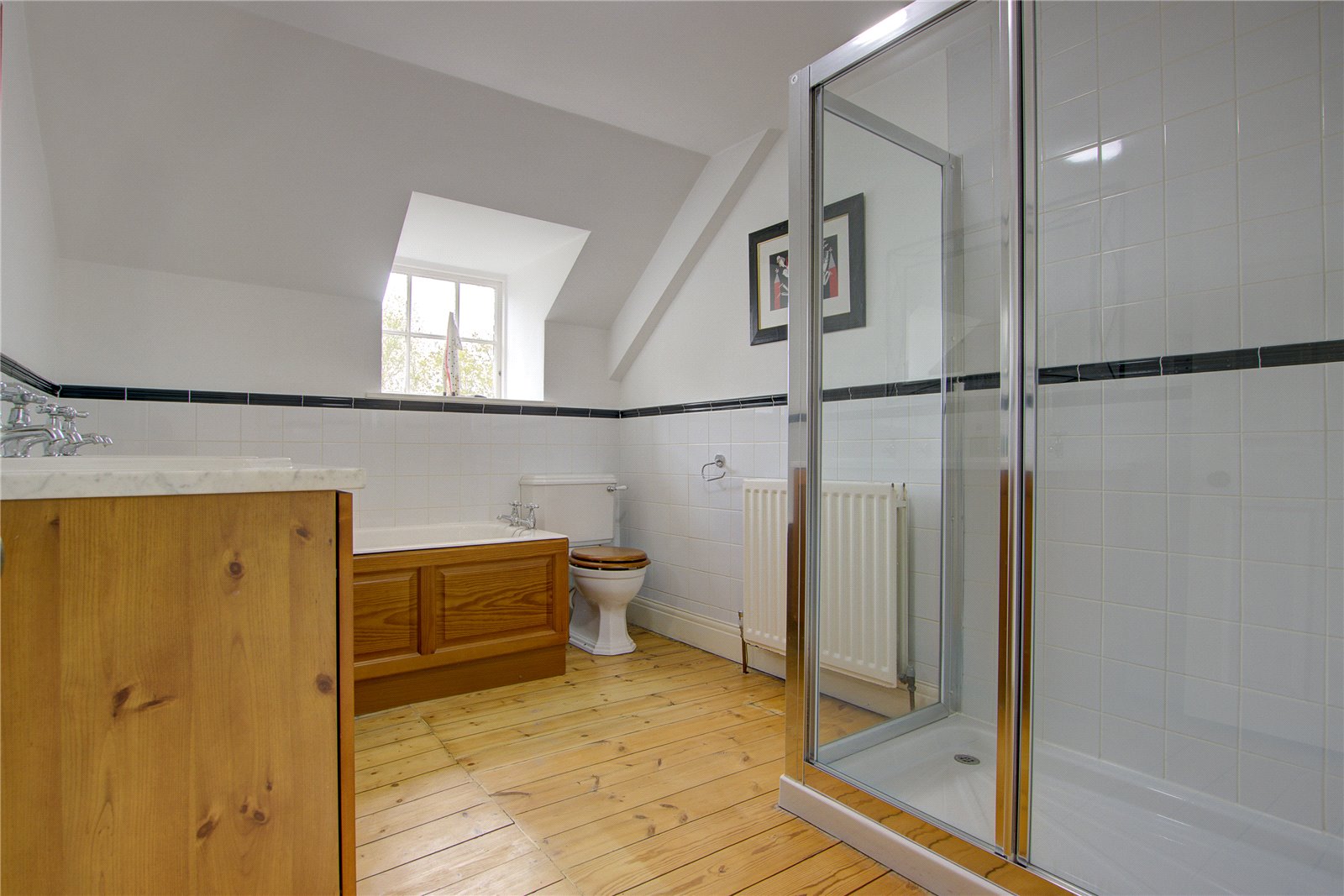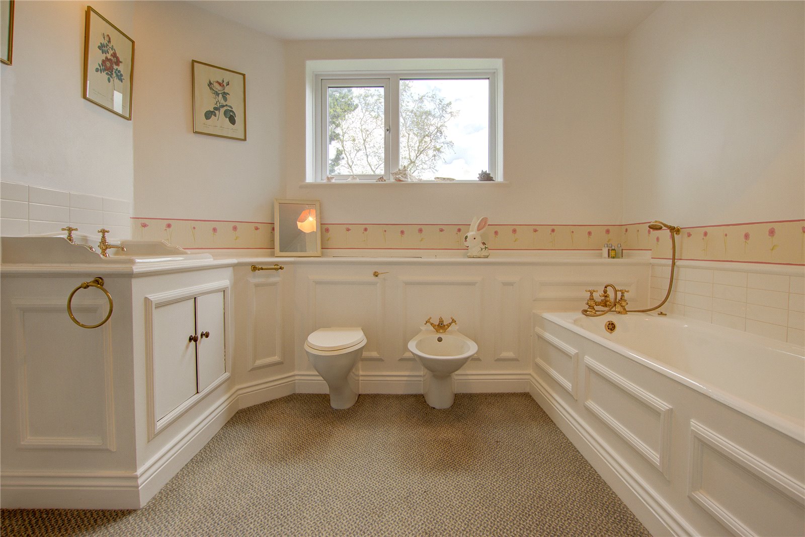 The principal bedroom features a charming cast iron fireplace, adding elegance and luxury to the space, and boasts a dressing room complete with fitted wardrobes for ample storage, along with an en-suite bathroom with a separate bath and shower cubicle, and double basins. The property includes four additional double bedrooms, and a family bathroom, providing ample accommodation for family members or guests. One bedroom is currently utilised as a home office, offering versatility for various living arrangements and needs.