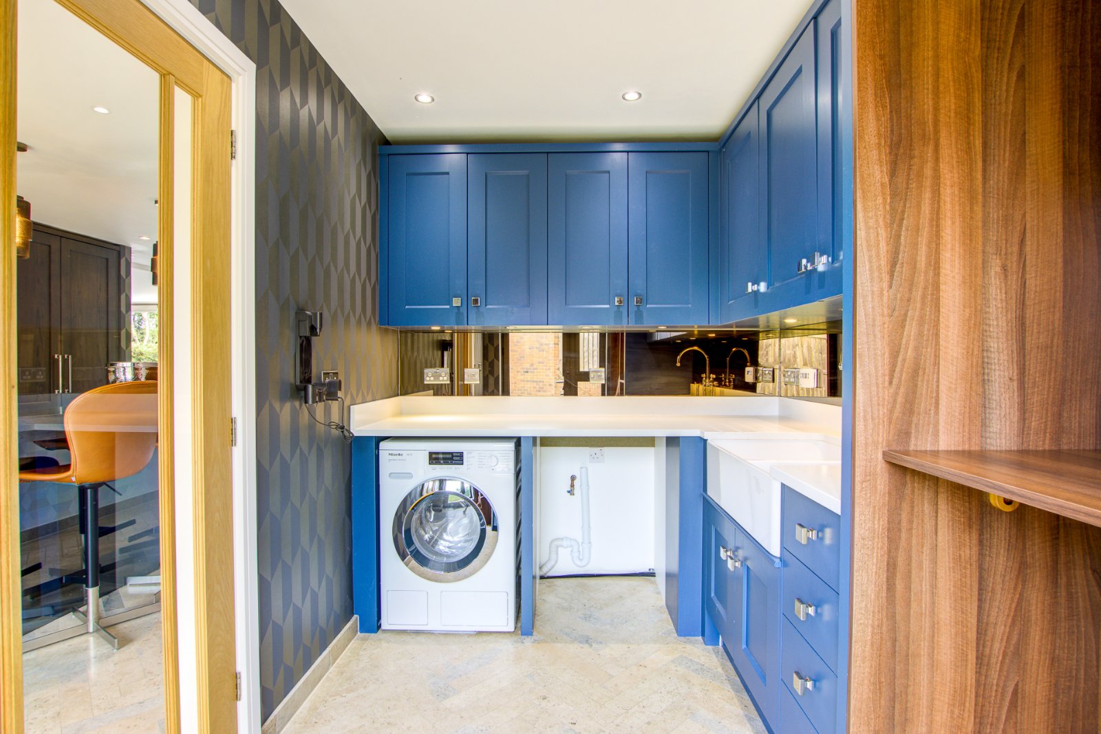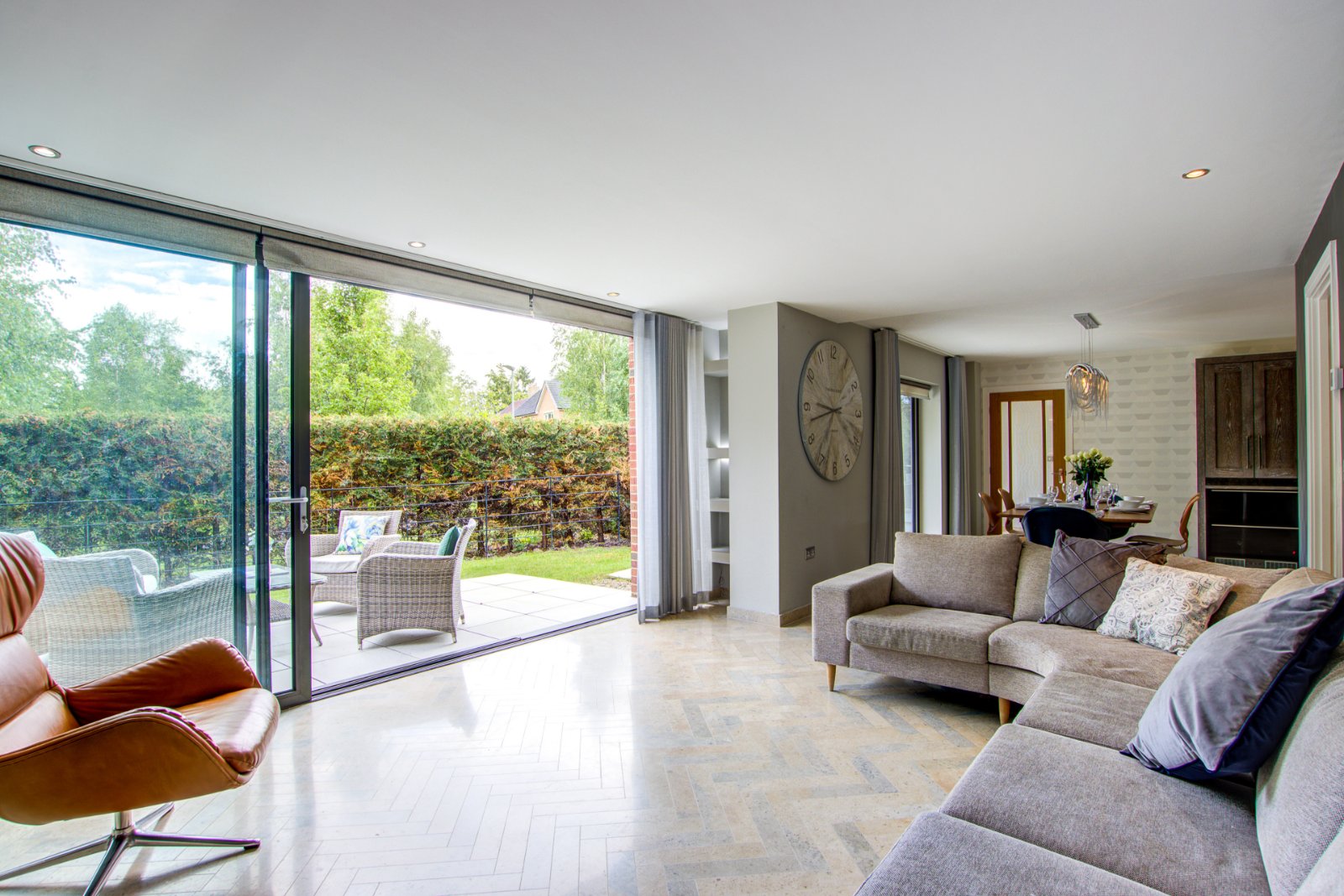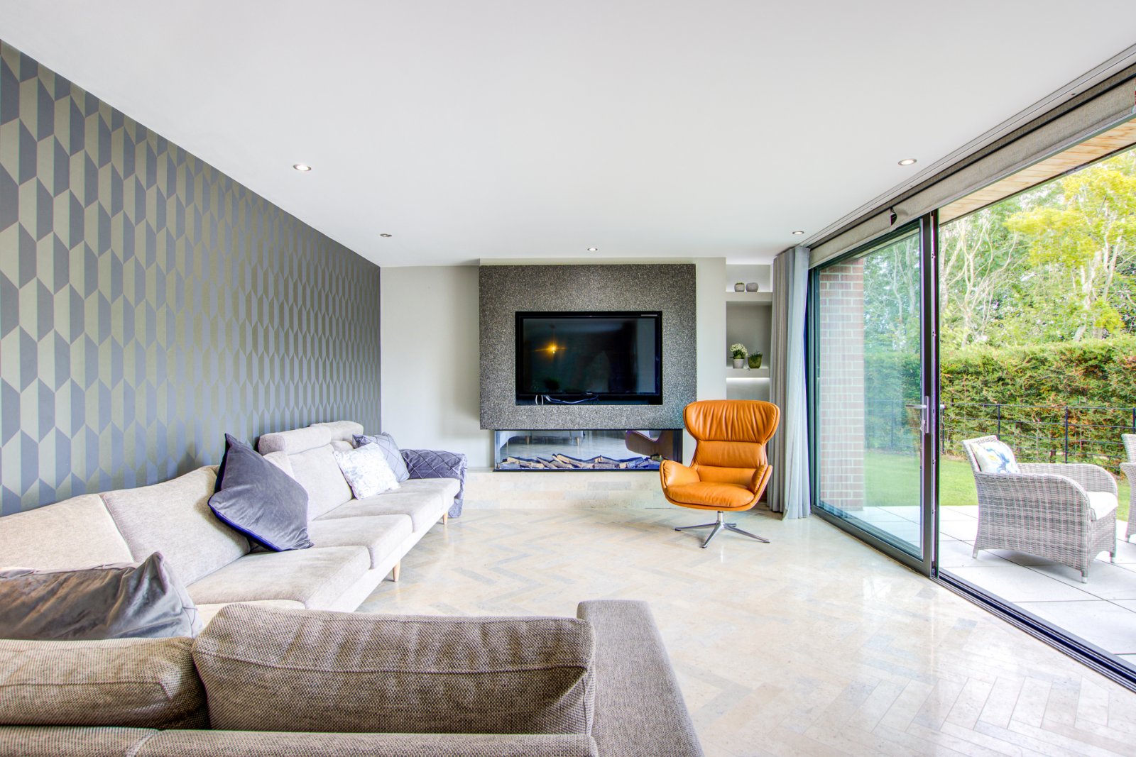 Entertain in style in the expansive open-plan kitchen, dining and living space, blending a bespoke luxury kitchen, an elegant dining space and an inviting sitting area. The kitchen is a culinary masterpiece with bespoke cabinetry and high-specification integrated appliances. This stylish social space is ideal for cooking and chatting with friends over a glass of wine before sitting down for dinner, whilst the spacious sitting area is perfect for entertaining and family living. A convenient laundry room sits just off the kitchen and a boot room/cloakroom leads through into the double-integrated garage, where a handy utility space has been created.