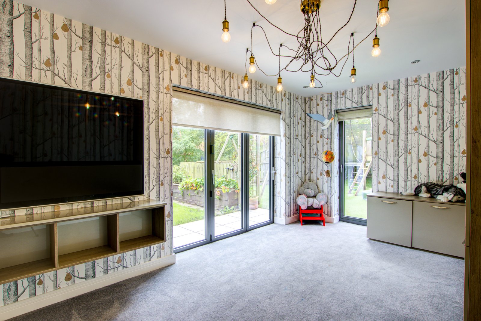 The fantastic snug/playroom opens directly through bi-fold doors onto the front garden and children’s play area. The sitting room/cinema room, complete with a cinema screen and surround sound system, has bi-fold doors to the rear patio. A WC, located off the entrance hall, completes the accommodation on the ground floor.