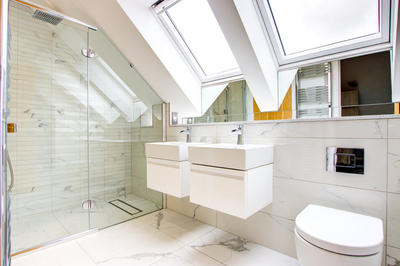 On this floor, two generous light-filled bedrooms share a Jack and Jill shower room with double basins.