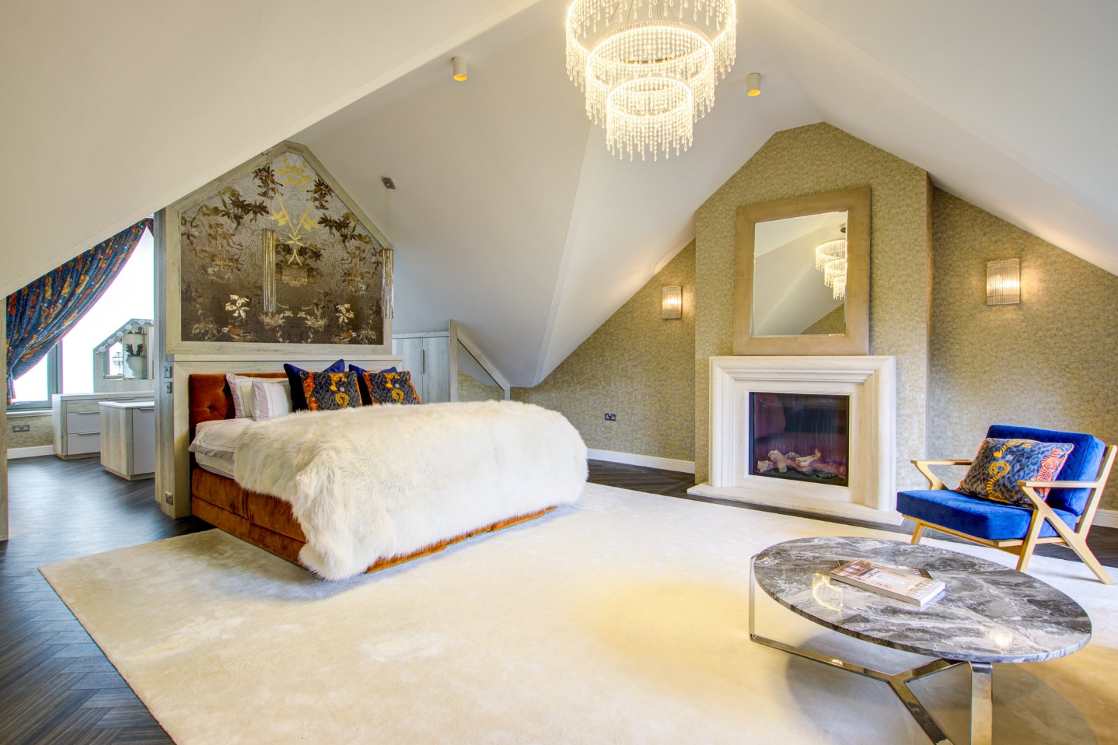 The principal suite is truly magnificent. This private sanctuary includes a spacious bedroom, a sitting area and a balcony with an excellent view over a lush green open area. Boasting two impressive dressing rooms and two luxury en-suite shower rooms, it is a dream come true. Every detail has been thoughtfully designed to create an atmosphere of pure indulgence, which continues into two further generously sized bedrooms, one with an en-suite shower room and also a family bathroom.