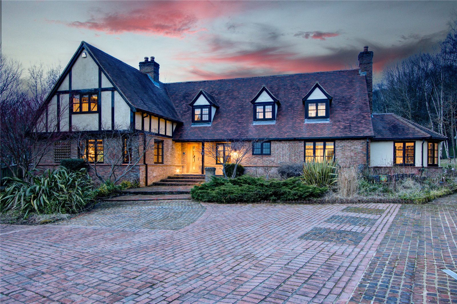 On approaching Hemingford Lodge through its gated private entrance, it becomes instantly clear that you have arrived at an exceptional and distinguished residence. Tucked away in a secluded enclave off Queen’s Road in the prestigious Shotley Bridge area, this impressive home provides the perfect balance of privacy and convenience, just a short stroll from village amenities. Situated in approximately one acre of beautifully landscaped gardens, this magnificent property offers exceptional and versatile living spaces. With five generous bedrooms, three luxurious bathrooms, and a spacious kitchen and breakfast room, this home is as functional as it is breathtaking. The open-plan dining and sitting rooms feature two striking brick inglenook fireplaces and triple-aspect garden views, creating an inviting atmosphere for both relaxation and entertaining. A separate living room with a cosy wood-burning stove flows seamlessly into a spectacular garden room, leading to a wrap-around decked terrace—an idyllic setting to enjoy the serene surroundings.