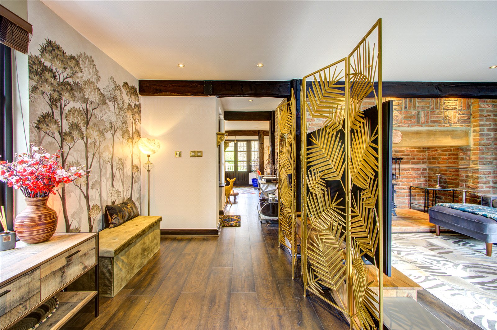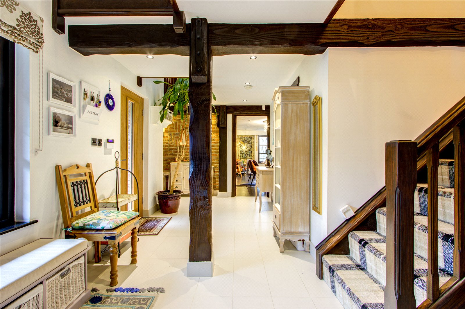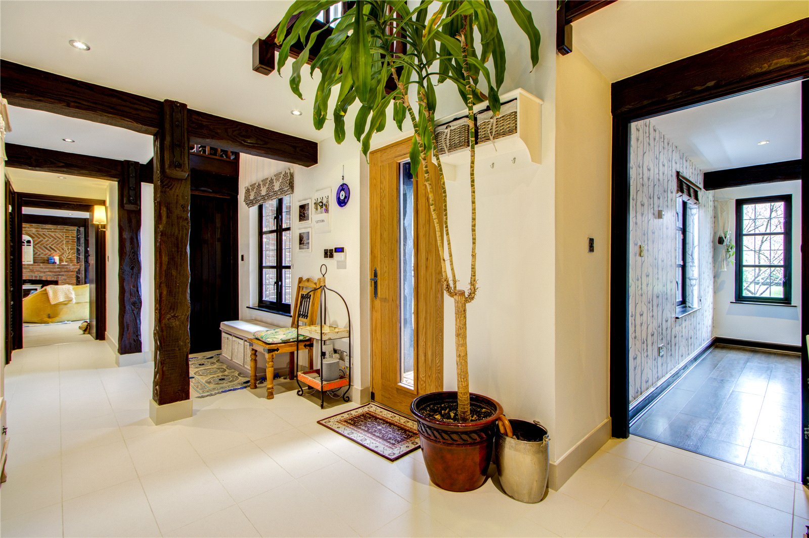 On stepping inside Hemingford Lodge, you are welcomed by an impressive reception hall featuring a striking galleried landing and an elegant wooden staircase. The entire ground floor is enhanced by underfloor heating, ensuring warmth and comfort throughout.