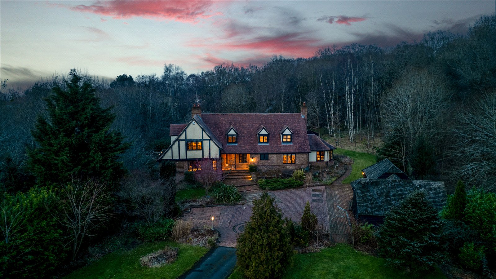 Accessed via a private road, Hemingford Lodge offers a secure and secluded setting, with an elegant entrance featuring pillared lighting and a generous turning circle.