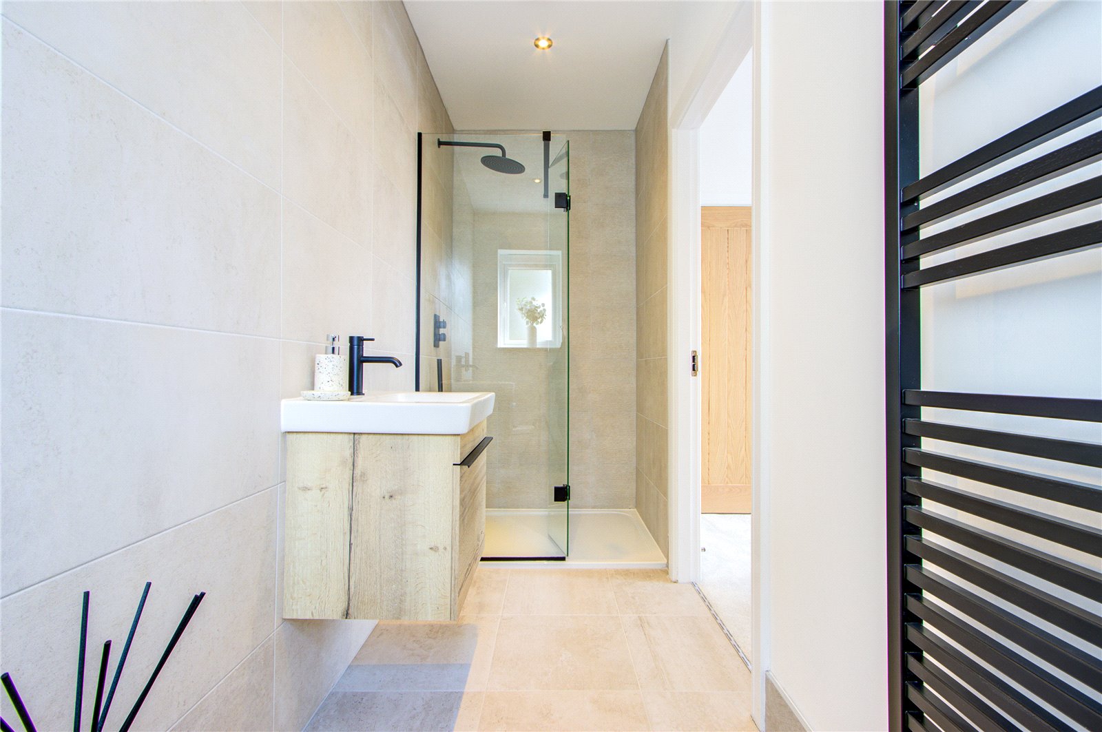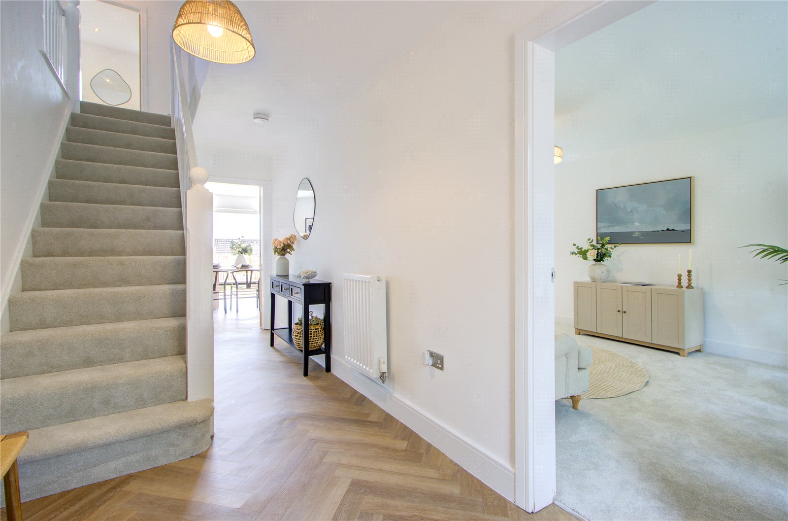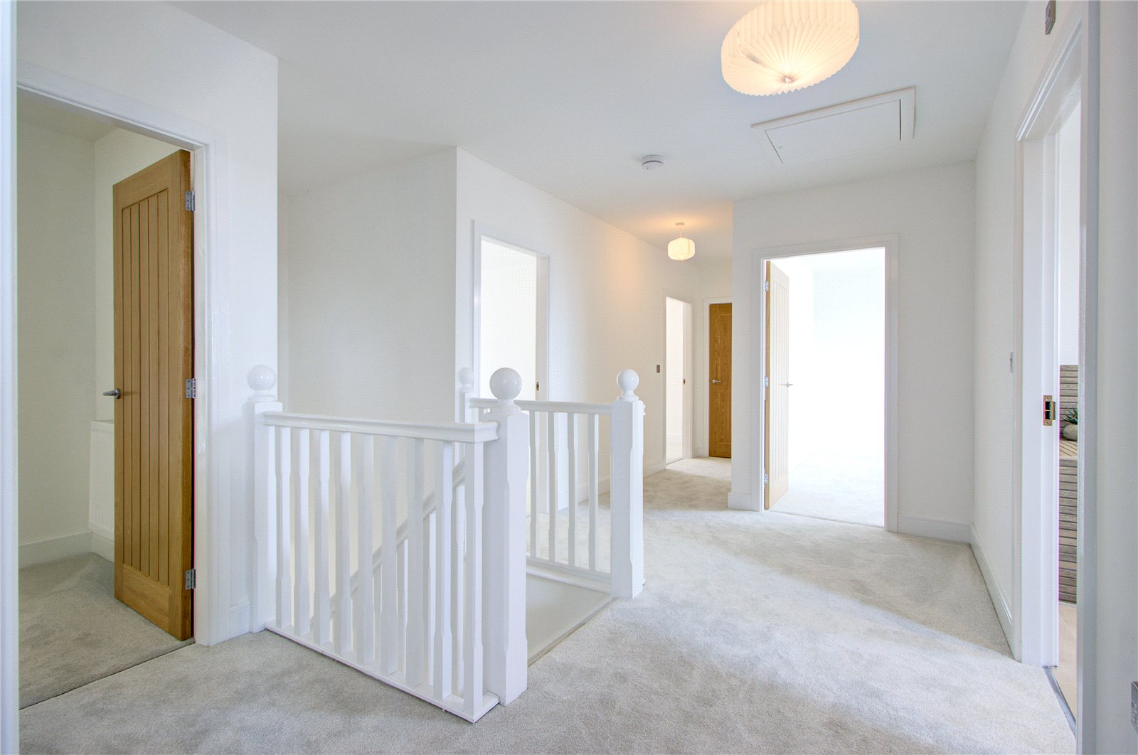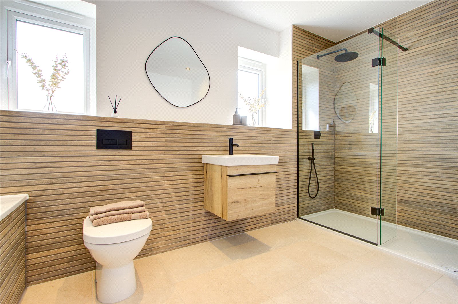 Ascend the staircase to a spacious landing that serves as the central hub for the five beautifully appointed bedrooms. The principal suite offers a luxurious retreat, complete with a sleek en-suite shower room designed for comfort and relaxation. A second generously sized bedroom also benefits from its own stylish en-suite, ideal for guests or older children.